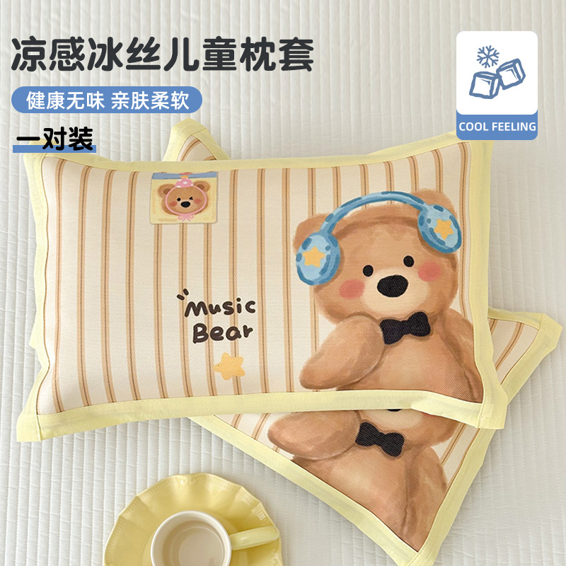 • 뮤직베어 [A급 쿨 아이스 실크 어린이 베개커버] 페어