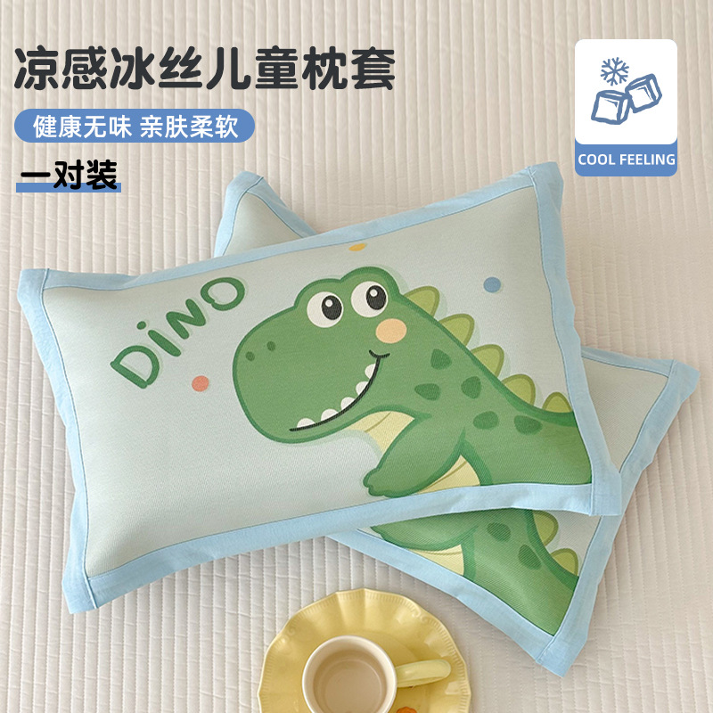 • 귀여운 공룡 [A급 시원한 아이스 실크 어린이 베개 커버] 한 쌍