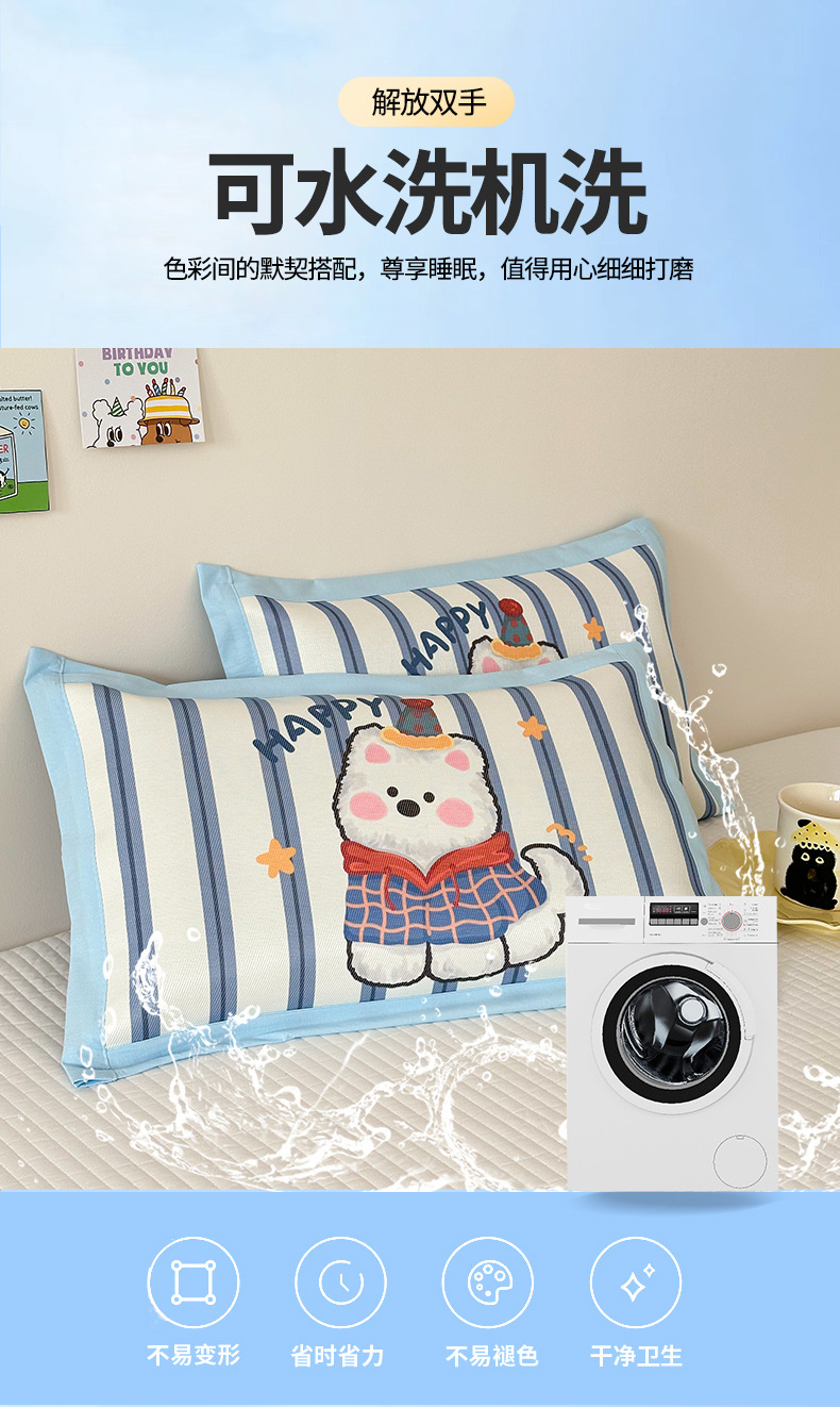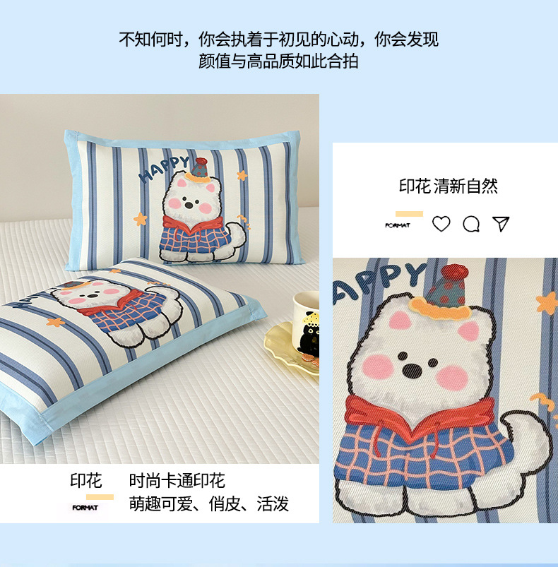 • Happy Puppy [A급 쿨 아이스 실크 어린이 베개 커버] 쌍