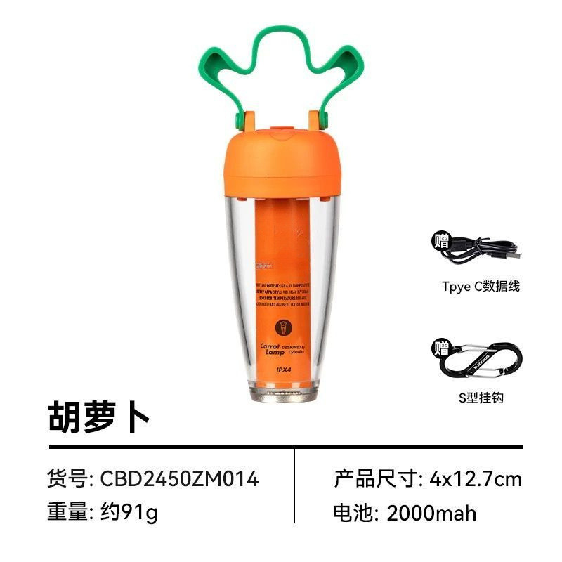 밝고 오래 지속되는 새로운 야외 당근 램프, 고급스러운 캠핑 램프, 텐트 램프, 매우 긴 배터리 수명, 충전식 모델스토어 가기