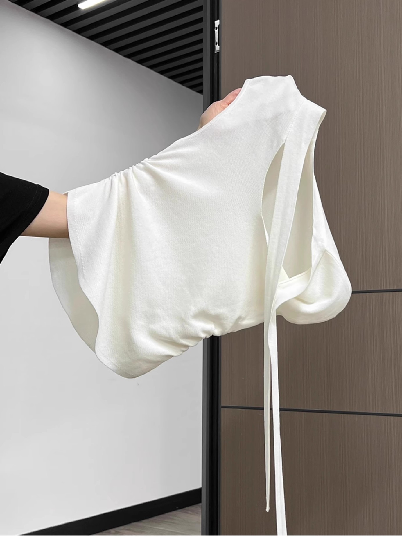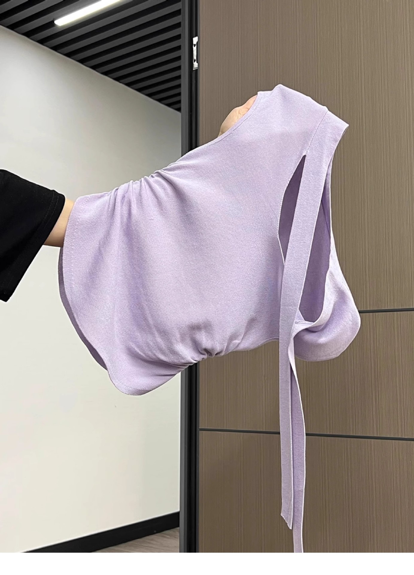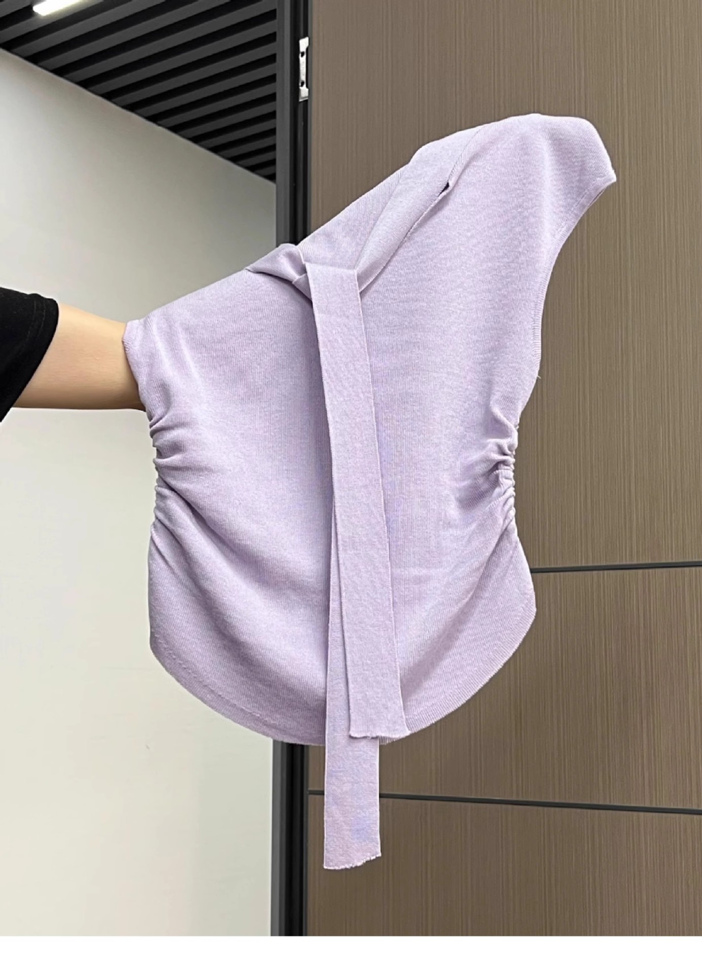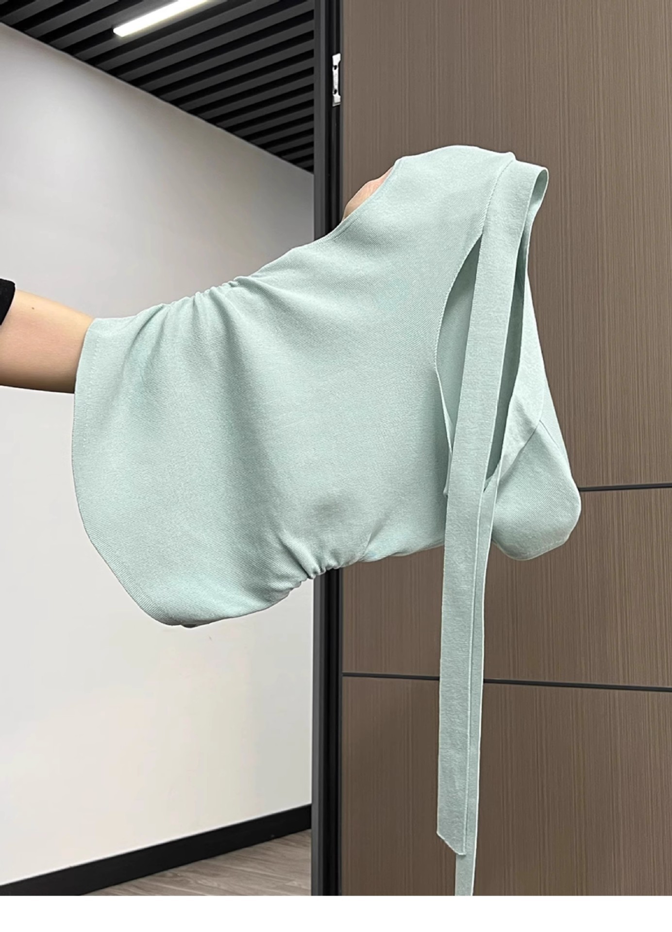 여름에 작은 체형을 가진 여성을 위한 민소매 클리어 워터 블루 리본 브이넥 플리츠 스웨터, 슬림핏 이너웨어, 아름다운 탑스토어 가기