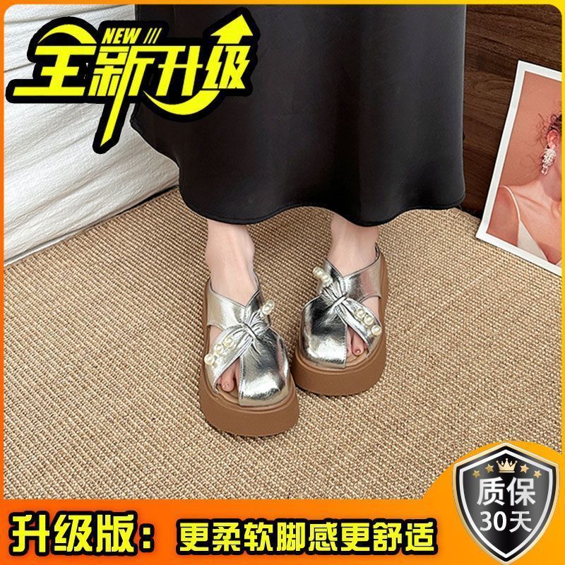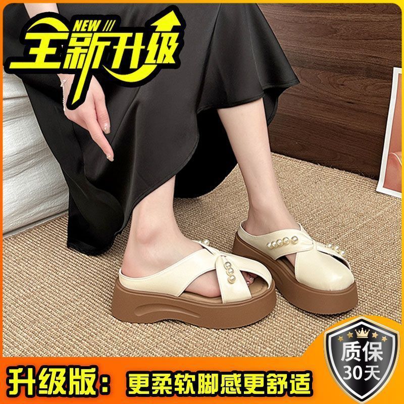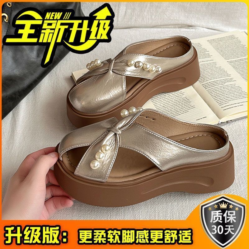 2025년 신상 여름 진주 패션 외부 착용용 바오터우 슬리퍼, 두꺼운 밑창 디자인, 슬립온, 게으른 하프 슬리퍼스토어 가기