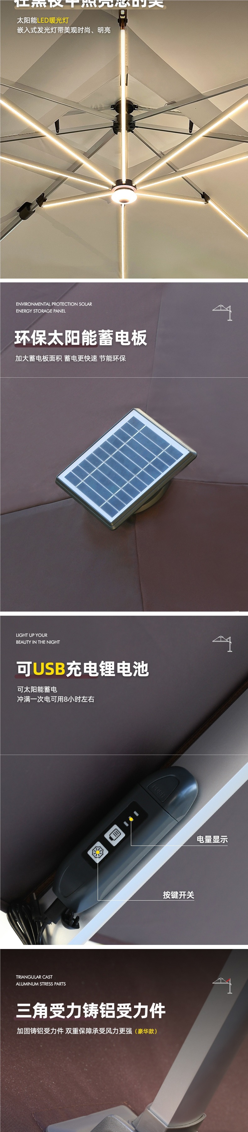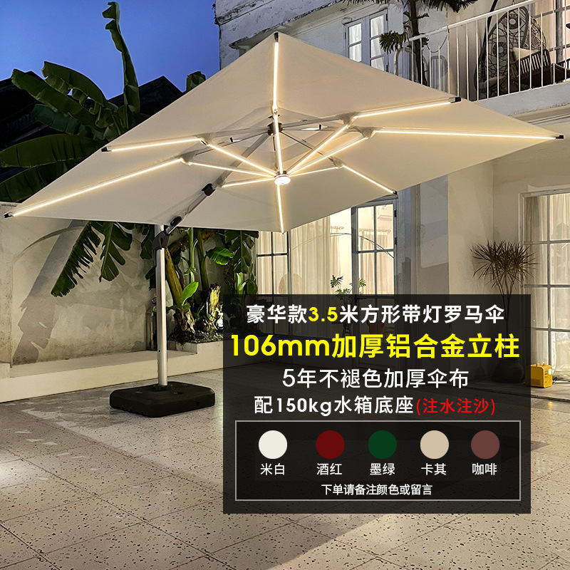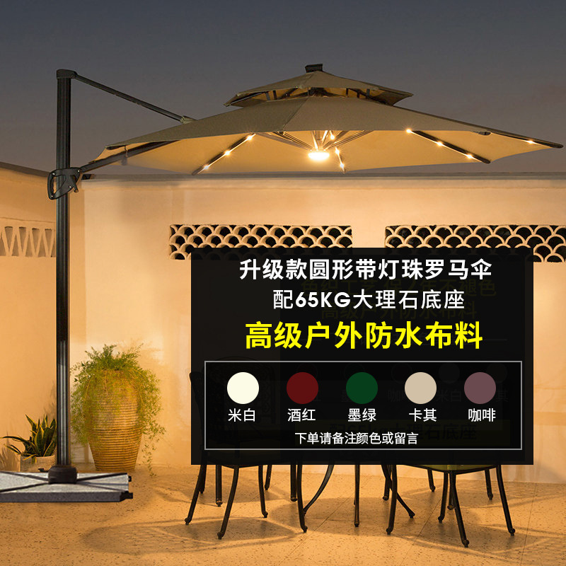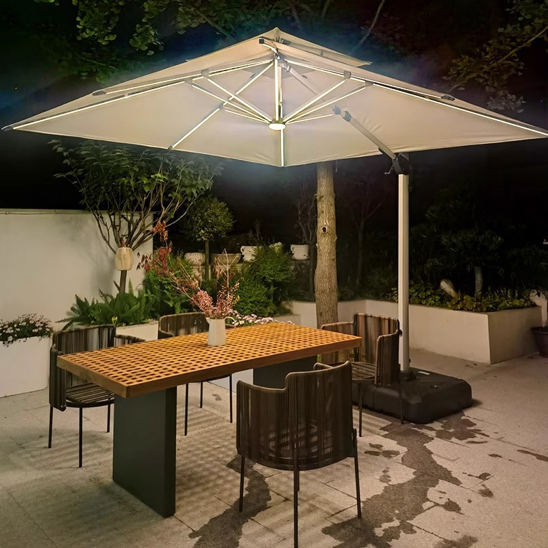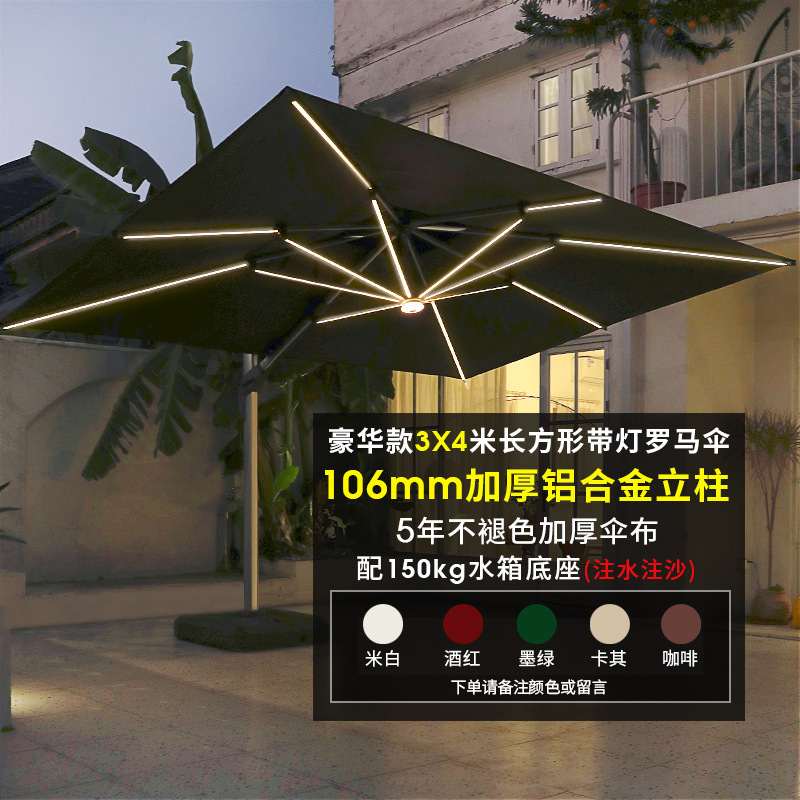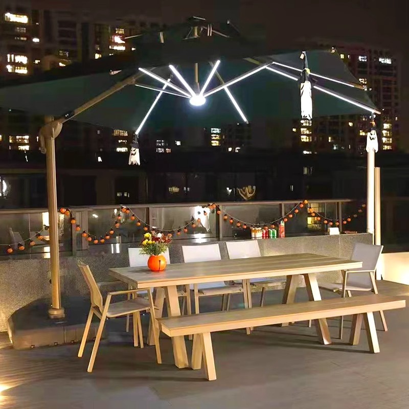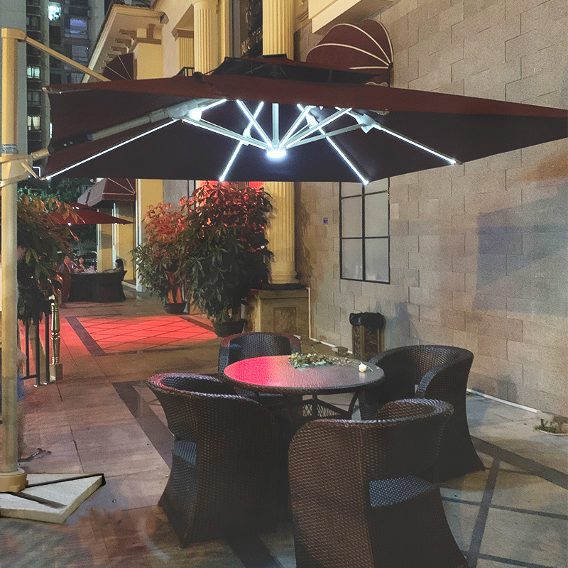 야외 파라솔, 조명이 있는 태양광 안뜰 우산, 발코니 빌라 정원 대형 태양 우산, 레저 상업용 로마 우산
