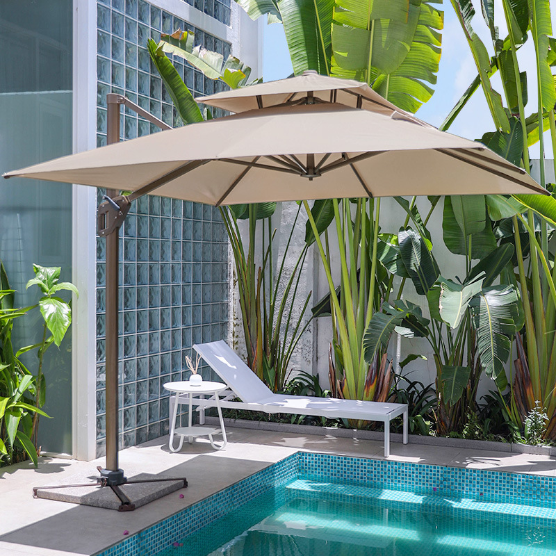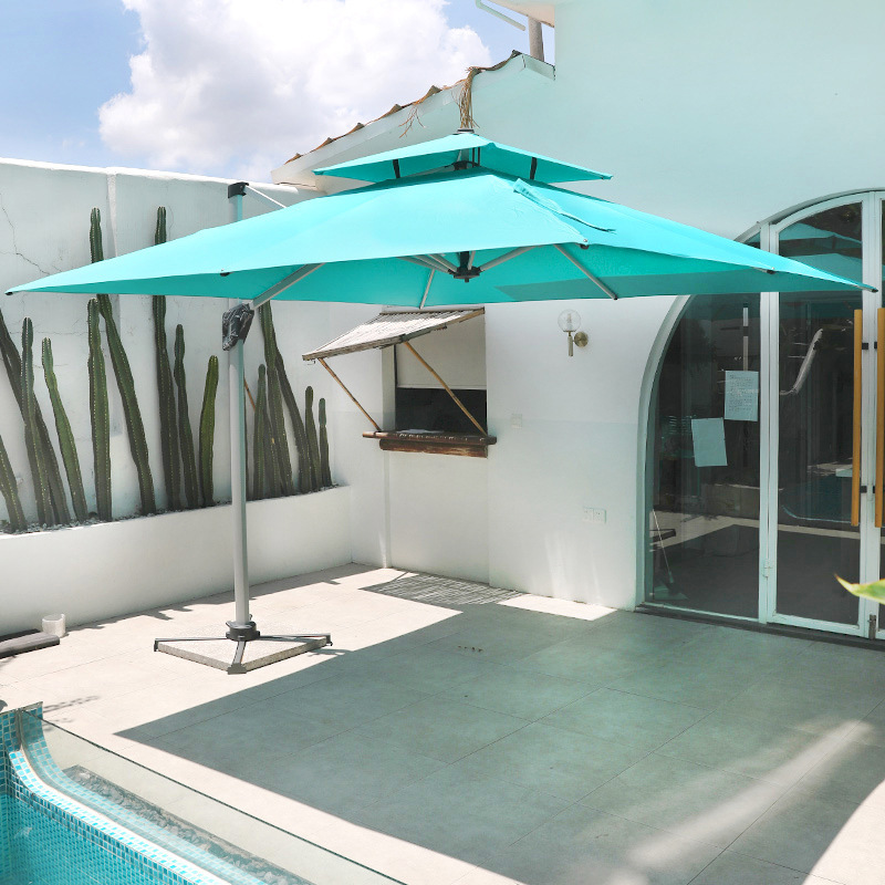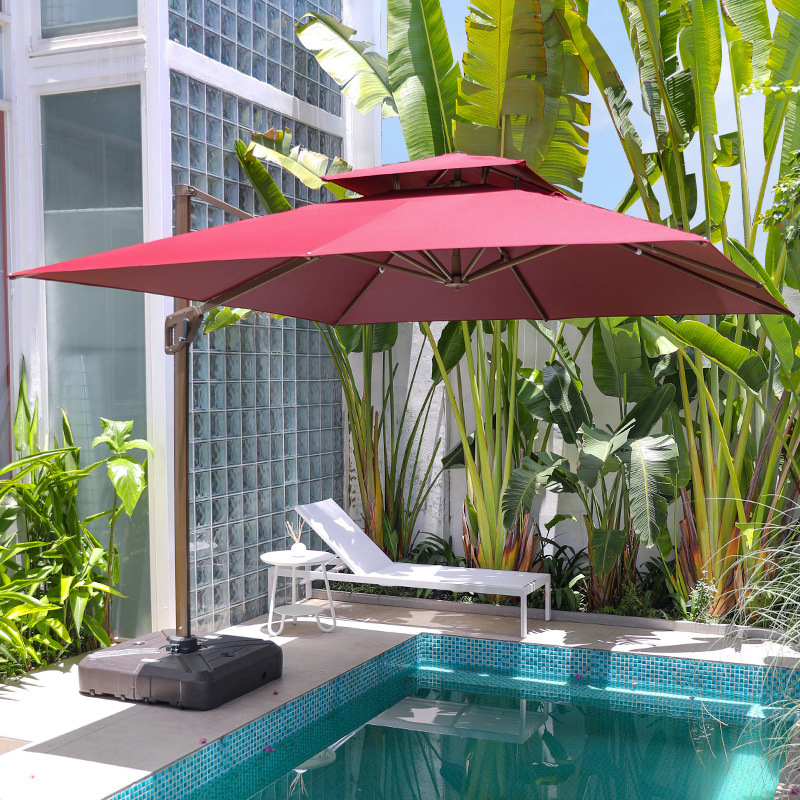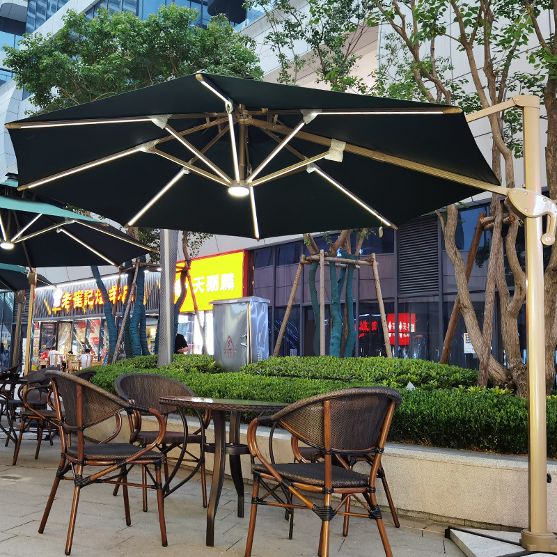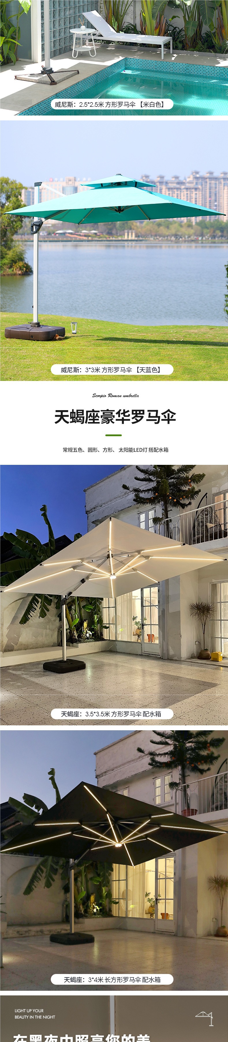 야외 파라솔, 조명이 있는 태양광 안뜰 우산, 발코니 빌라 정원 대형 태양 우산, 레저 상업용 로마 우산스토어 가기