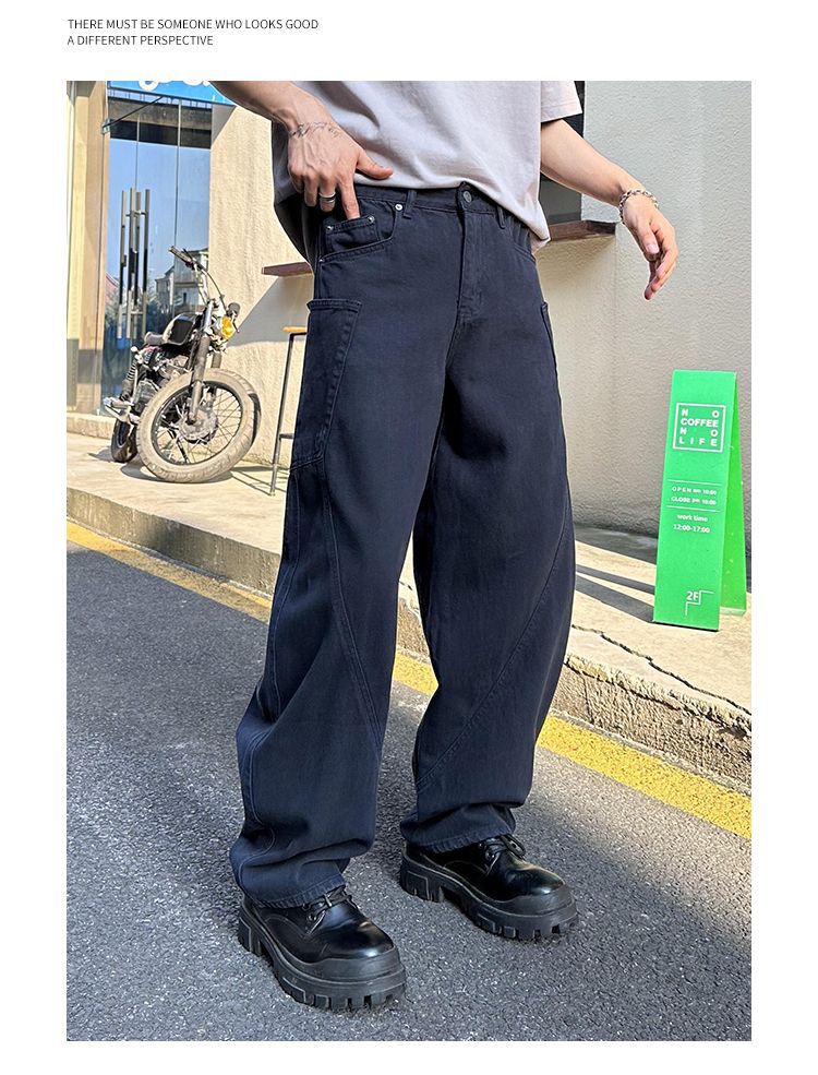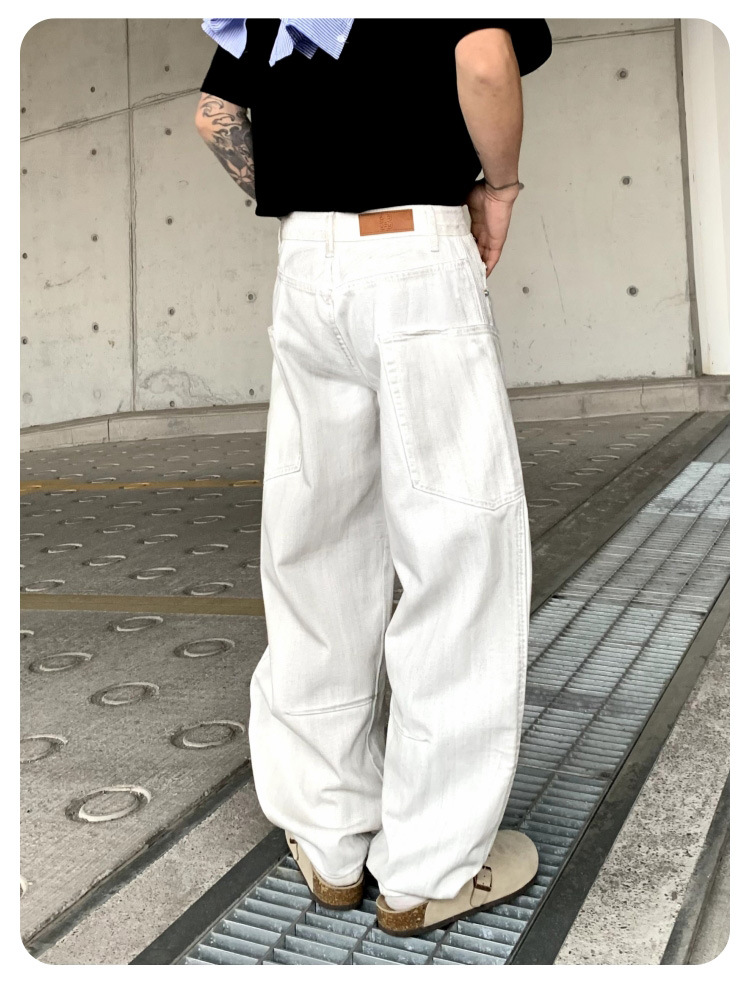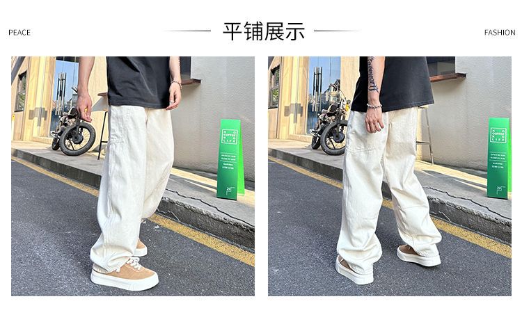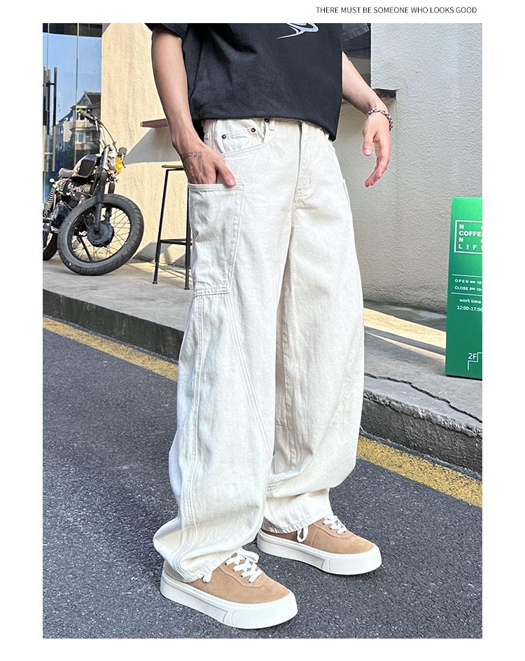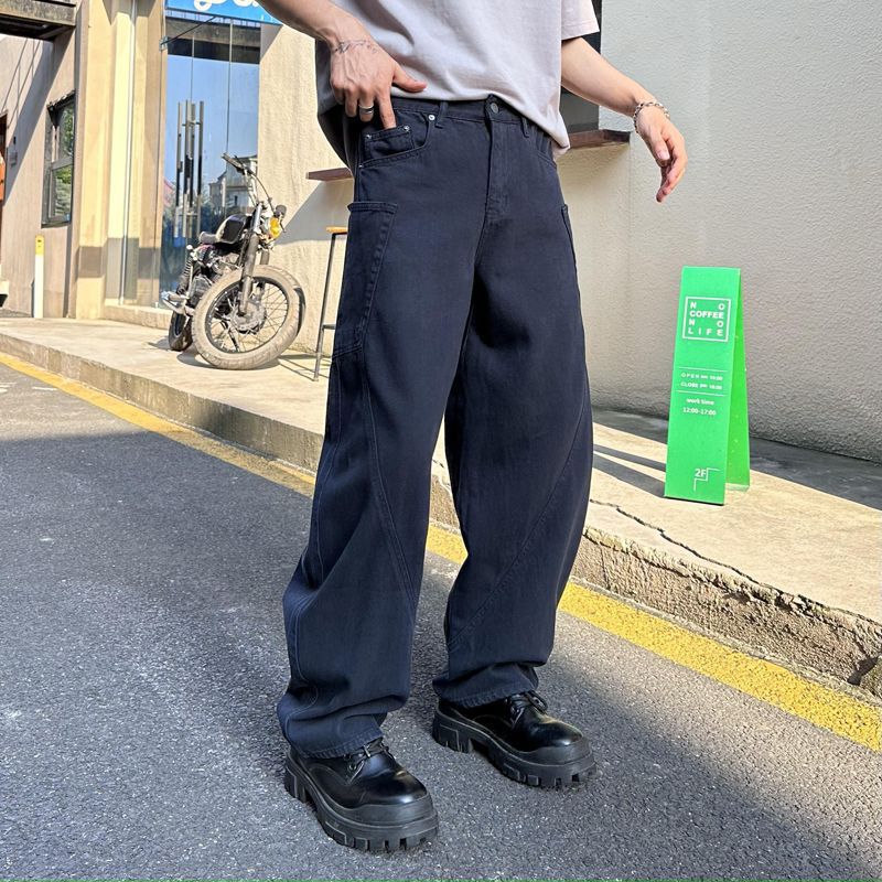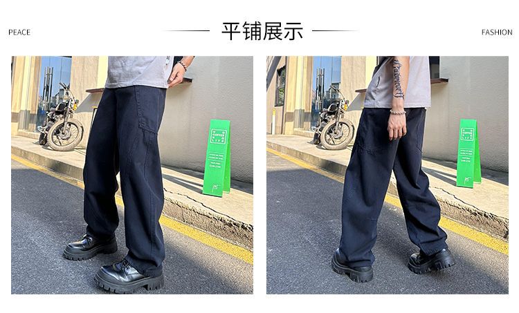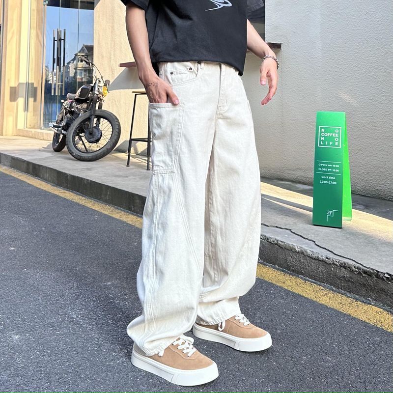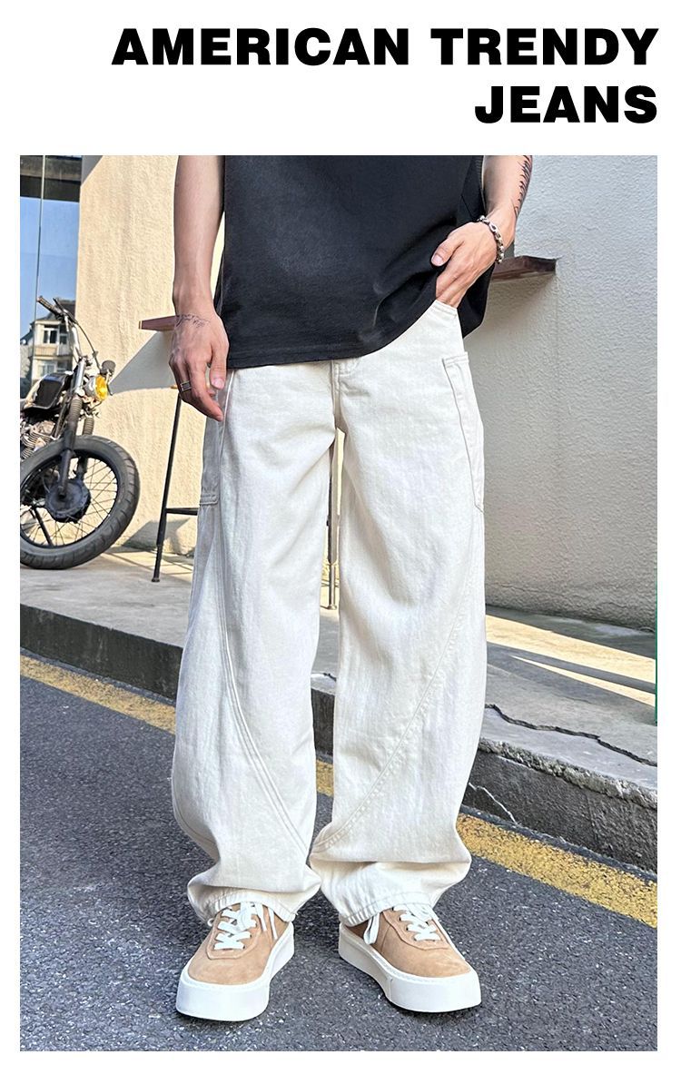 파리 스타일 와이드 레그 시미터 청바지 남성 여름 미국 패션 브랜드 루즈 스트레이트 캐주얼 작업복 바지 남성 의류스토어 가기