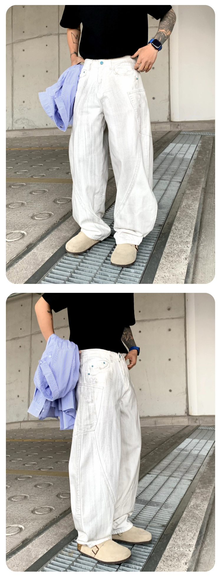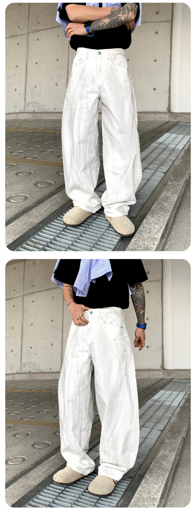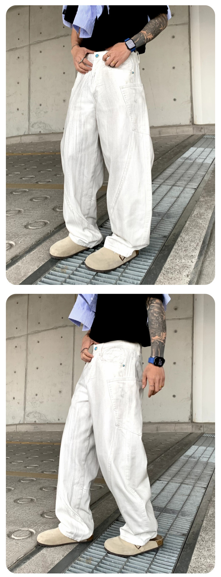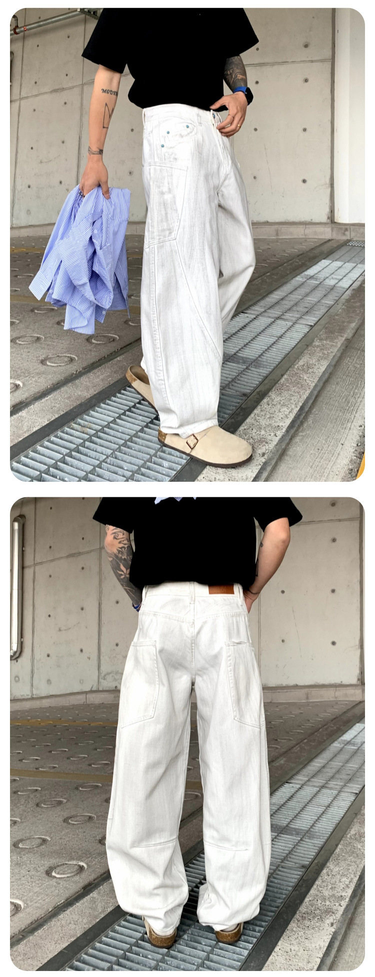 파리 스타일 와이드 레그 시미터 청바지 남성 여름 미국 패션 브랜드 루즈 스트레이트 캐주얼 작업복 바지 남성 의류스토어 가기