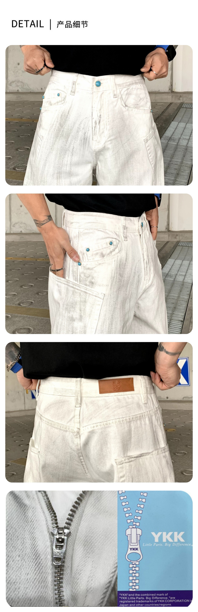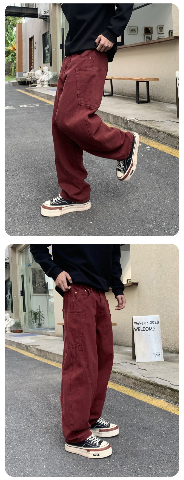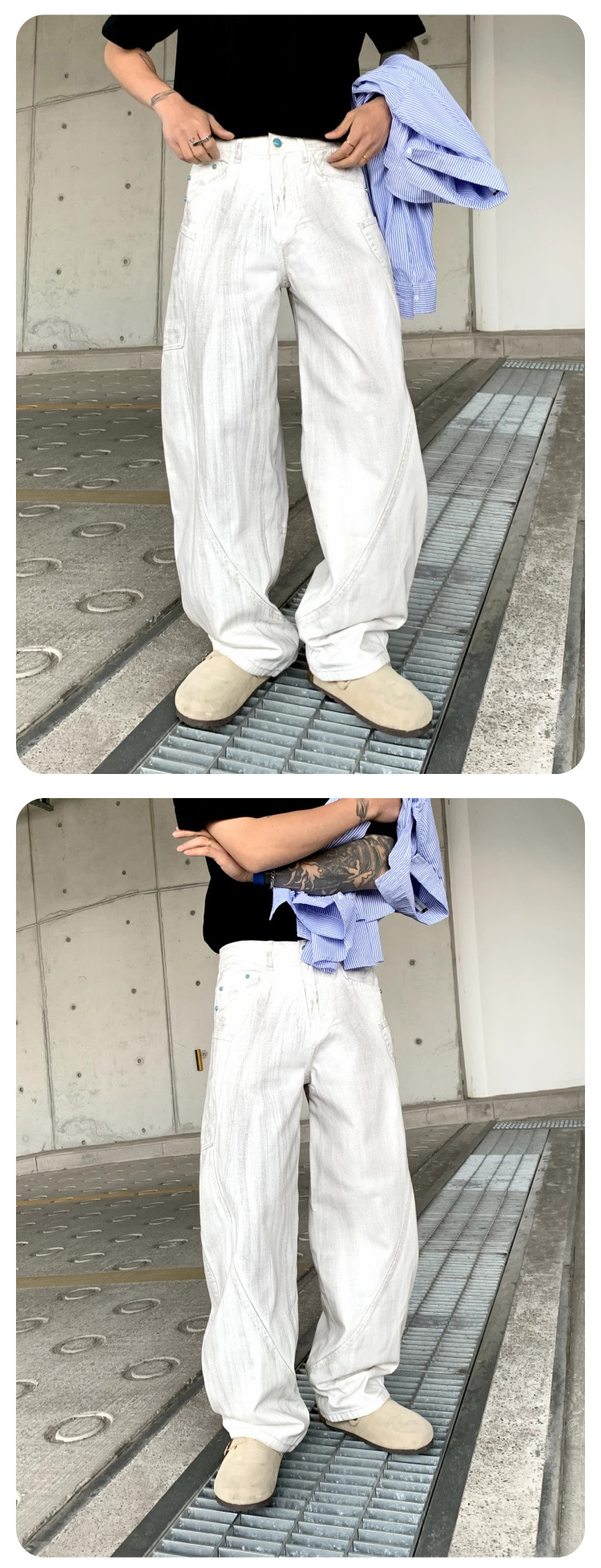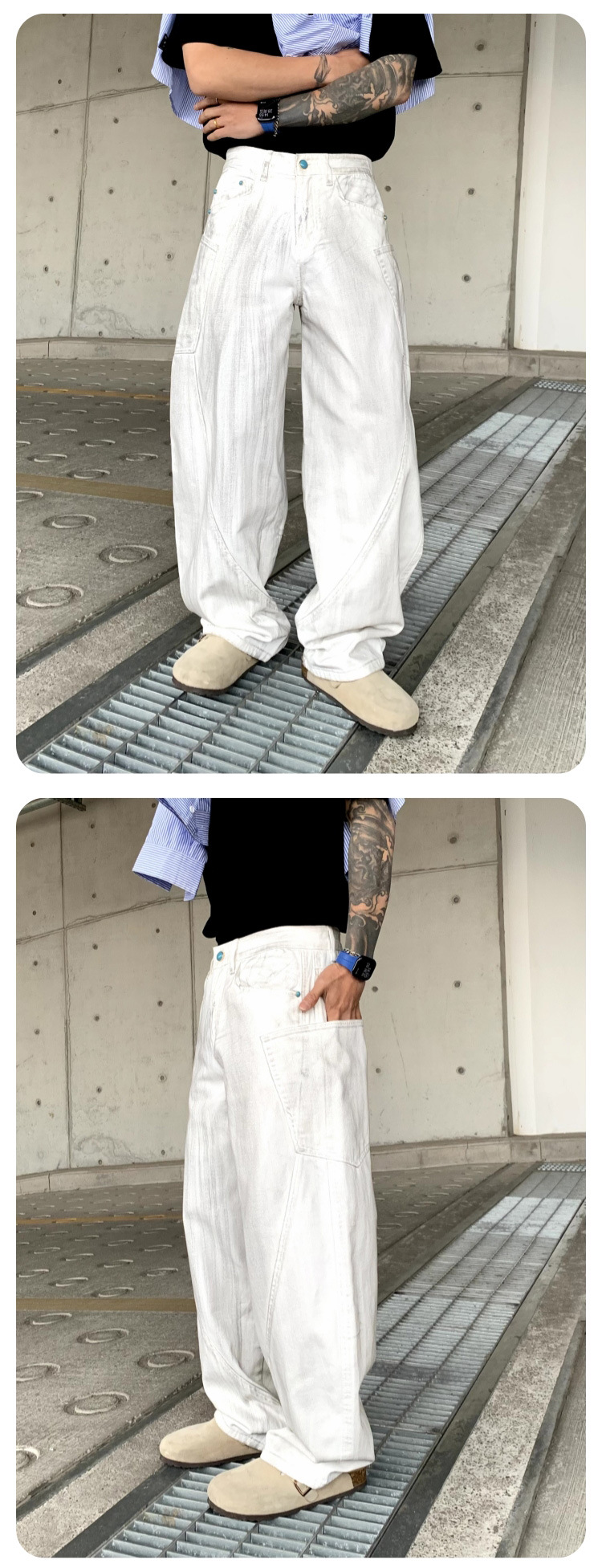 파리 스타일 와이드 레그 시미터 청바지 남성 여름 미국 패션 브랜드 루즈 스트레이트 캐주얼 작업복 바지 남성 의류스토어 가기