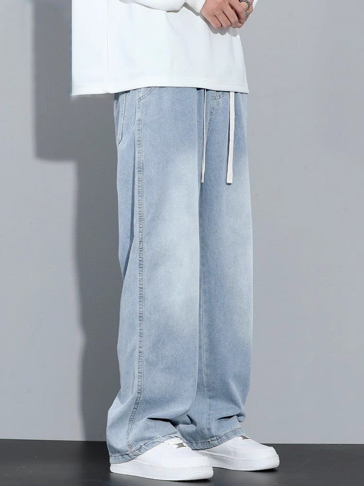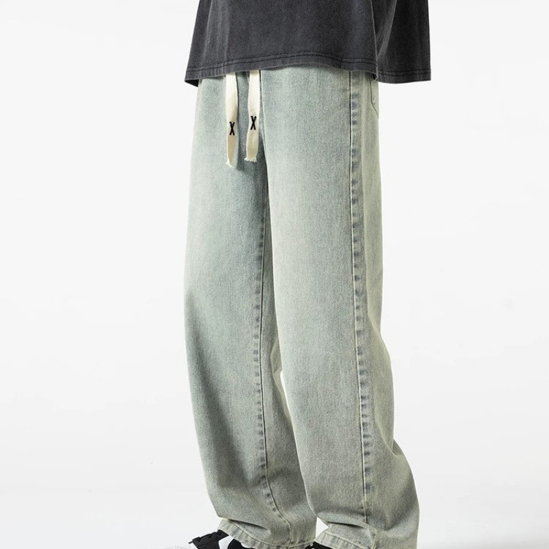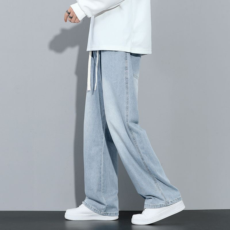 라이트 블루 청바지 남성용 올 시즌 2025 새로운 트렌디 브랜드 루즈 스트레이트 와이드 레그 드레이프 캐주얼 롱 팬츠 남성용