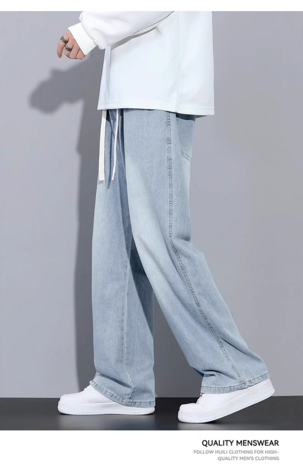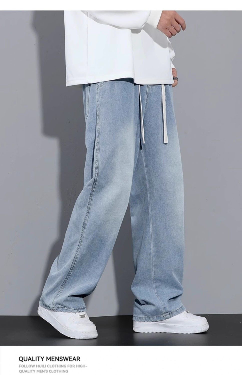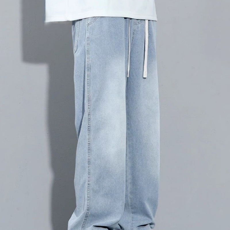 라이트 블루 청바지 남성용 올 시즌 2025 새로운 트렌디 브랜드 루즈 스트레이트 와이드 레그 드레이프 캐주얼 롱 팬츠 남성용스토어 가기