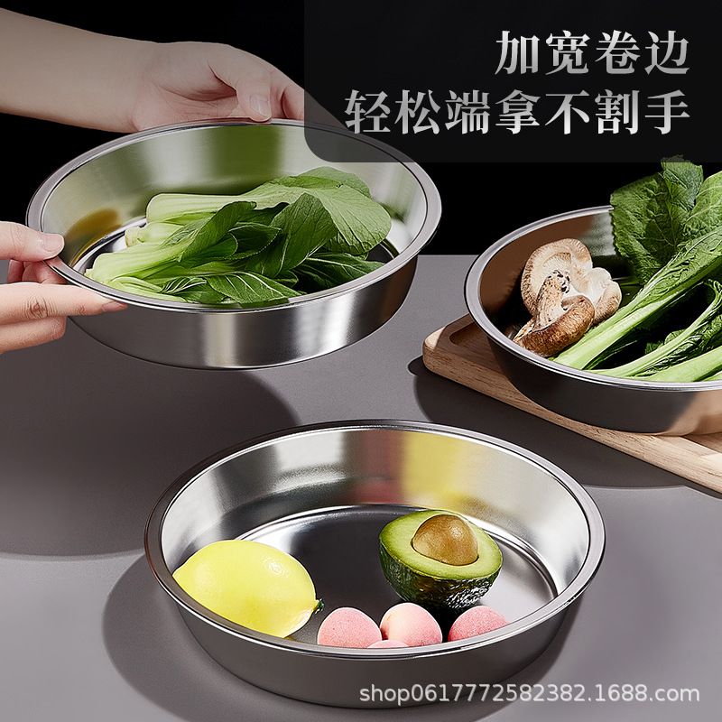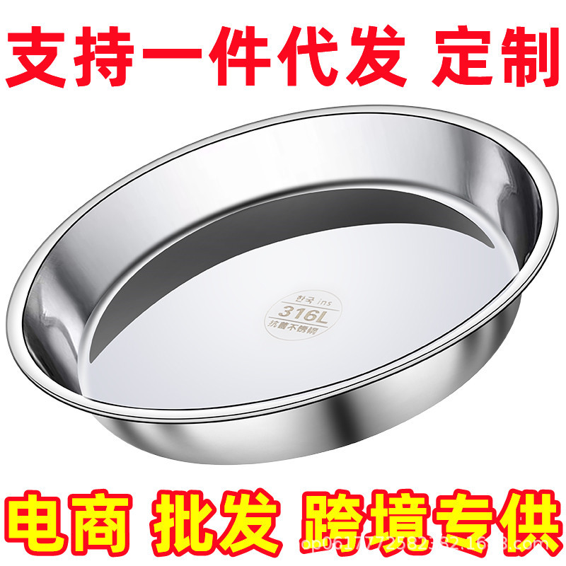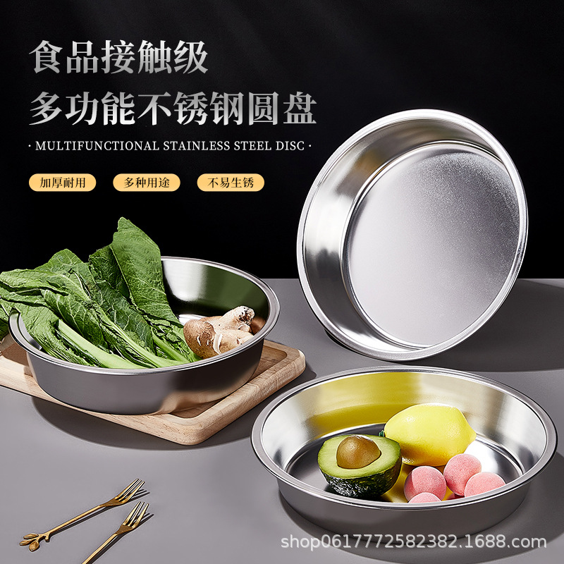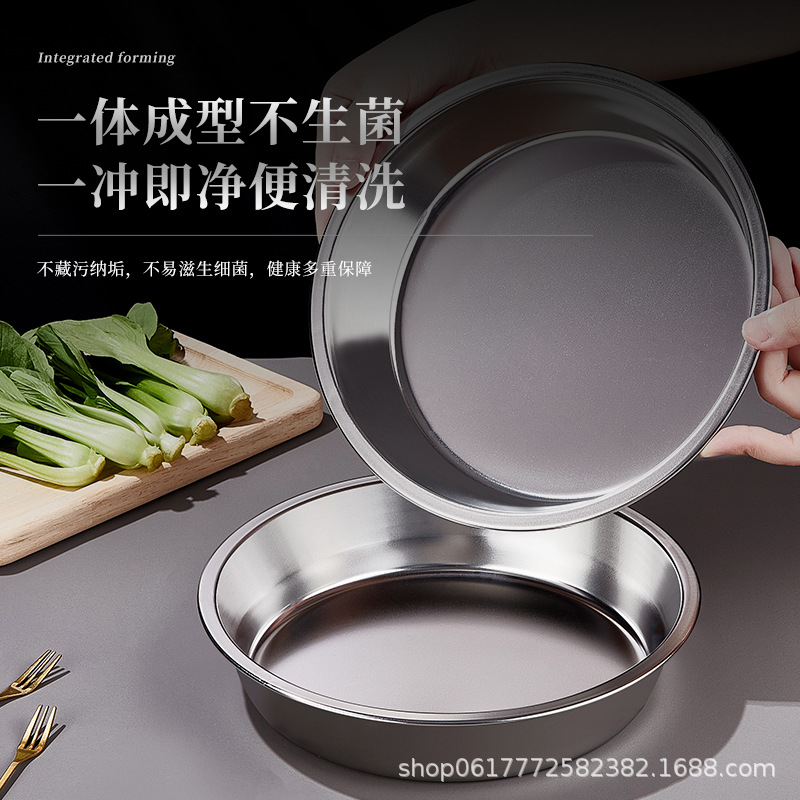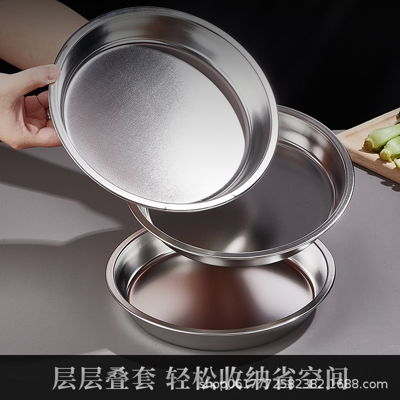 [전자상거래 도매 전용] 스테인레스 스틸 원형 접시 생선 찜 과자 평평한 바닥 찜 케이크 냉면 가정용 상업용 접시