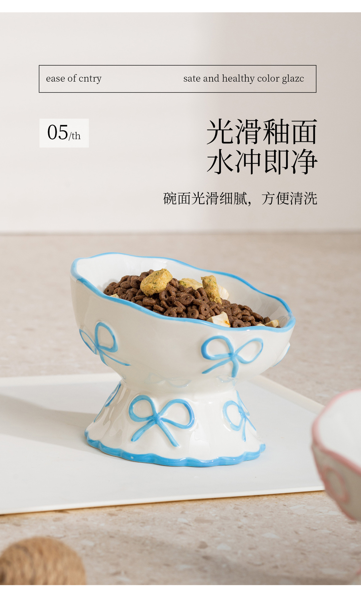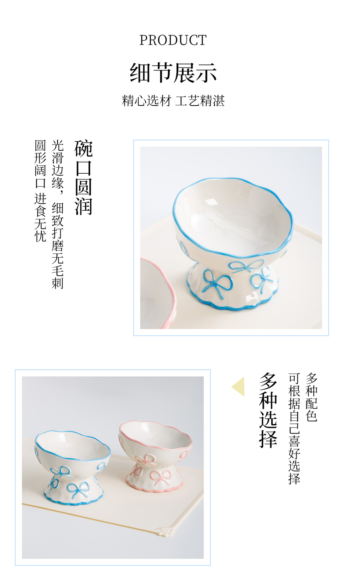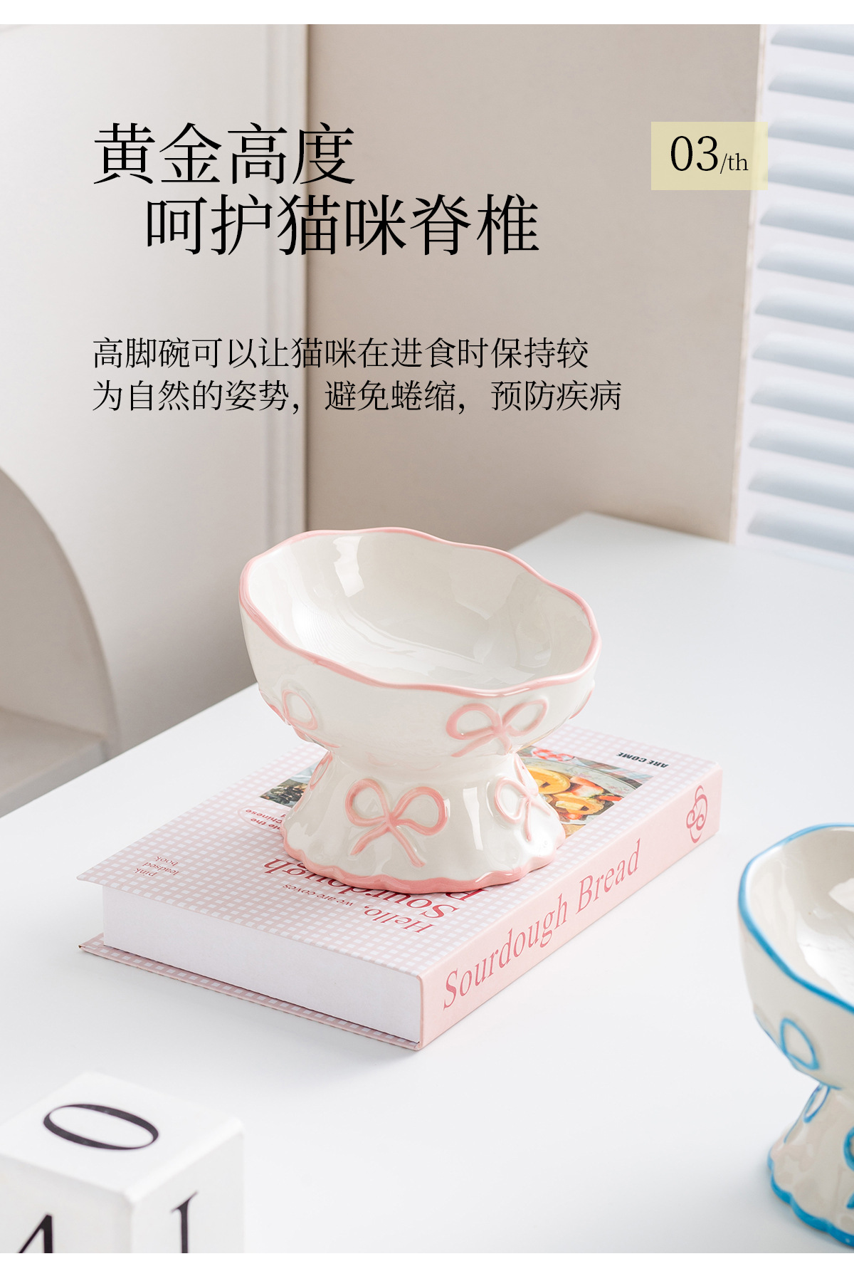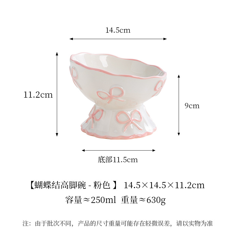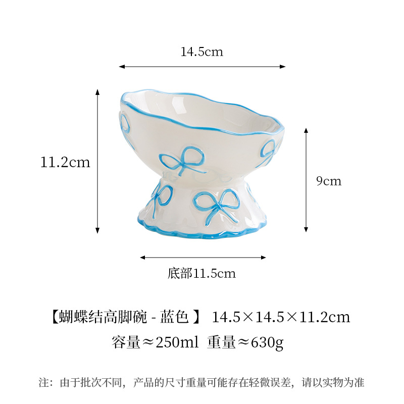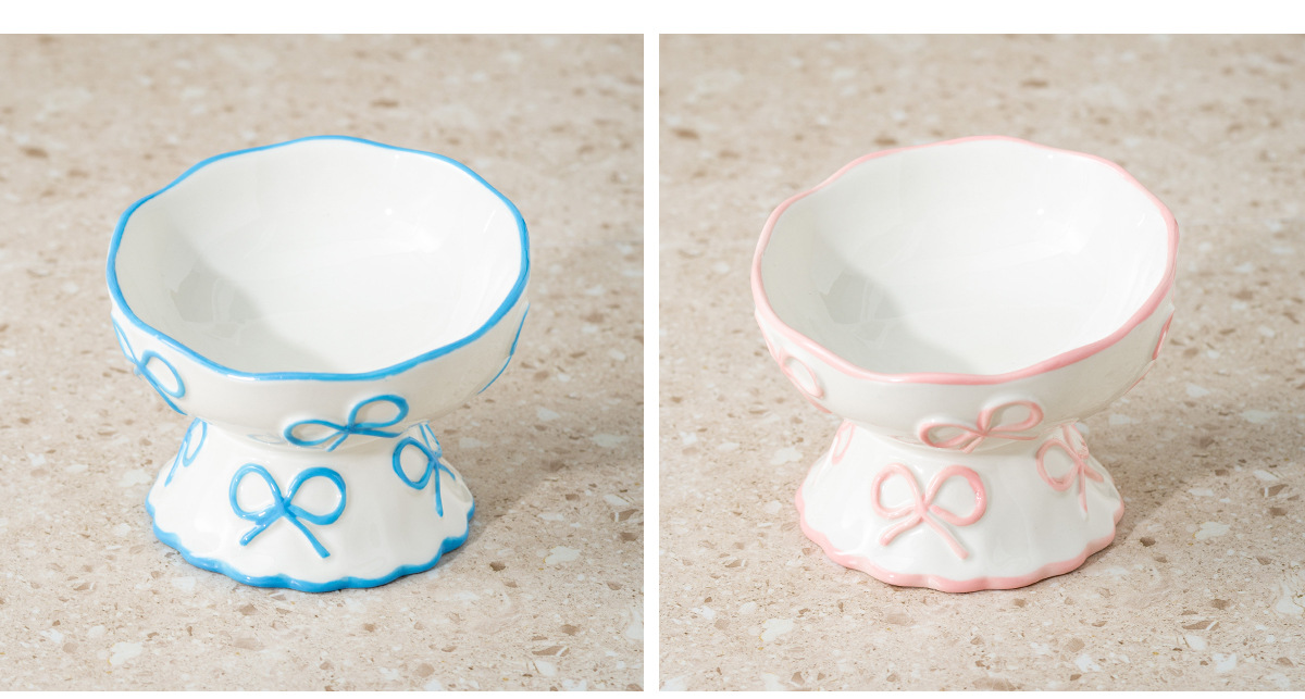 창의적인 양각 나비 매듭 높은 애완 동물 그릇, 세라믹 경사 그릇, 고양이 그릇, 개 그릇, 넘어짐 방지 식수 그릇, 경추 보호스토어 가기