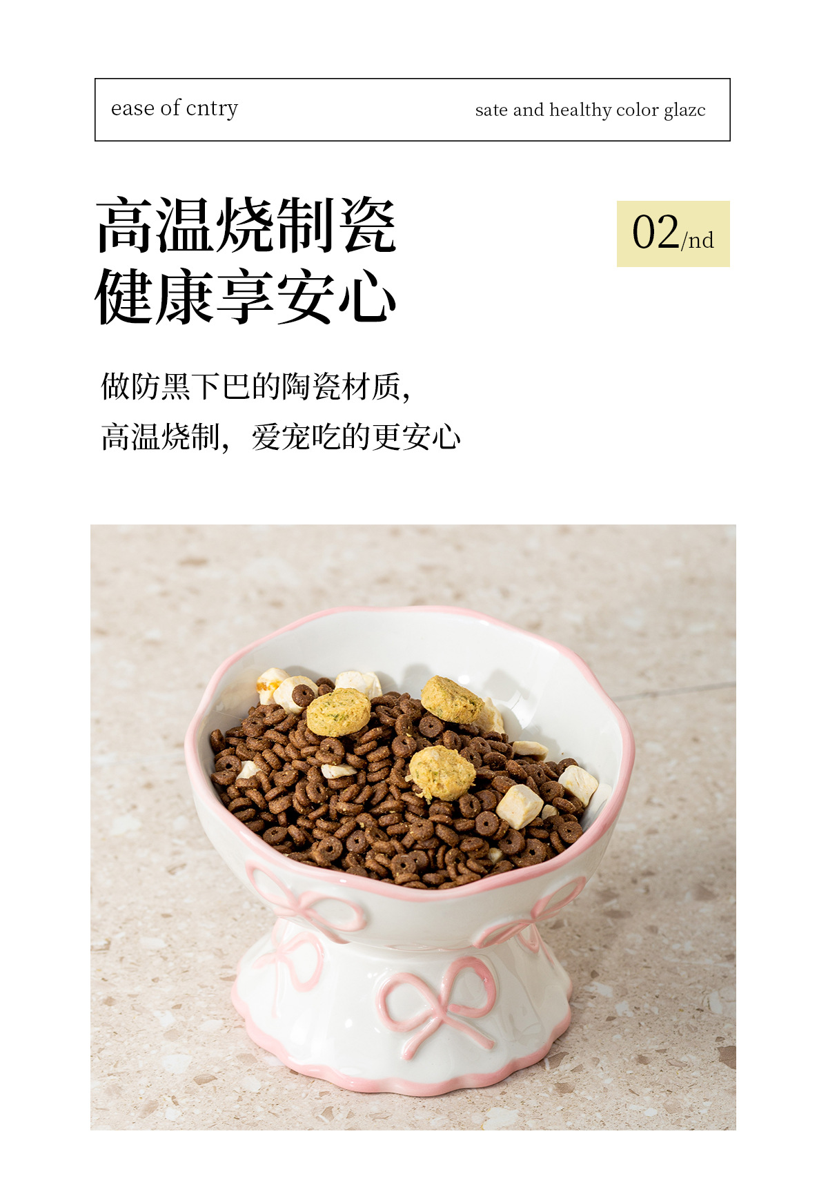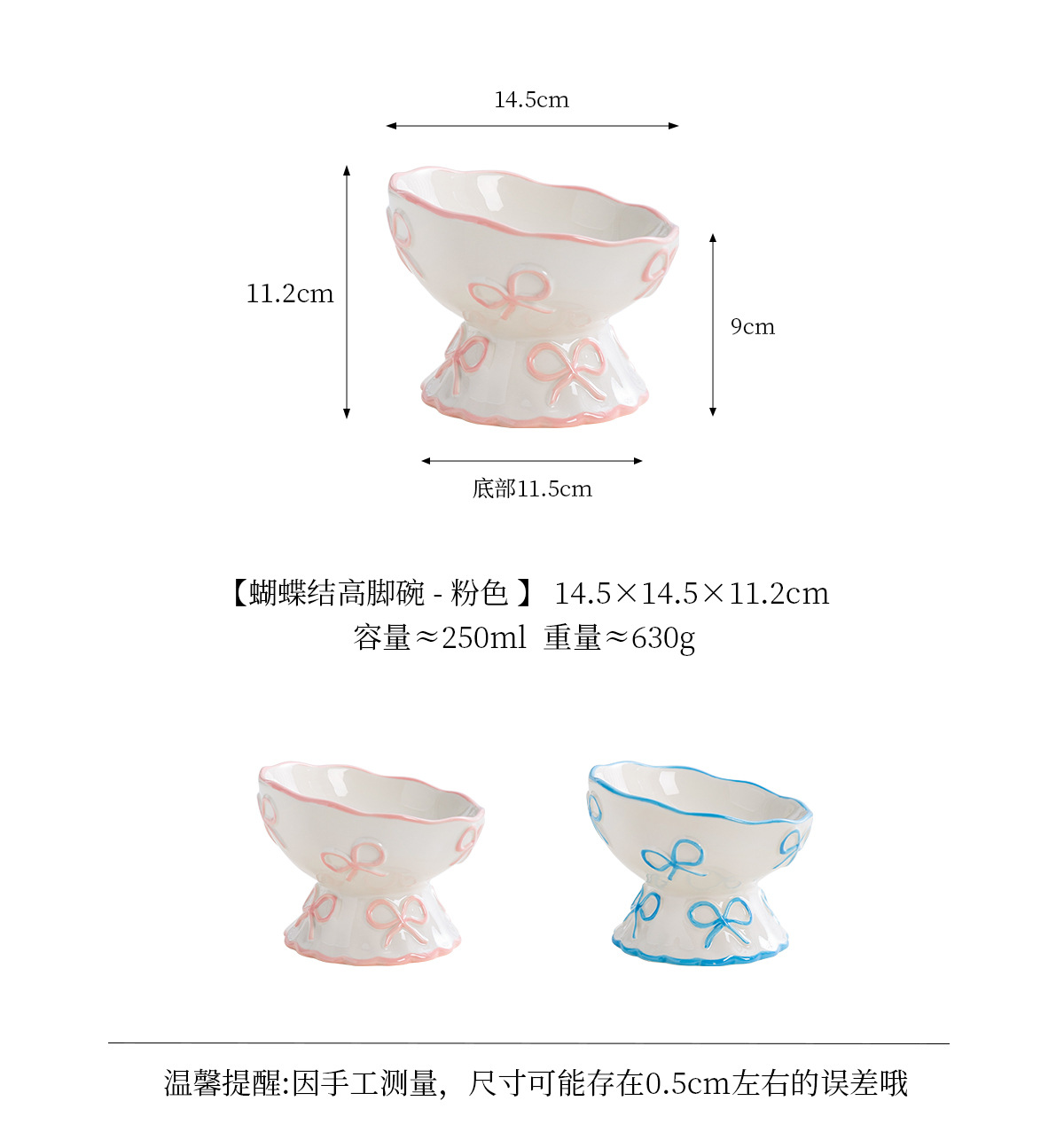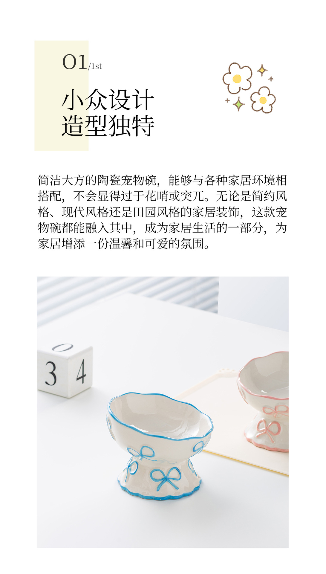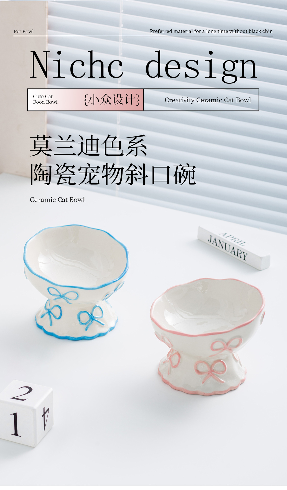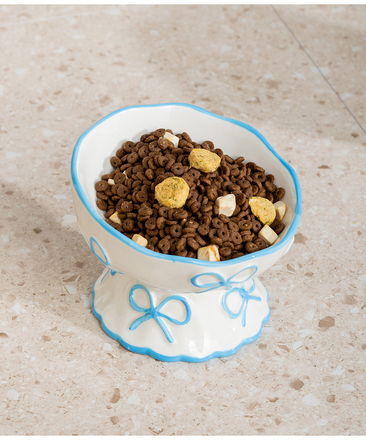 창의적인 양각 나비 매듭 높은 애완 동물 그릇, 세라믹 경사 그릇, 고양이 그릇, 개 그릇, 넘어짐 방지 식수 그릇, 경추 보호스토어 가기