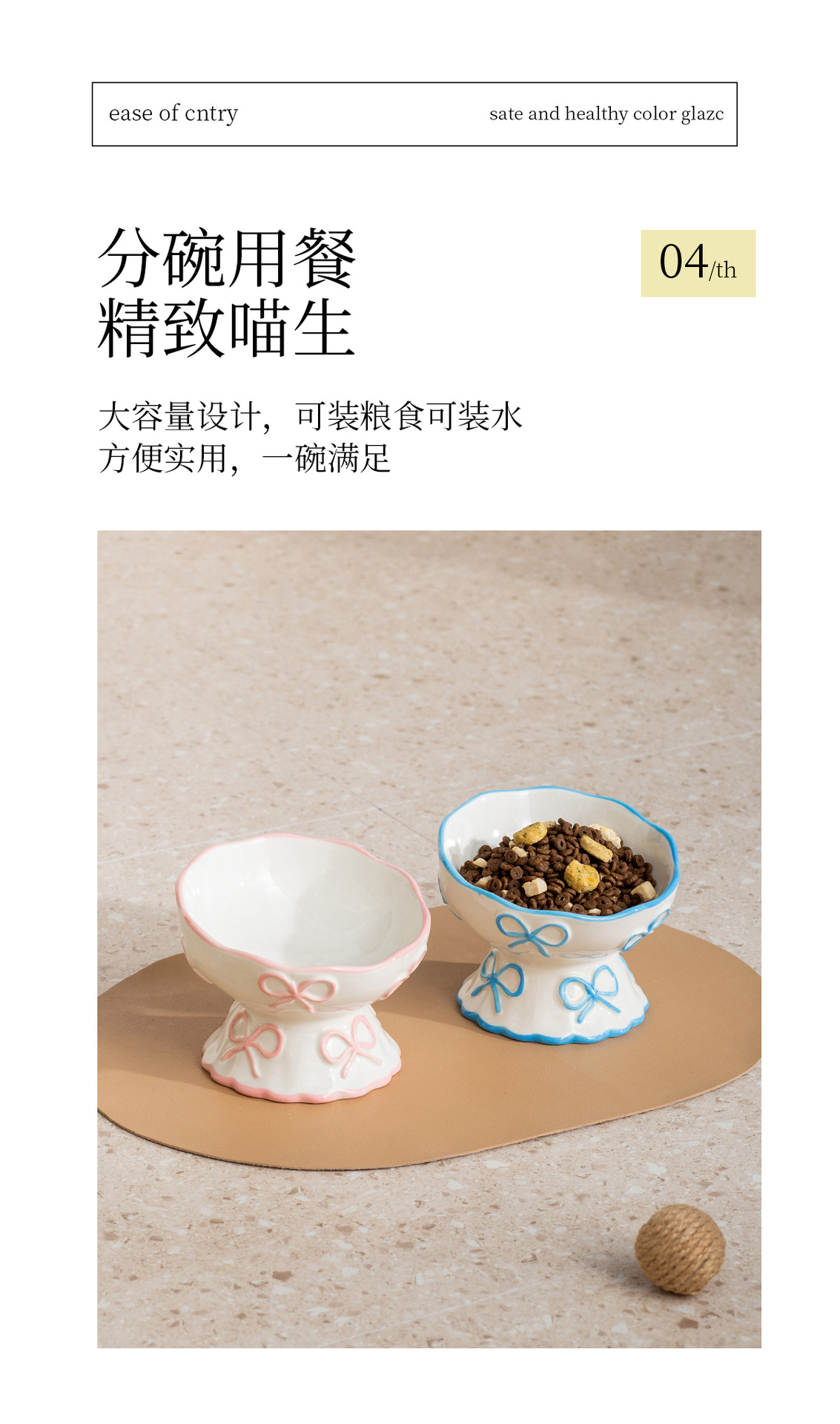 창의적인 양각 나비 매듭 높은 애완 동물 그릇, 세라믹 경사 그릇, 고양이 그릇, 개 그릇, 넘어짐 방지 식수 그릇, 경추 보호