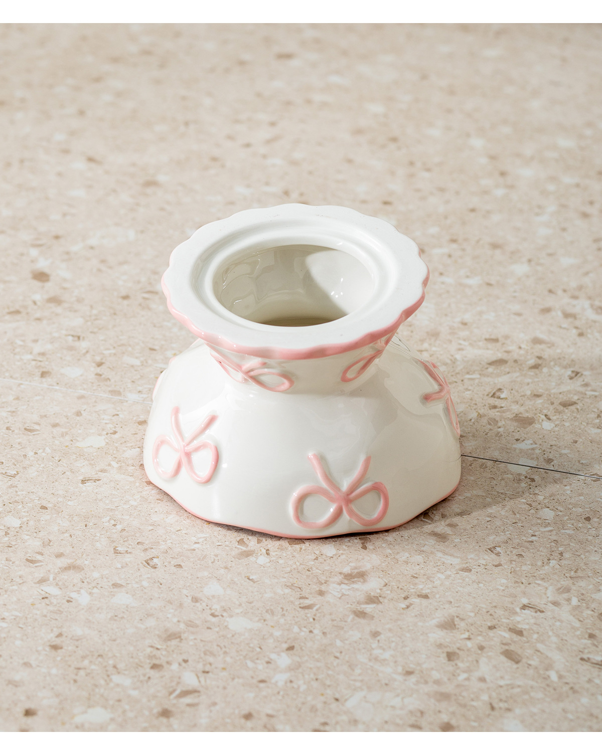 • 양각 리본 톨 비스듬한 그릇 [핑크]