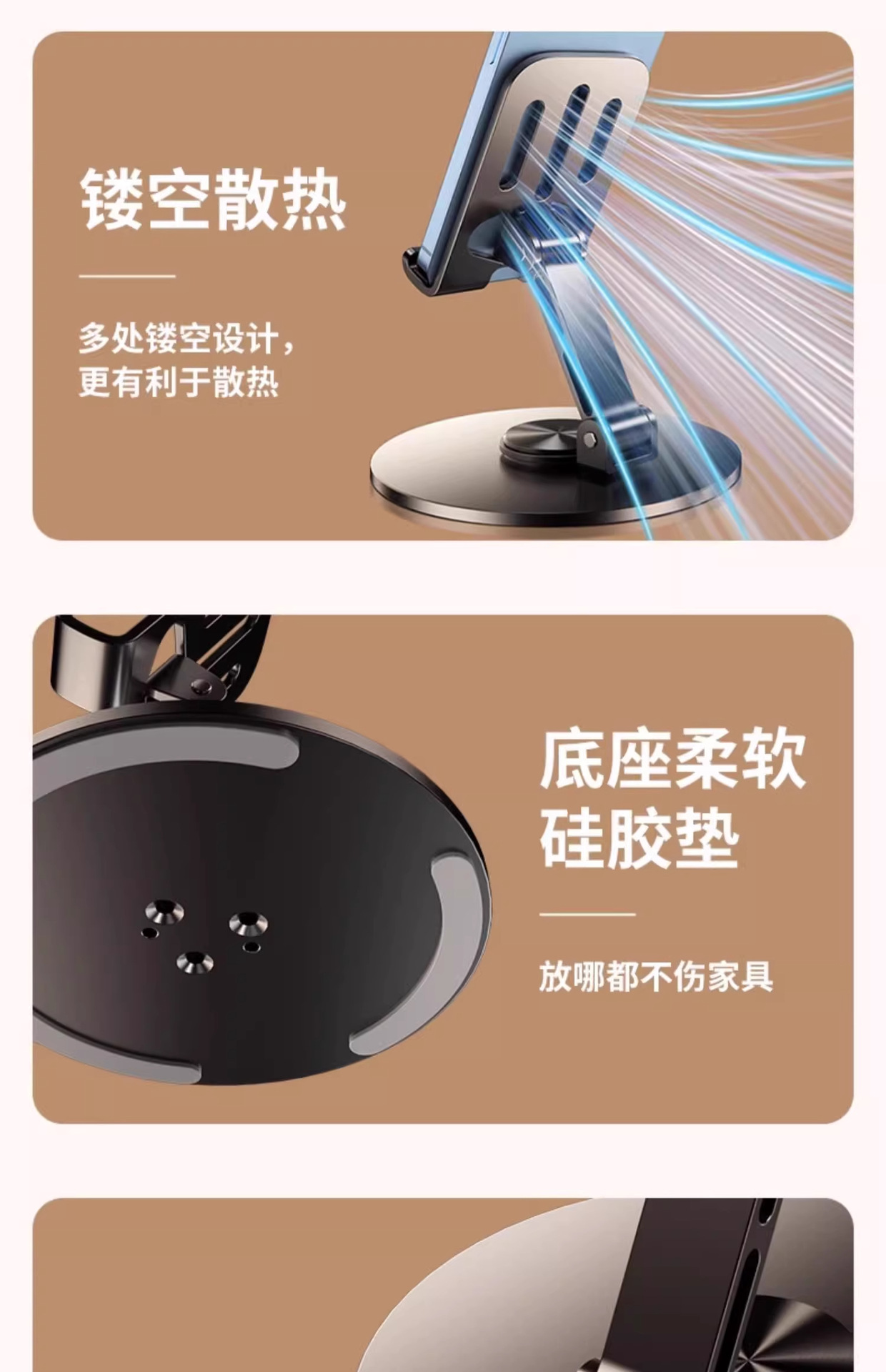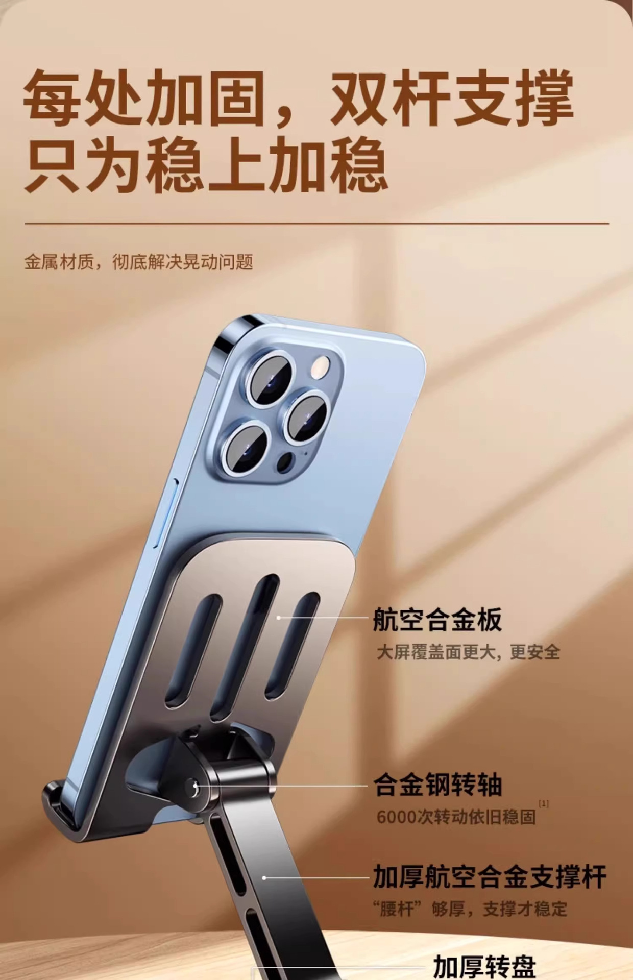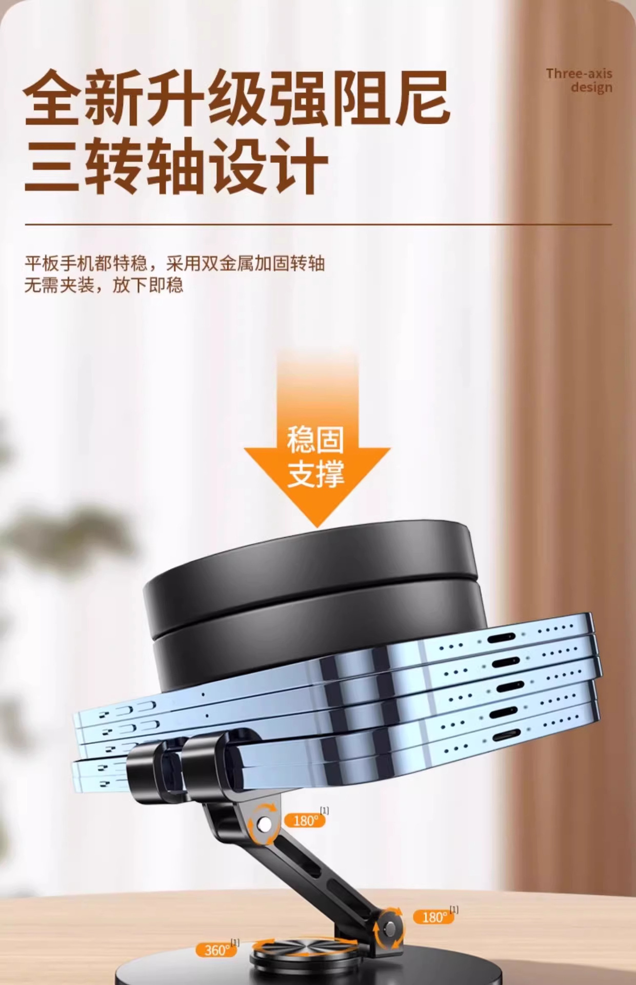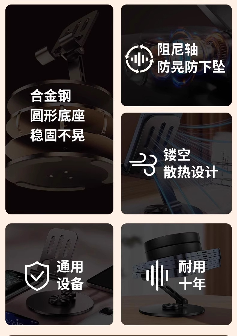 회전식 풀 메탈 휴대폰 홀더, 기계식 접이식 휴대폰 및 태블릿, 게으른 사람들을 위한 범용 드라마 시청, 라이브 방송 휴대용 홀더