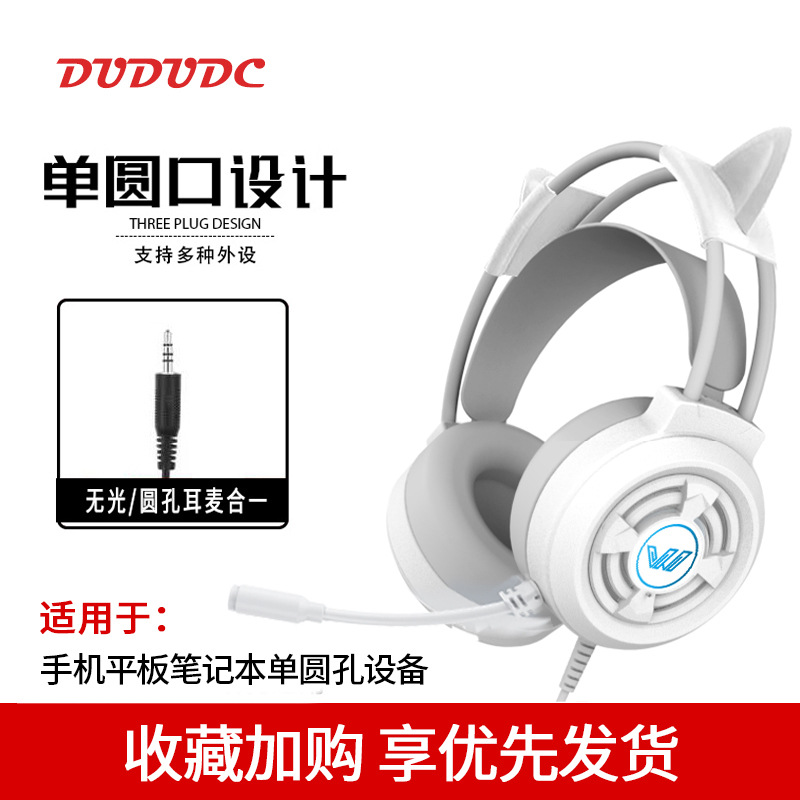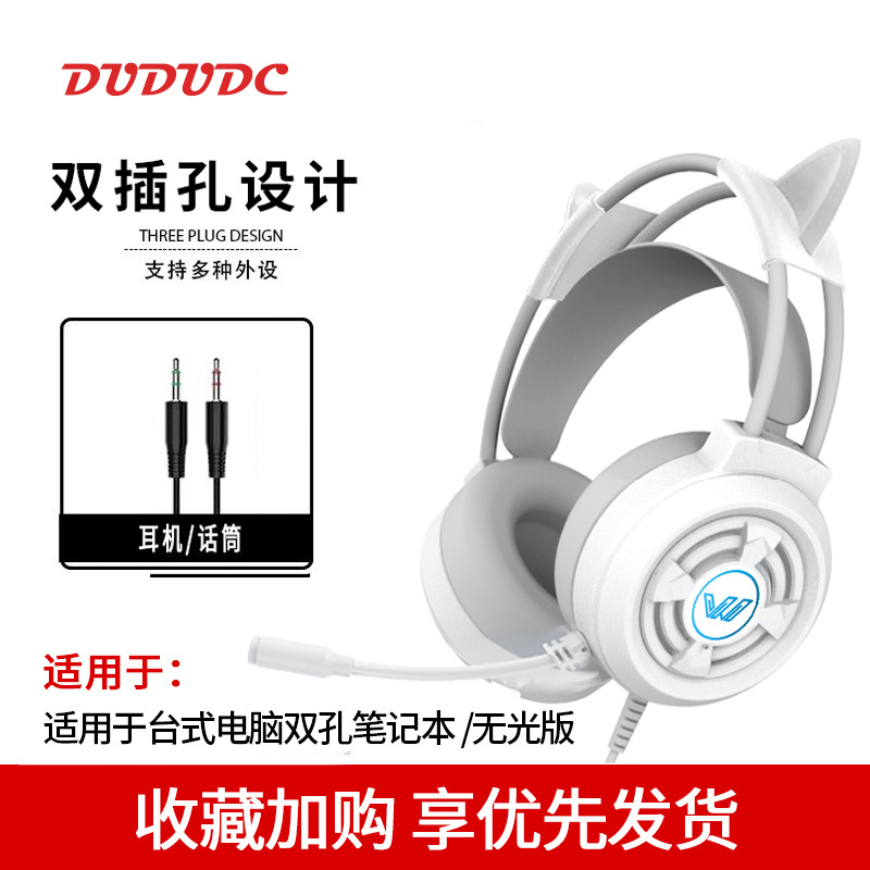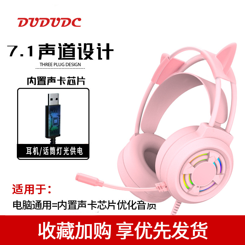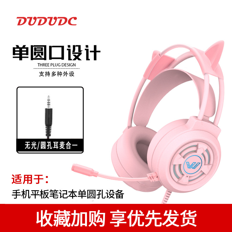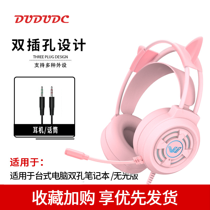핑크 고양이 귀 헤드셋 헤드 장착형 유선 마이크 컴퓨터 데스크탑 e-스포츠 게임 라이브 방송 앵커 특수 헤드셋