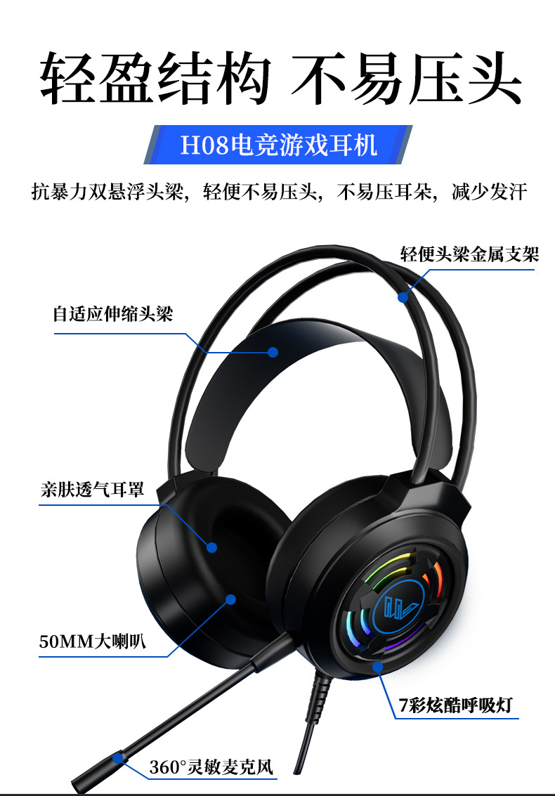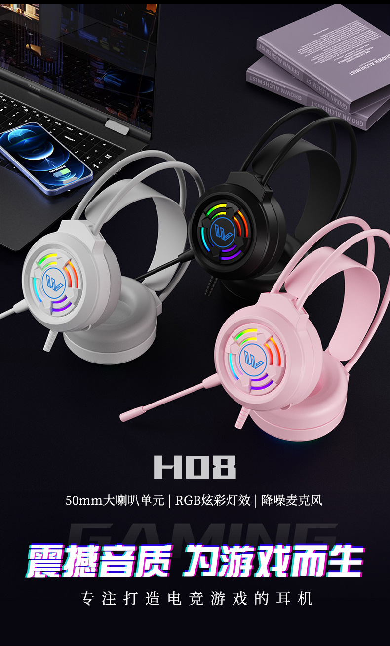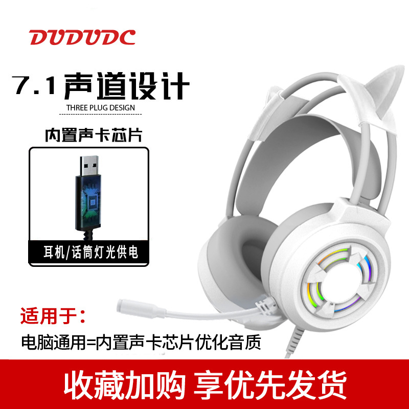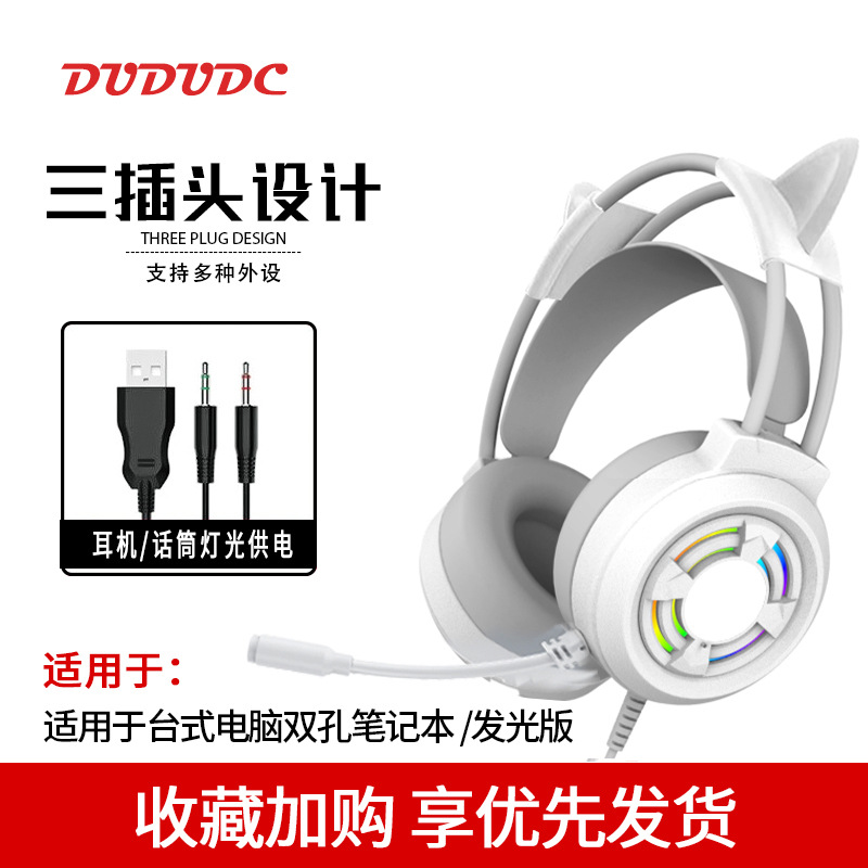 핑크 고양이 귀 헤드셋 헤드 장착형 유선 마이크 컴퓨터 데스크탑 e-스포츠 게임 라이브 방송 앵커 특수 헤드셋