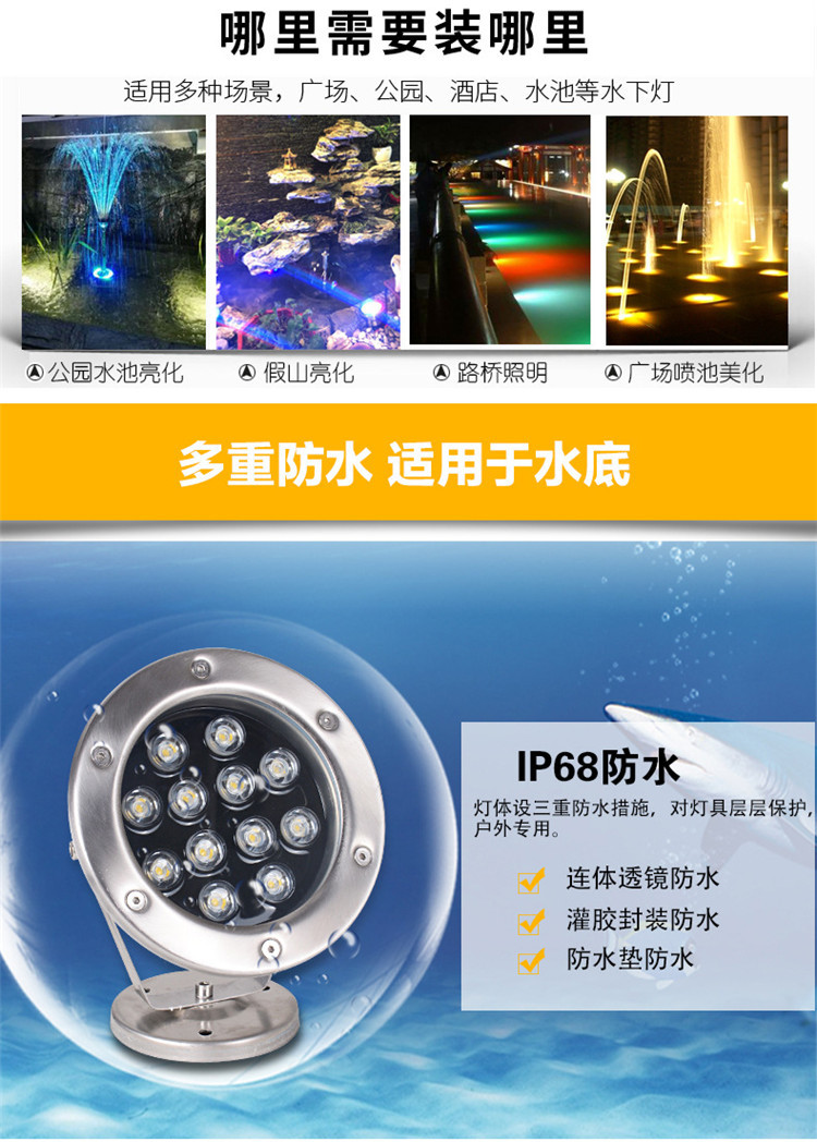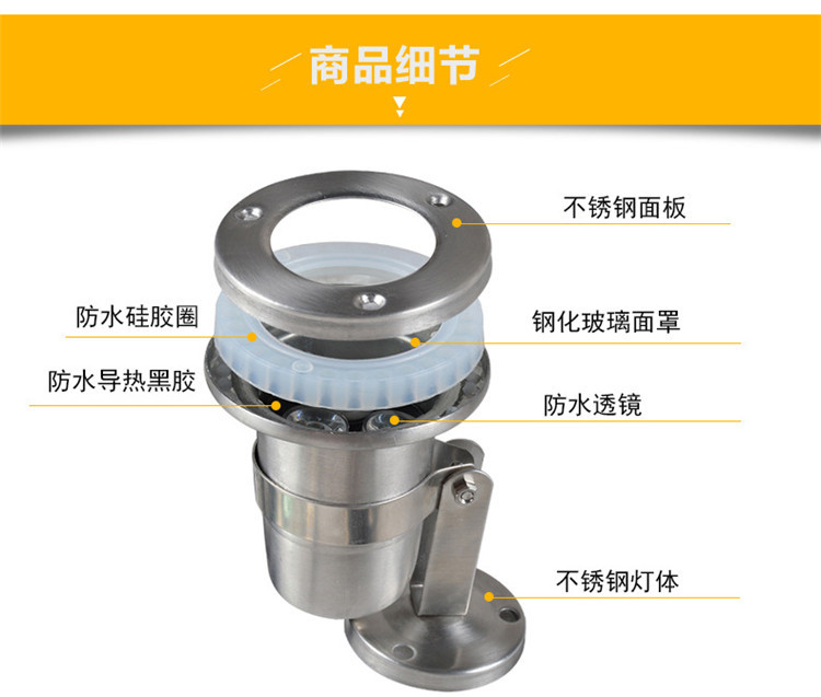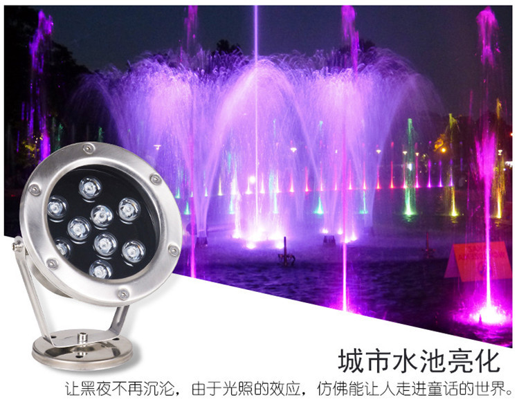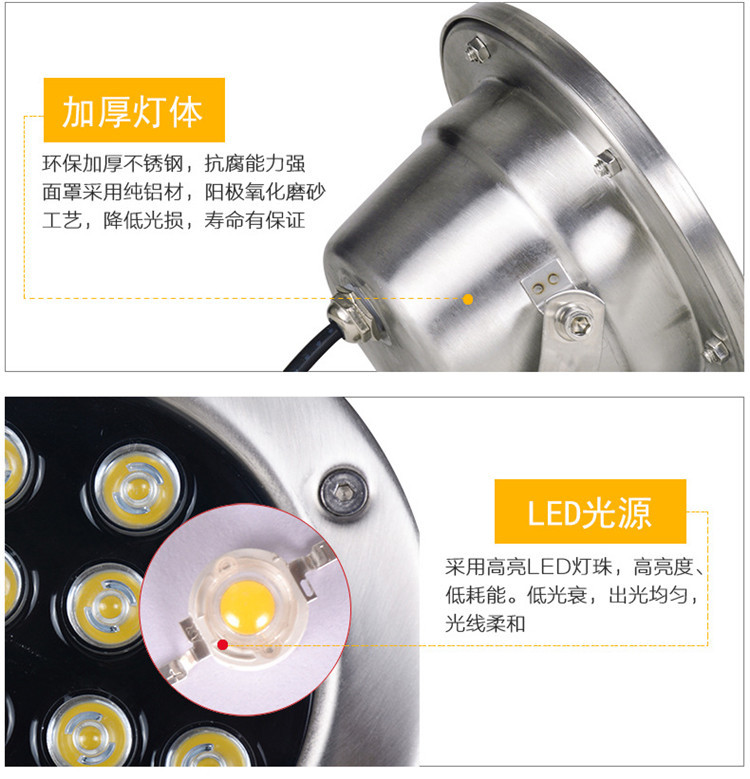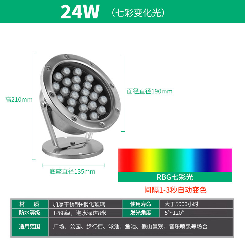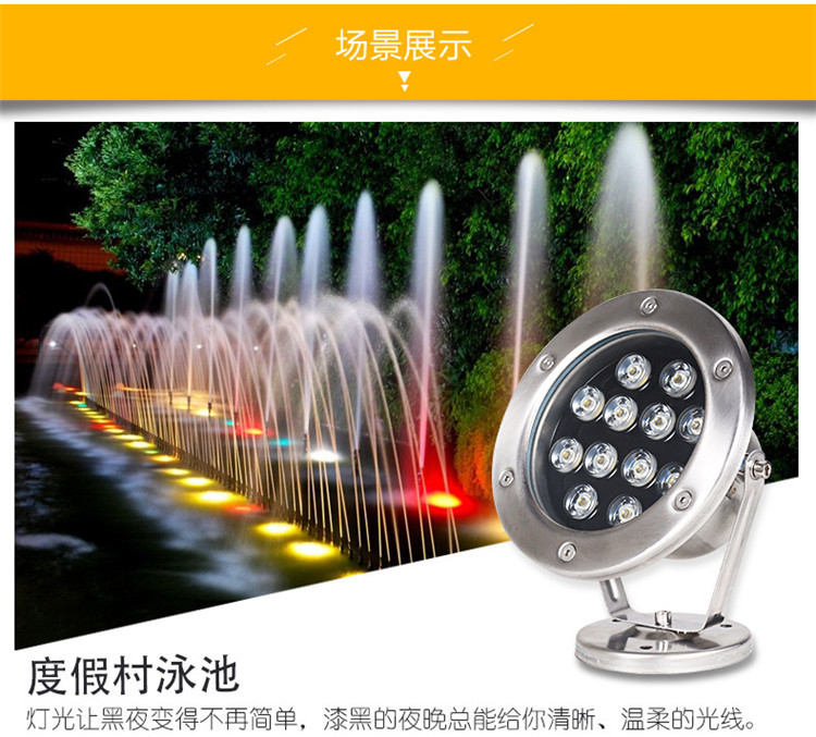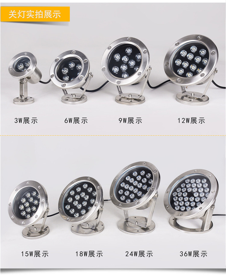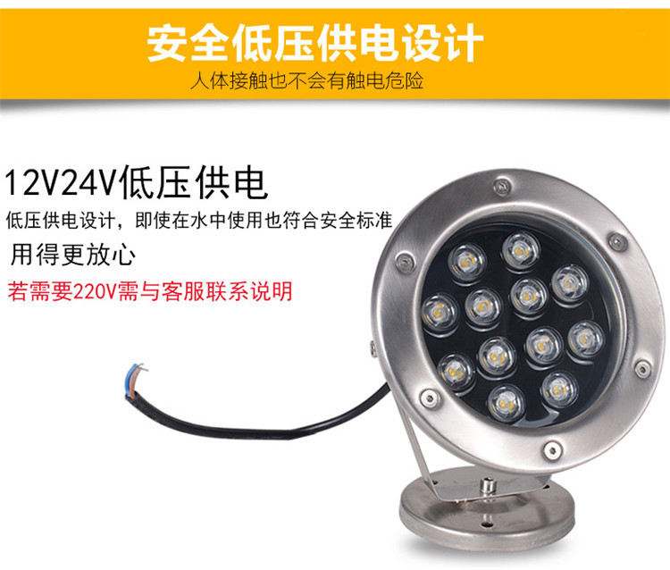 景观花园庭院别墅水池锦鲤鱼池低压12V 24V不锈钢潜水底LED射灯