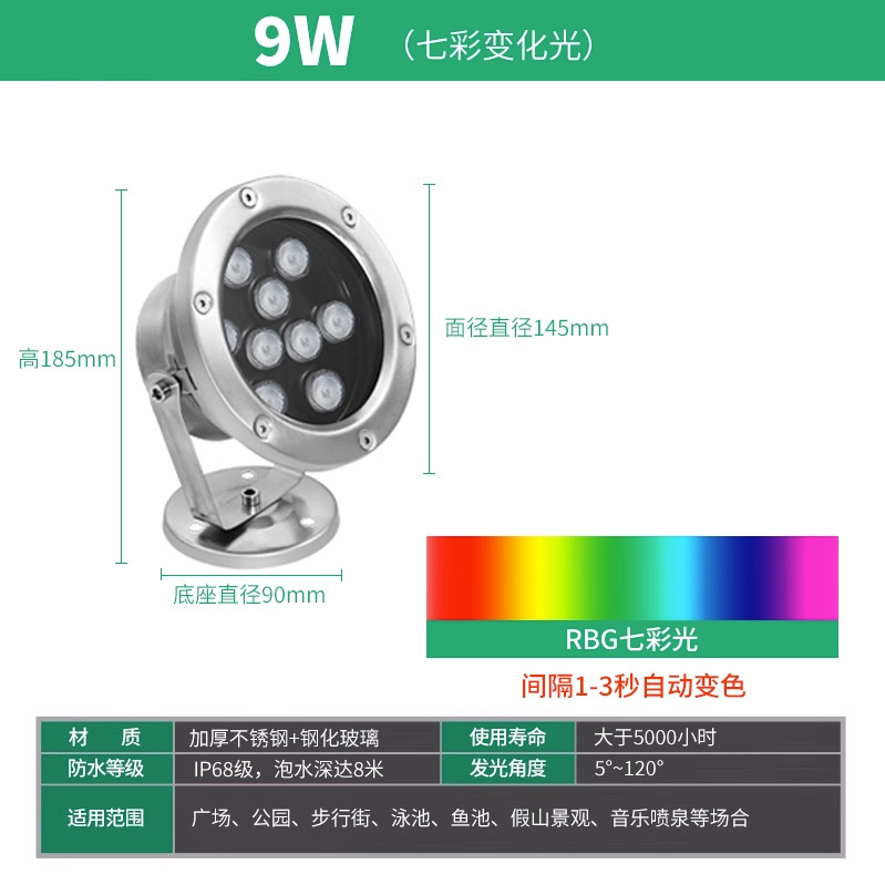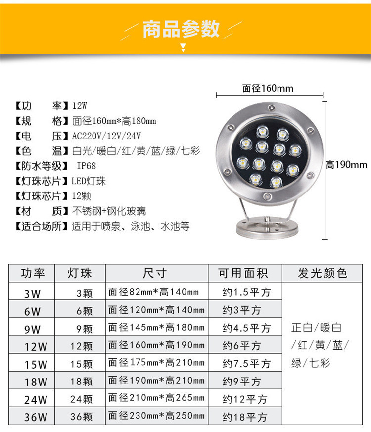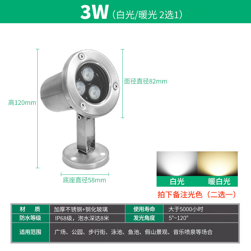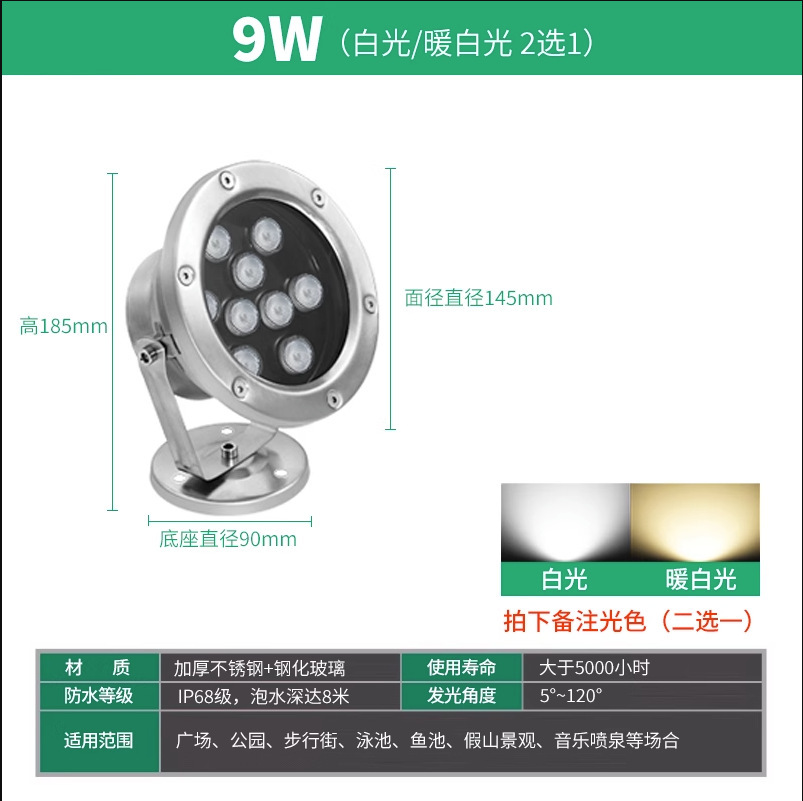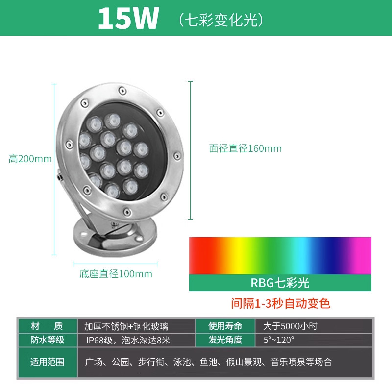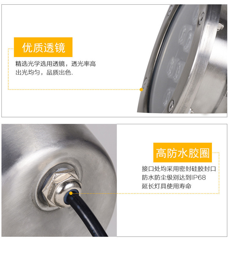 景观花园庭院别墅水池锦鲤鱼池低压12V 24V不锈钢潜水底LED射灯