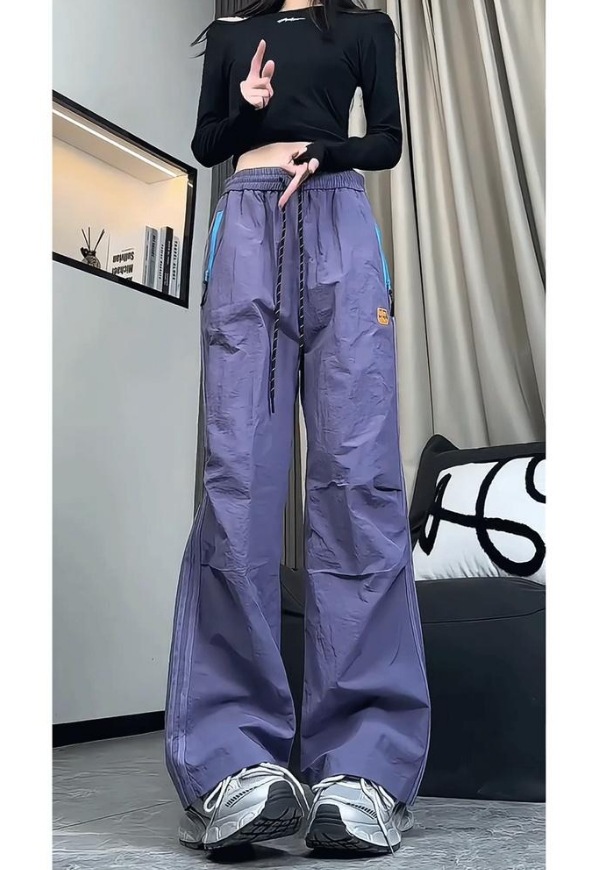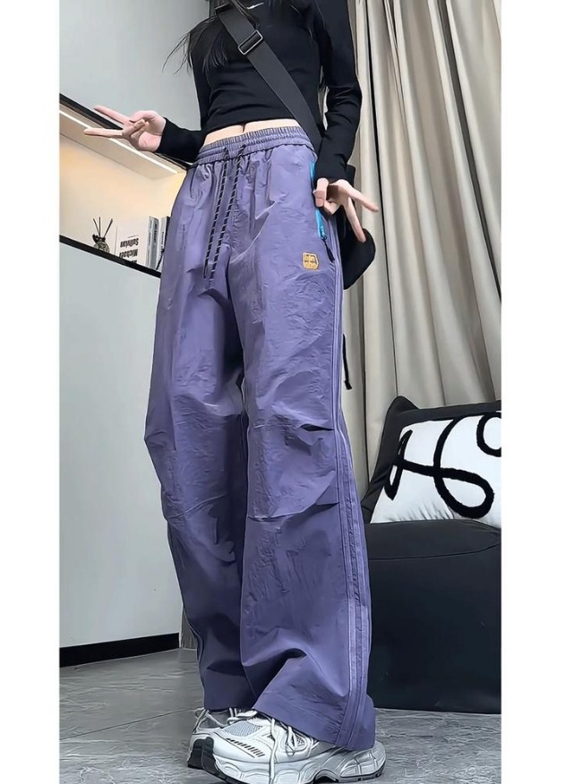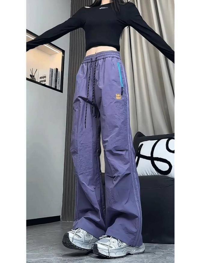 속건성 아메리칸 3방수 낙하산 바지 남성 여름 작업복 스트라이프 아이스 실크 바지 스트레이트 아웃도어 등산 바지스토어 가기