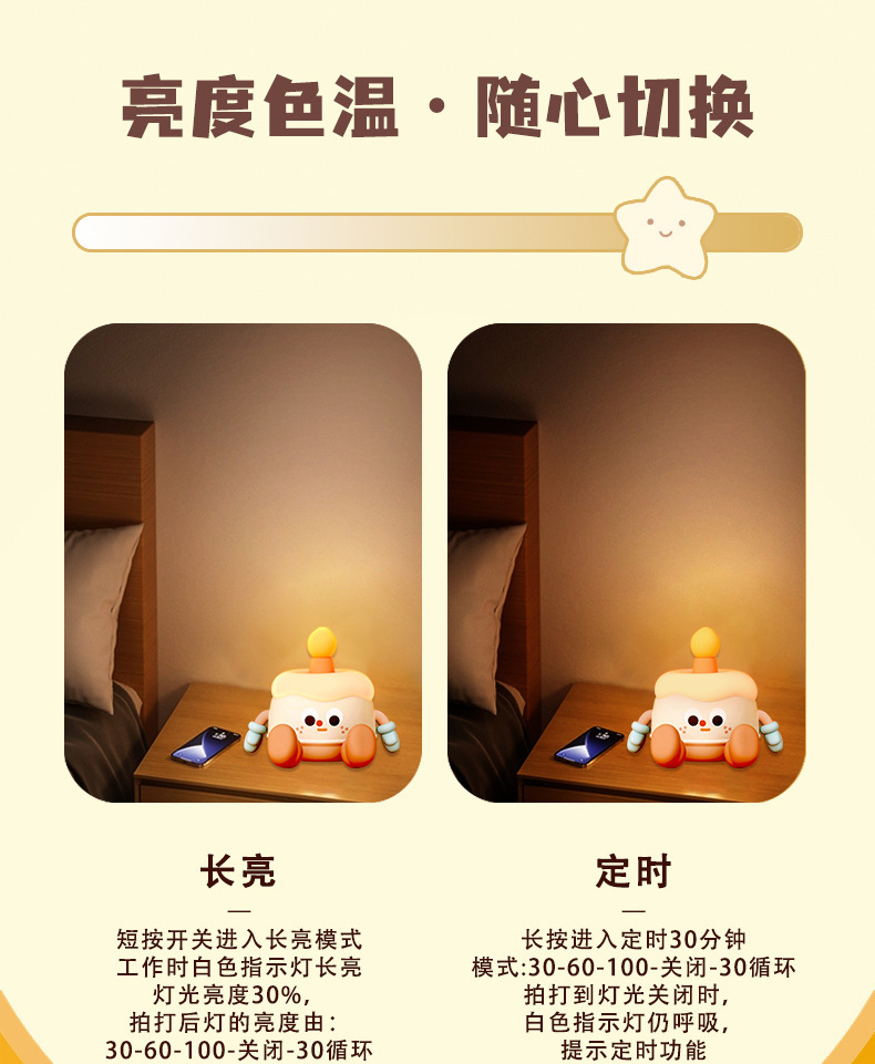 생일 케이크 램프 | 생일 케이크 분위기 야간 조명 탭 센서 휴대폰 홀더