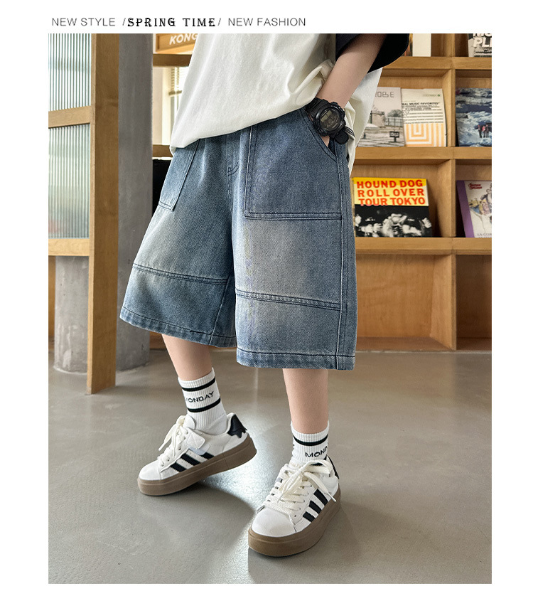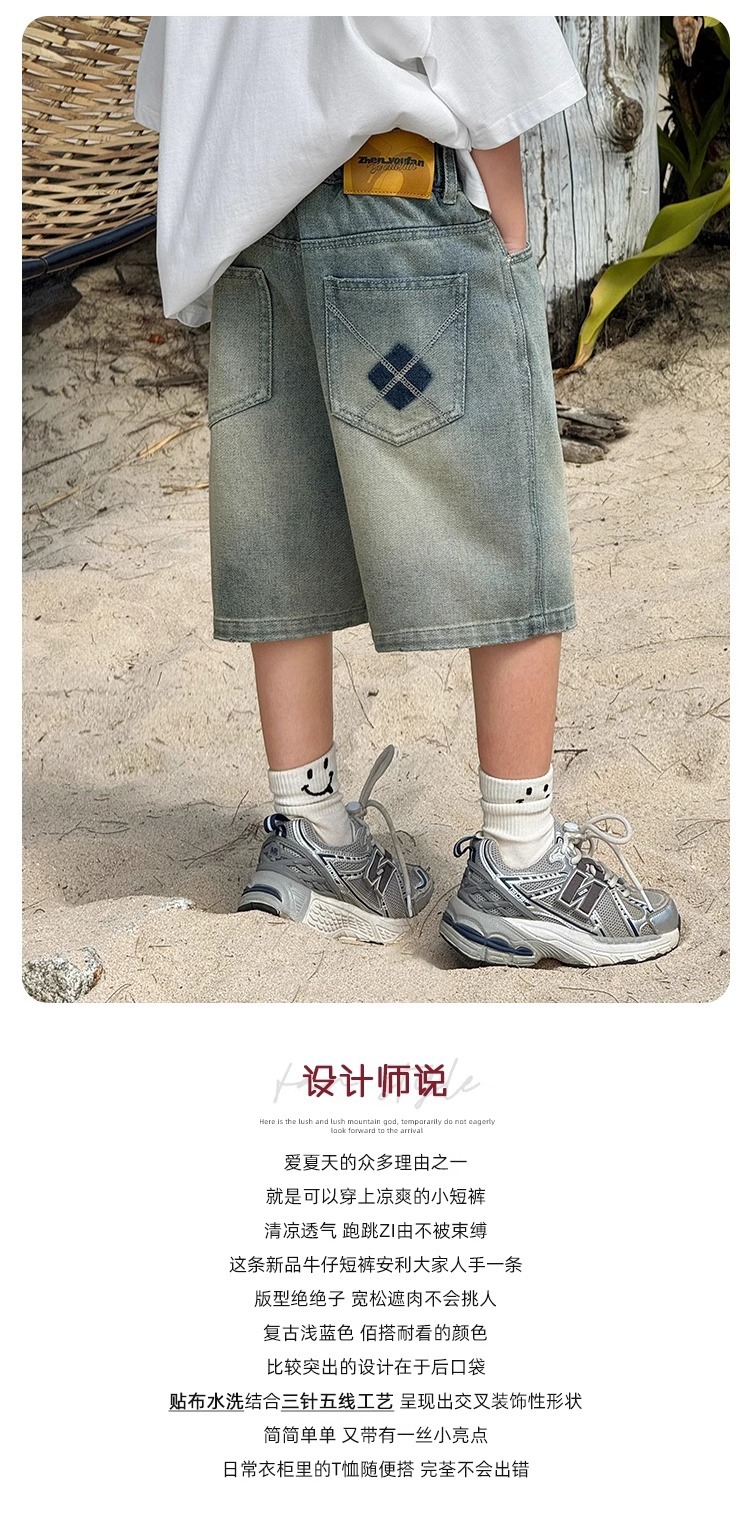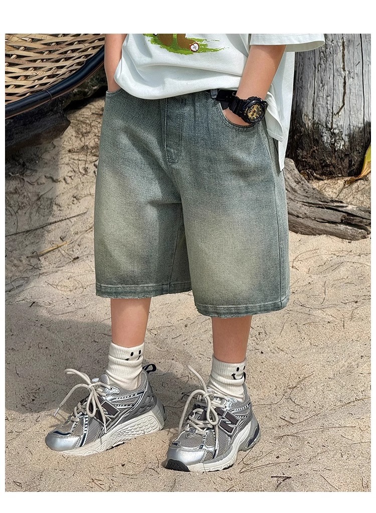 아동복 남아 여름 데님 반바지 2026 신상 루즈핏 중대형 아동용 중간기장 바지 여름 얇은 5부 바지 트렌디스토어 가기