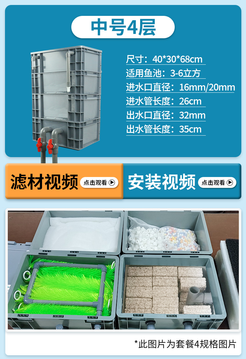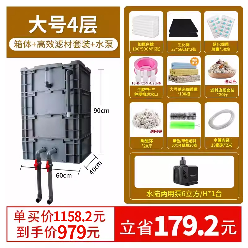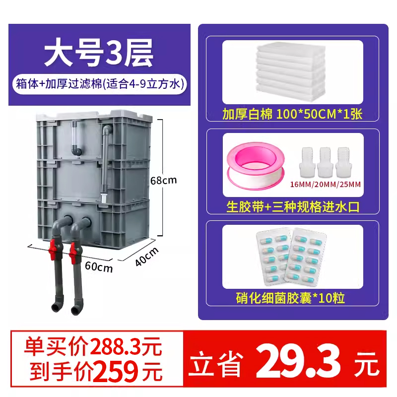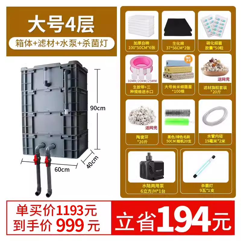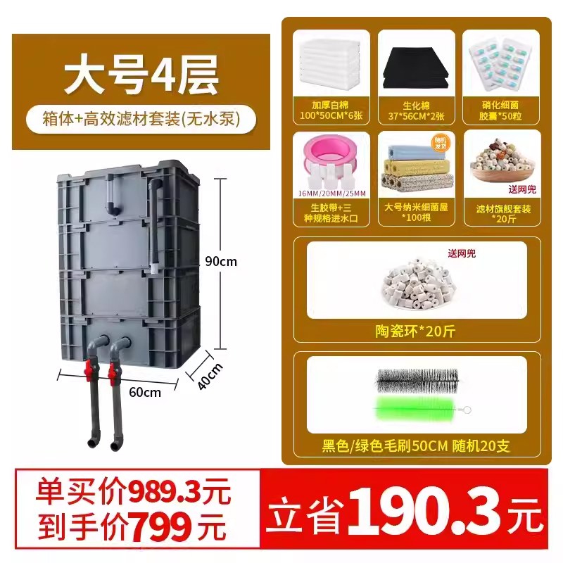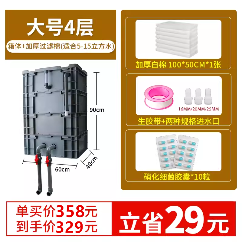 • 대형 4층 [상자 + 두꺼운 필터면] [5-15 입방미터의 물에 적합]