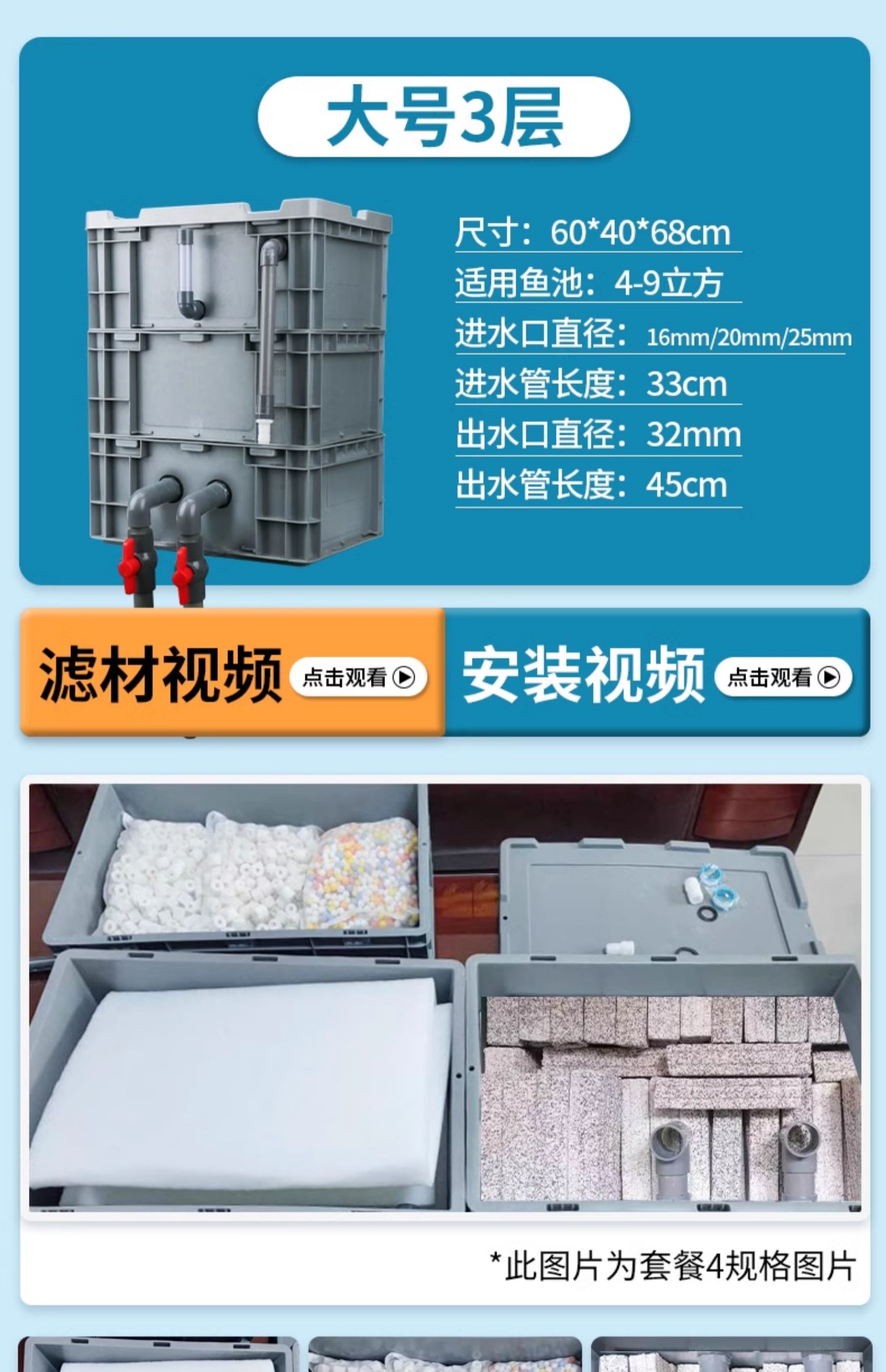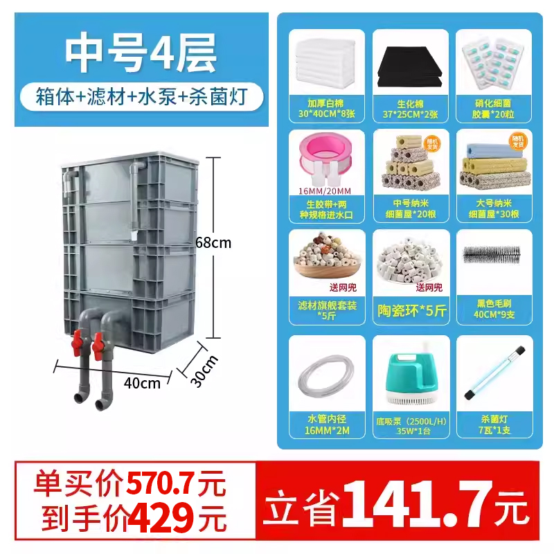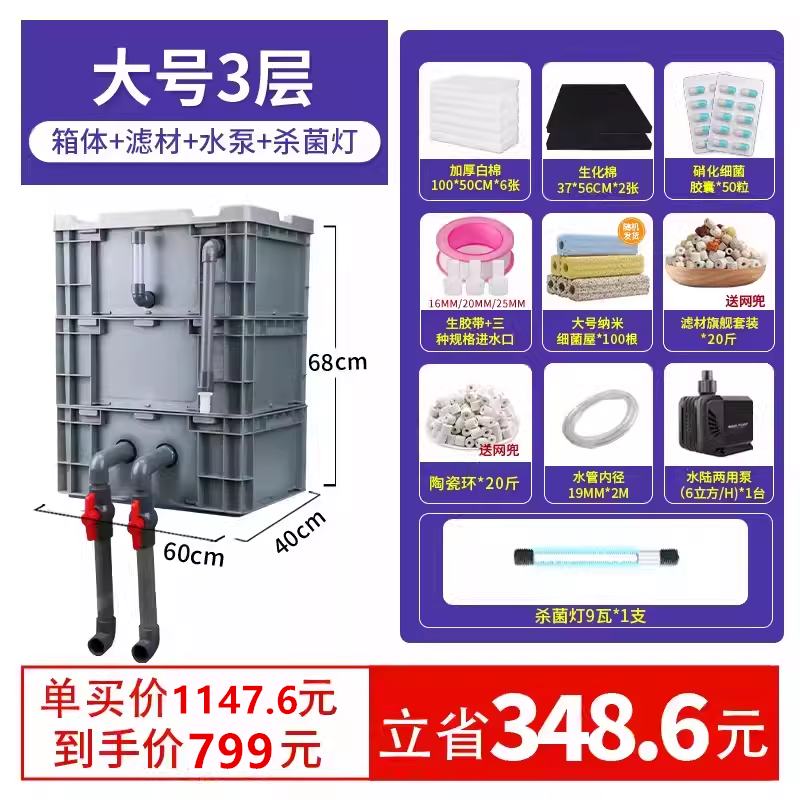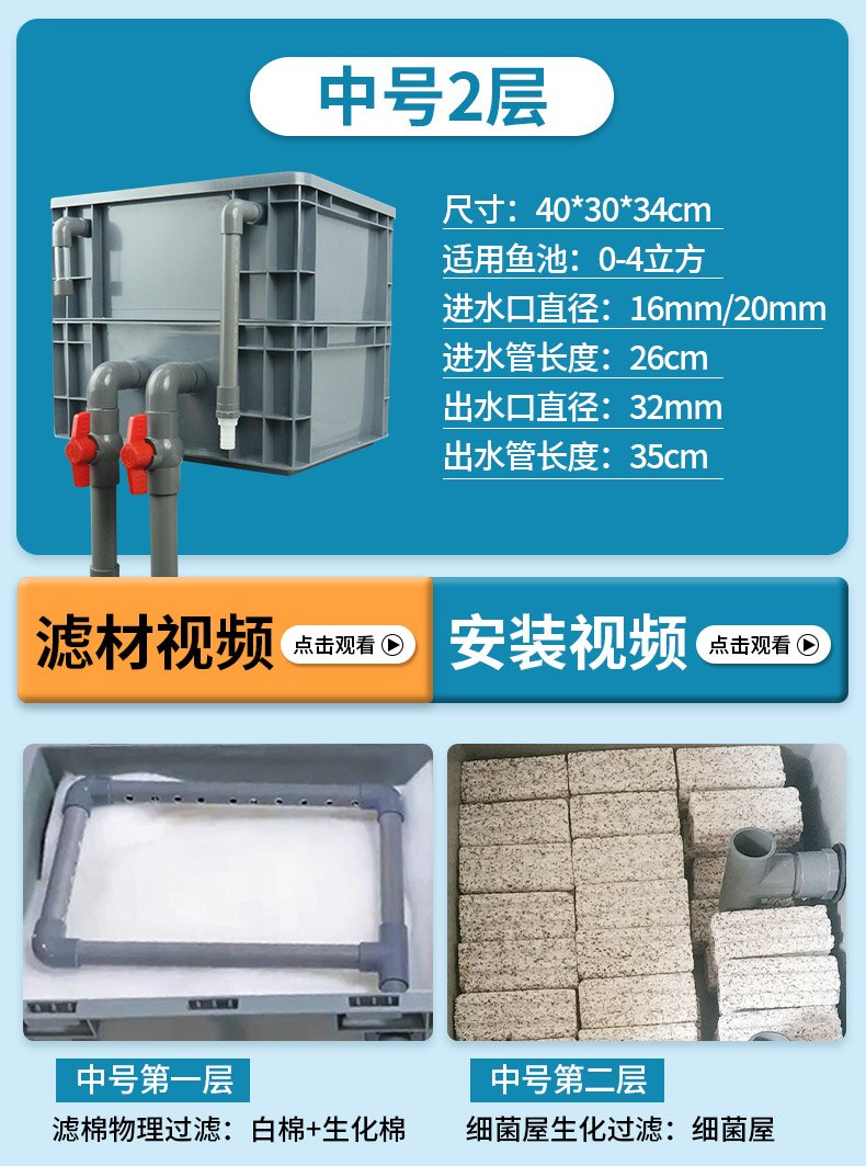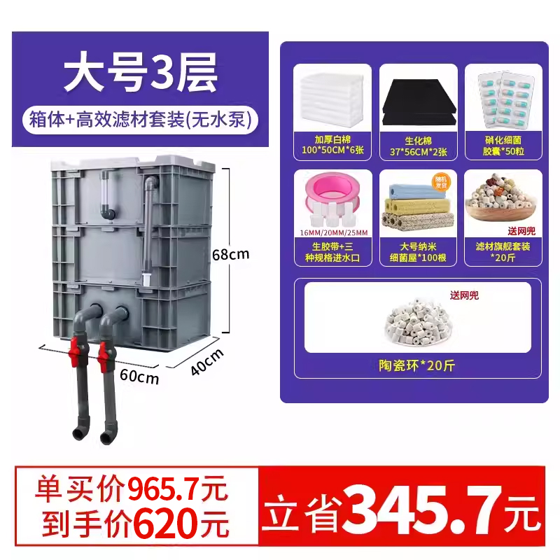• 대형 4층 [상자 + 두꺼운 필터면] [5-15 입방미터의 물에 적합]