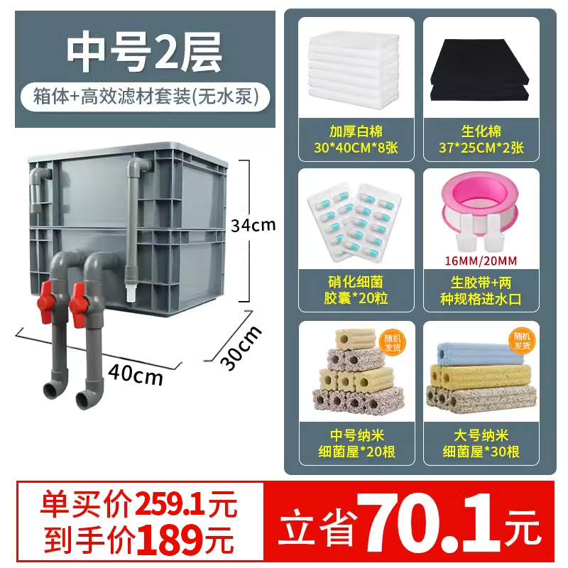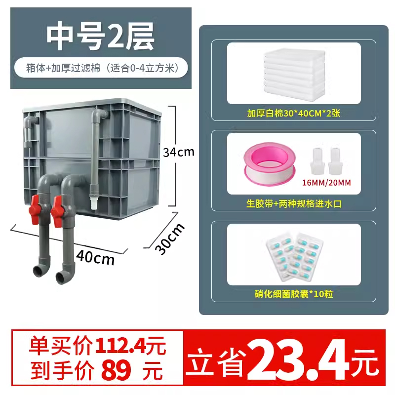 • 중간 크기 2겹 [베어 박스 + 두꺼운 필터 면] [0-4 입방 미터의 물에 적합]