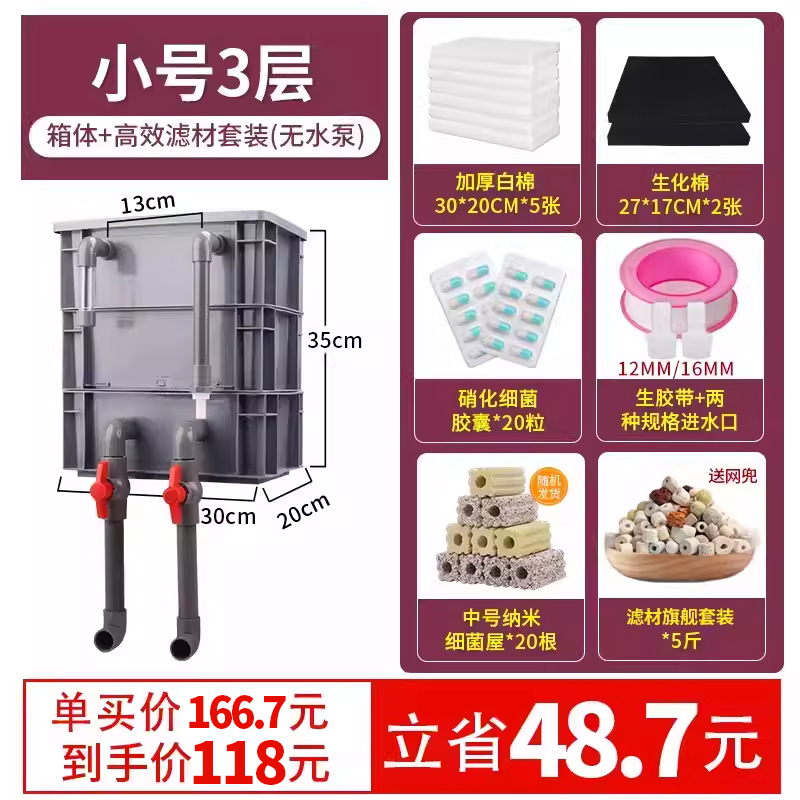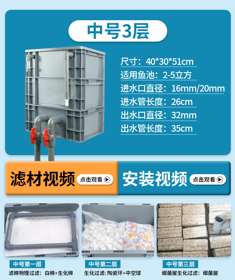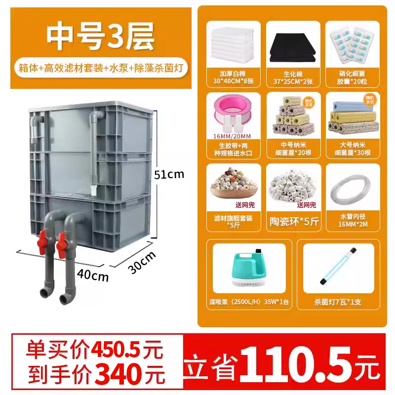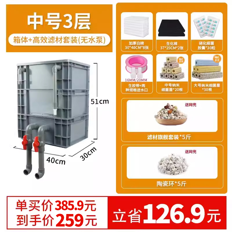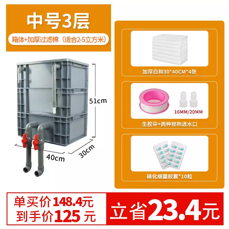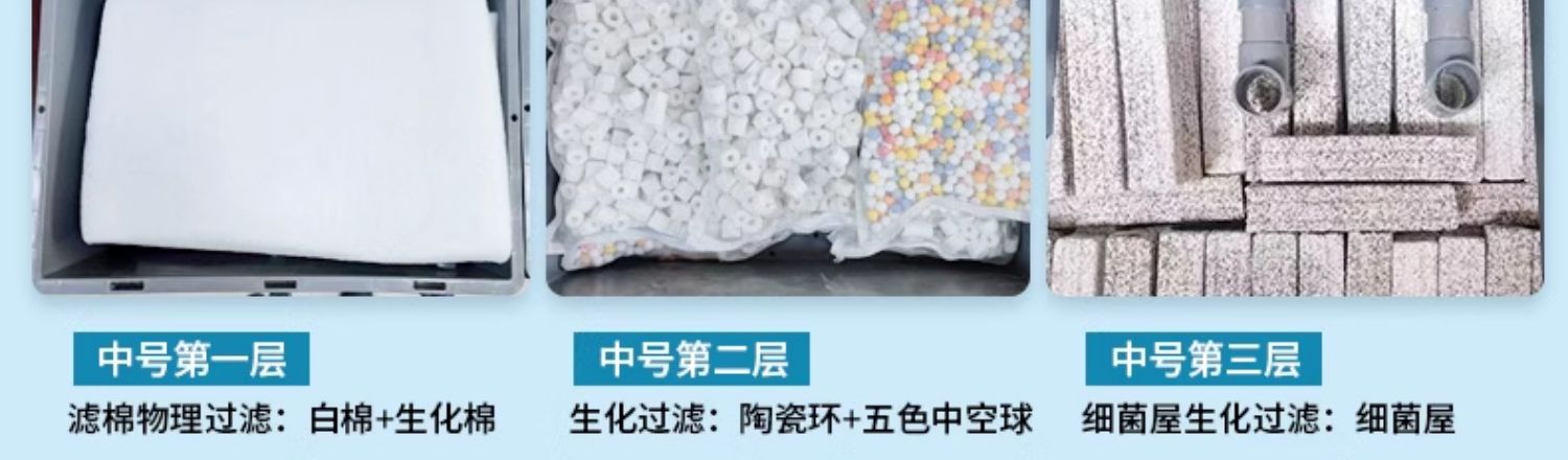 • 중간 크기 3겹 [베어 박스 + 두꺼운 필터 면] [2-5 입방 미터의 물에 적합]