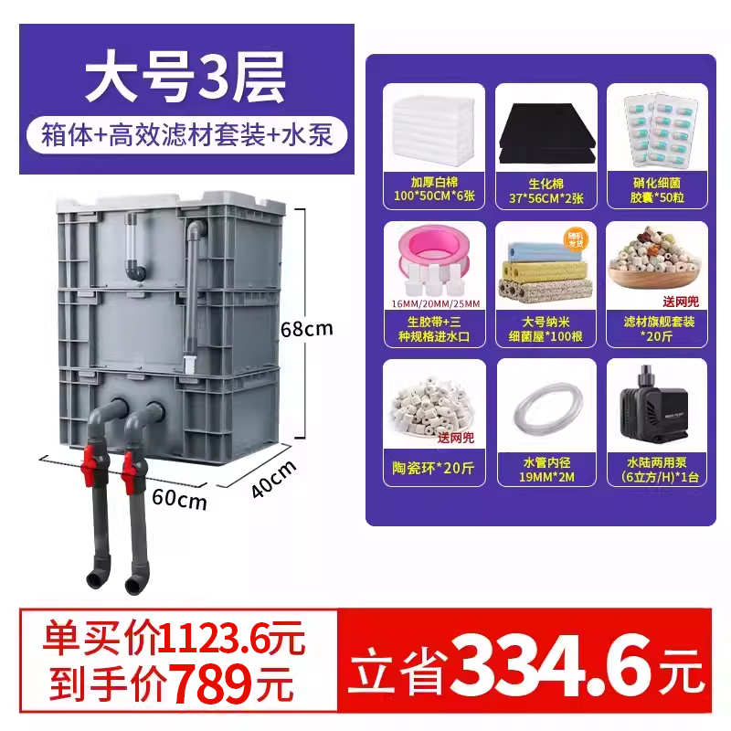 • 대형 3단 [박스+필터재세트] 워터펌프 없음