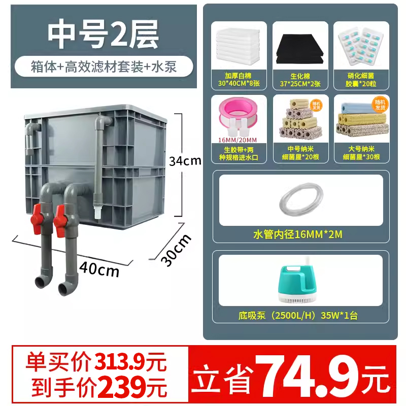 • 중형 2단 [박스+필터재세트+워터펌프+조류제거램프]