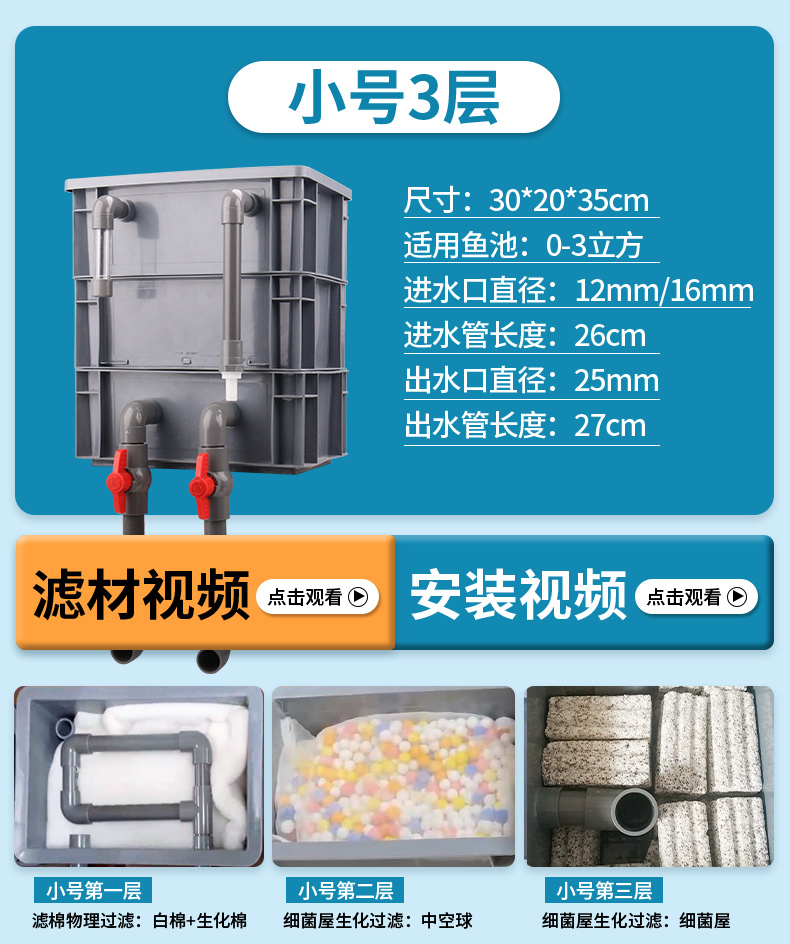 • 소형 3층 [박스 + 두꺼운 필터면] [0-3 입방미터의 물에 적합]