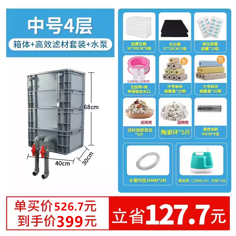 • 특대형 4단 [박스+필터재세트] 워터펌프 없음