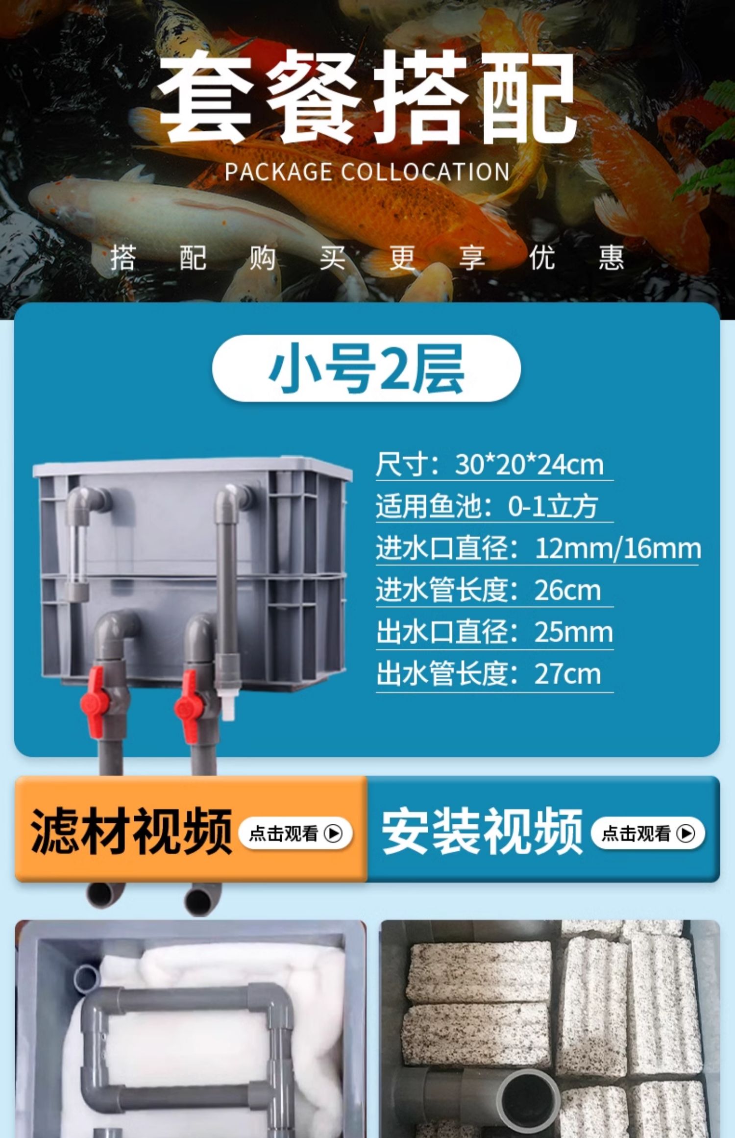 • 소형 2층 [베어박스 + 두꺼운 필터면] [0-1입방미터의 물에 적합]