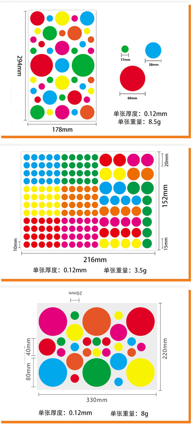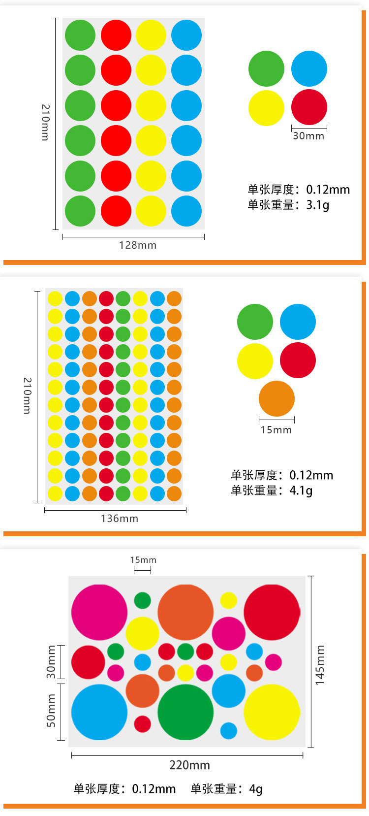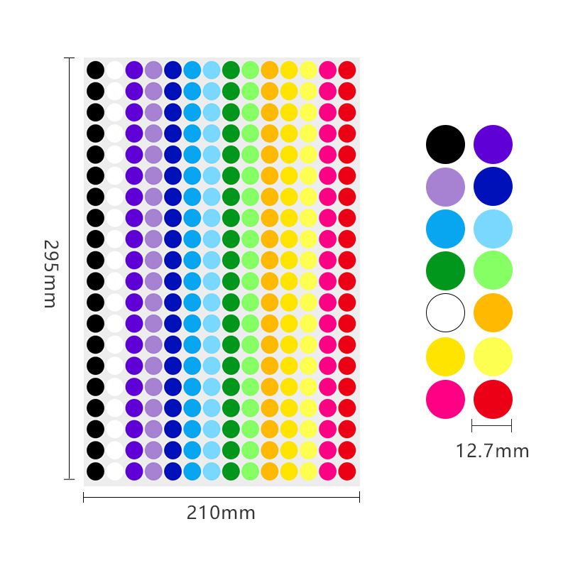 다채로운 도트 자체 접착 라벨 유치원 색상 필기 빈 원형 다양한 크기 씰링 라벨 스티커