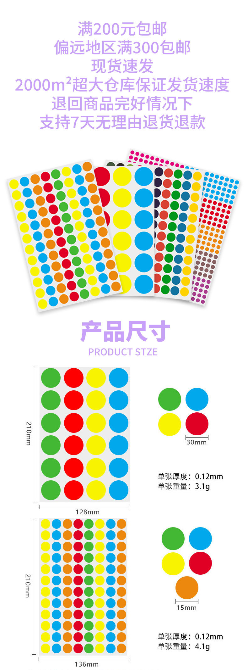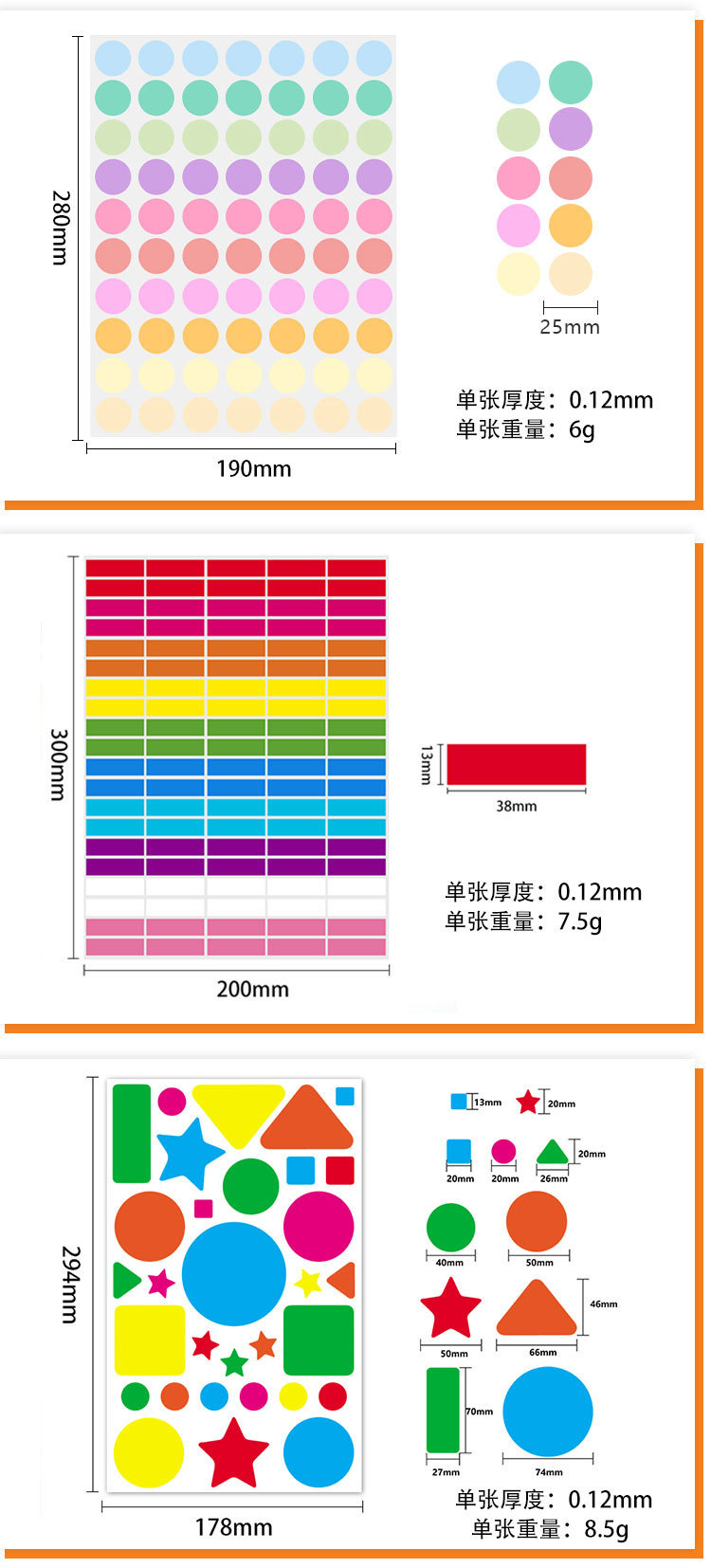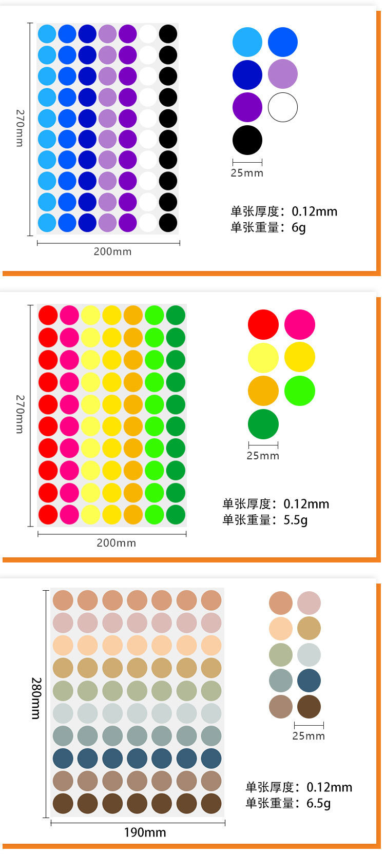 다채로운 도트 자체 접착 라벨 유치원 색상 필기 빈 원형 다양한 크기 씰링 라벨 스티커