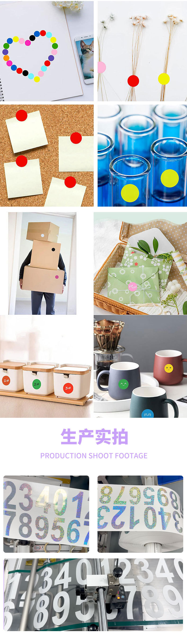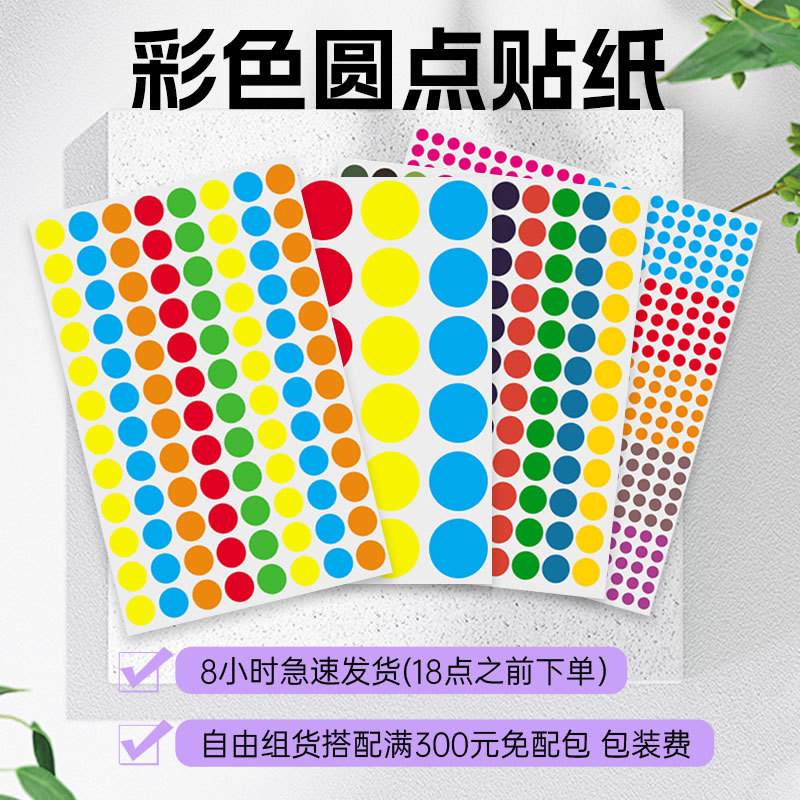 다채로운 도트 자체 접착 라벨 유치원 색상 필기 빈 원형 다양한 크기 씰링 라벨 스티커스토어 가기