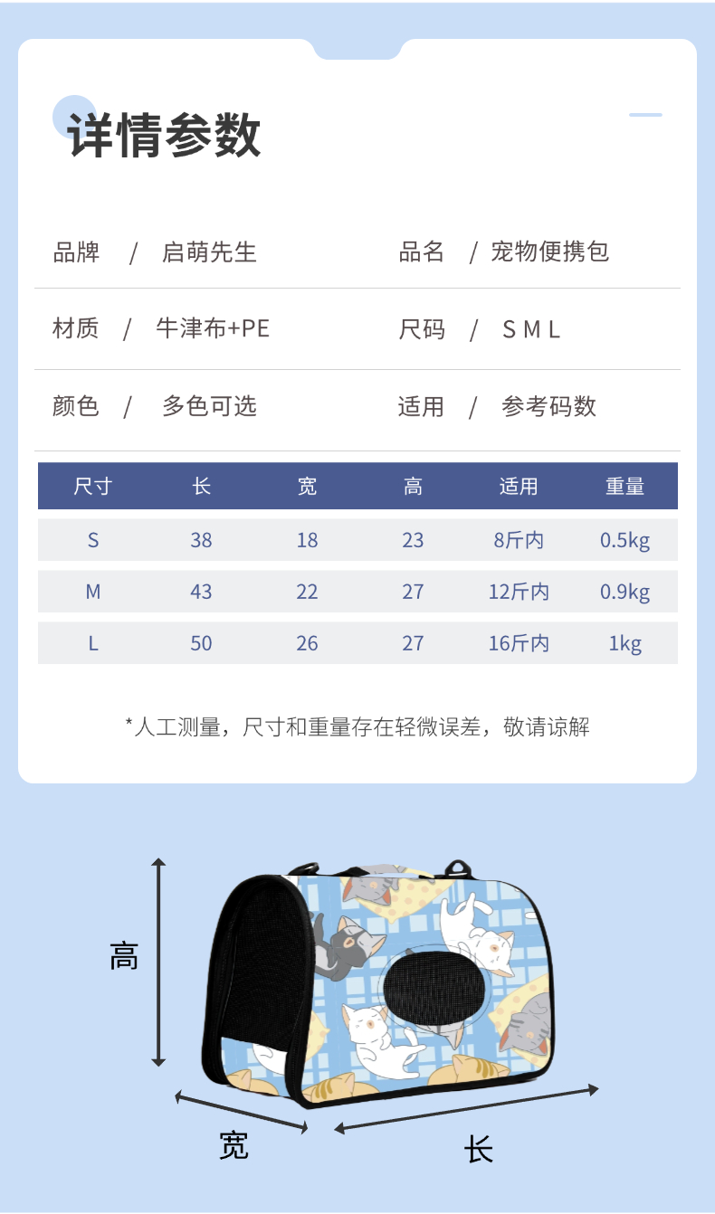 • S-소형(애완동물 4kg마리에게 적합, 길이에 따라 다름)