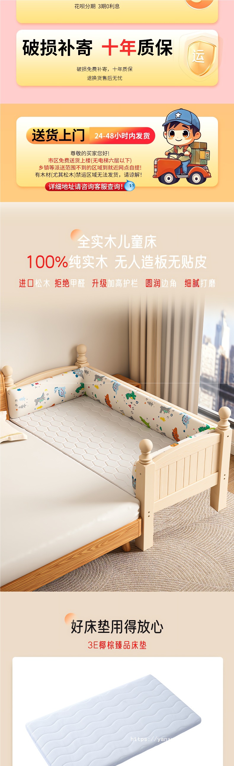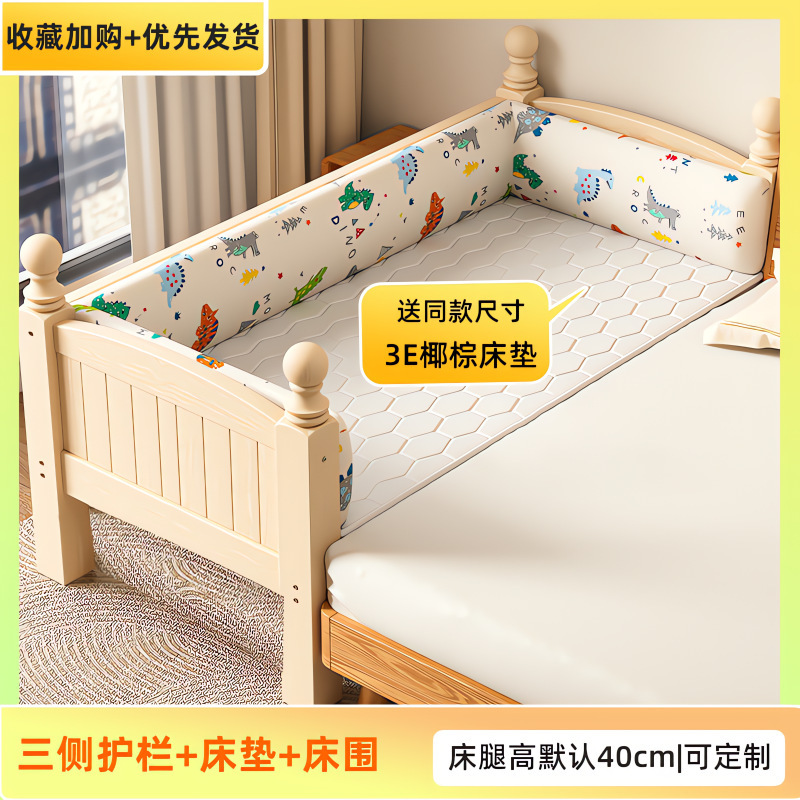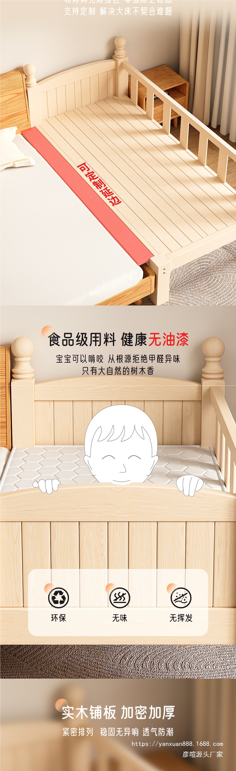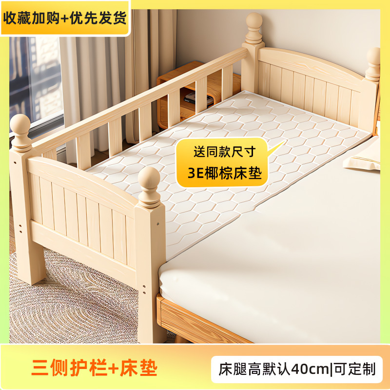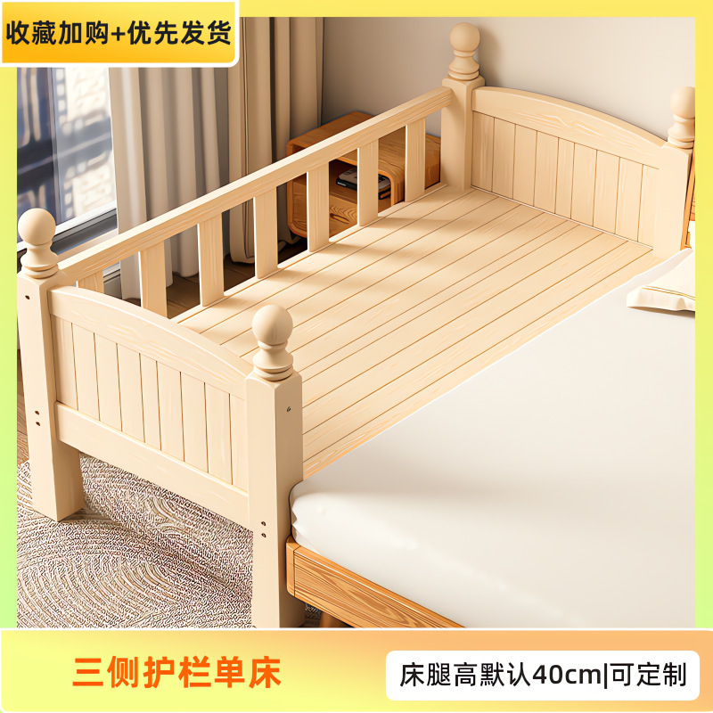 원목 어린이 침대, 연장형 가드레일, 유아용 침대, 유아용 침대, 싱글 침대, 확장형 접합 공주 침대스토어 가기
