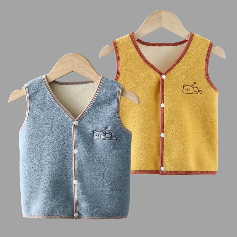 아동용 벨벳 조끼, 가을 겨울 아기 조끼, 따뜻한 소년의 내부 및 외부 착용, 유아 및 소녀의 두꺼운 조끼