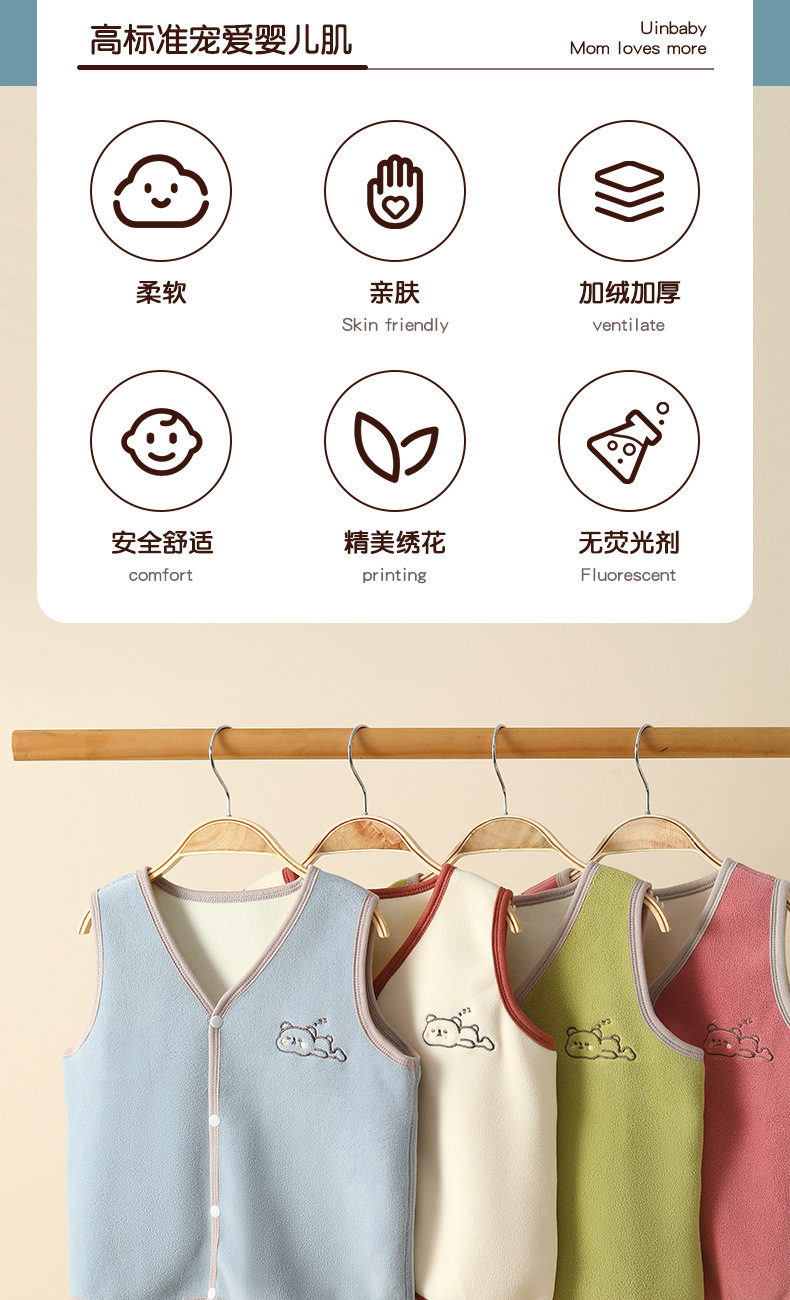 아동용 벨벳 조끼, 가을 겨울 아기 조끼, 따뜻한 소년의 내부 및 외부 착용, 유아 및 소녀의 두꺼운 조끼스토어 가기