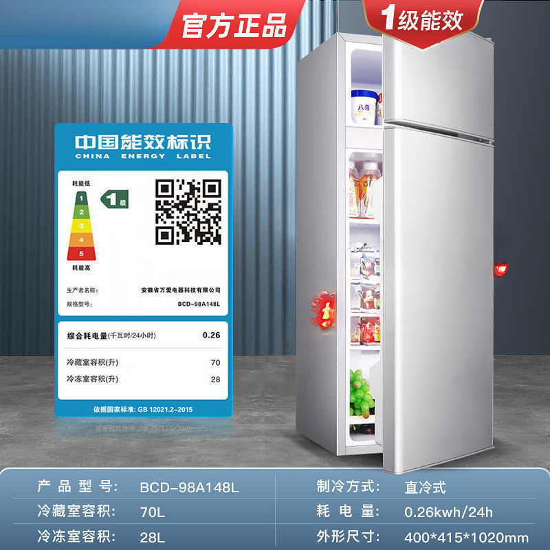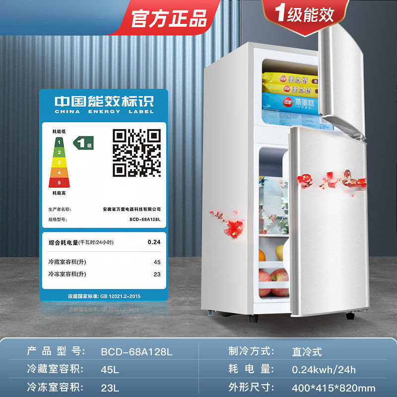 냉장고 가정용 소형 2인용 3가전 미니냉동냉장 기숙사 임대 에너지 절약 2층 1급 배치 냉난방