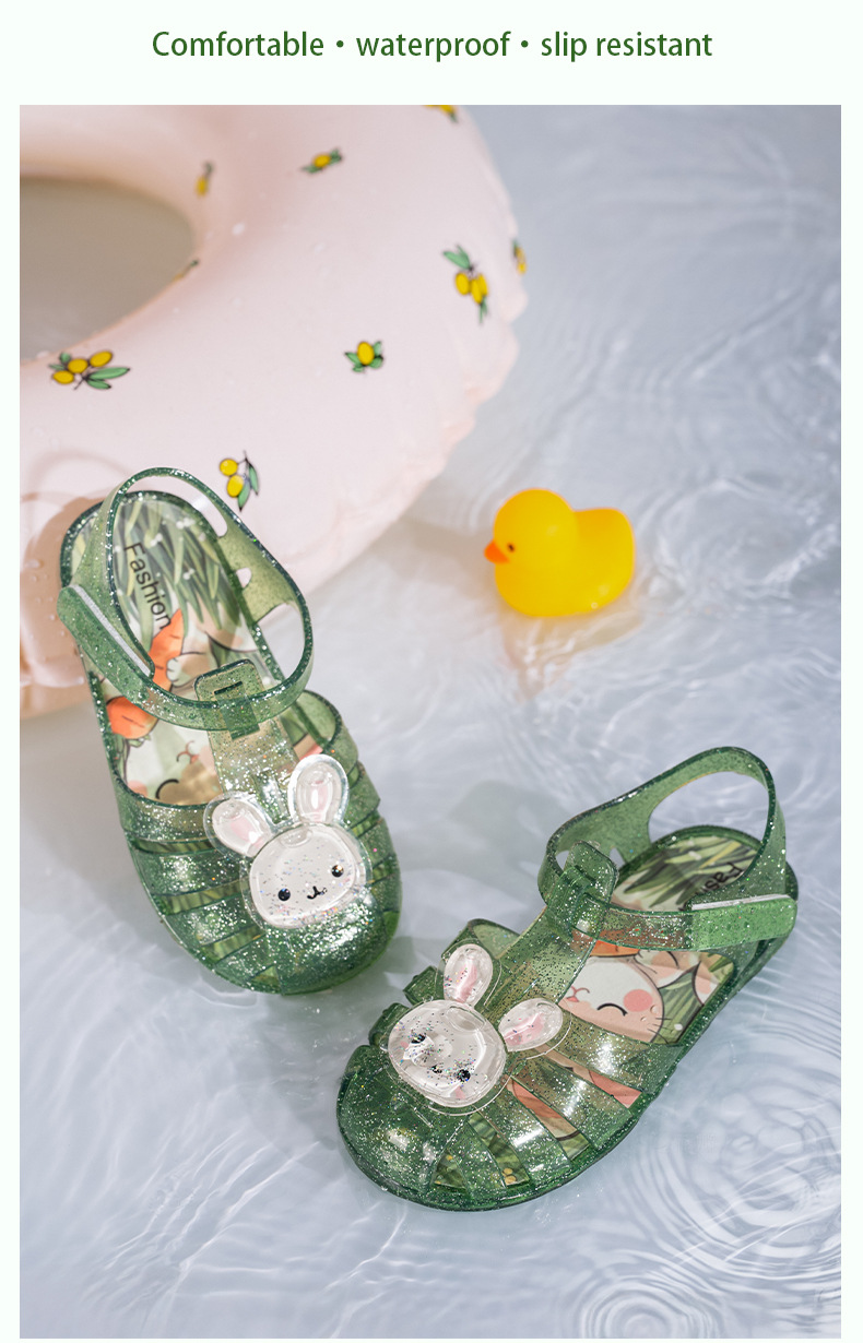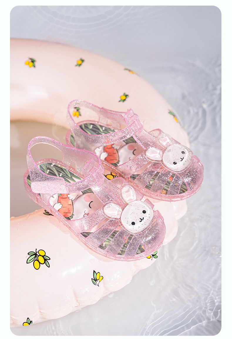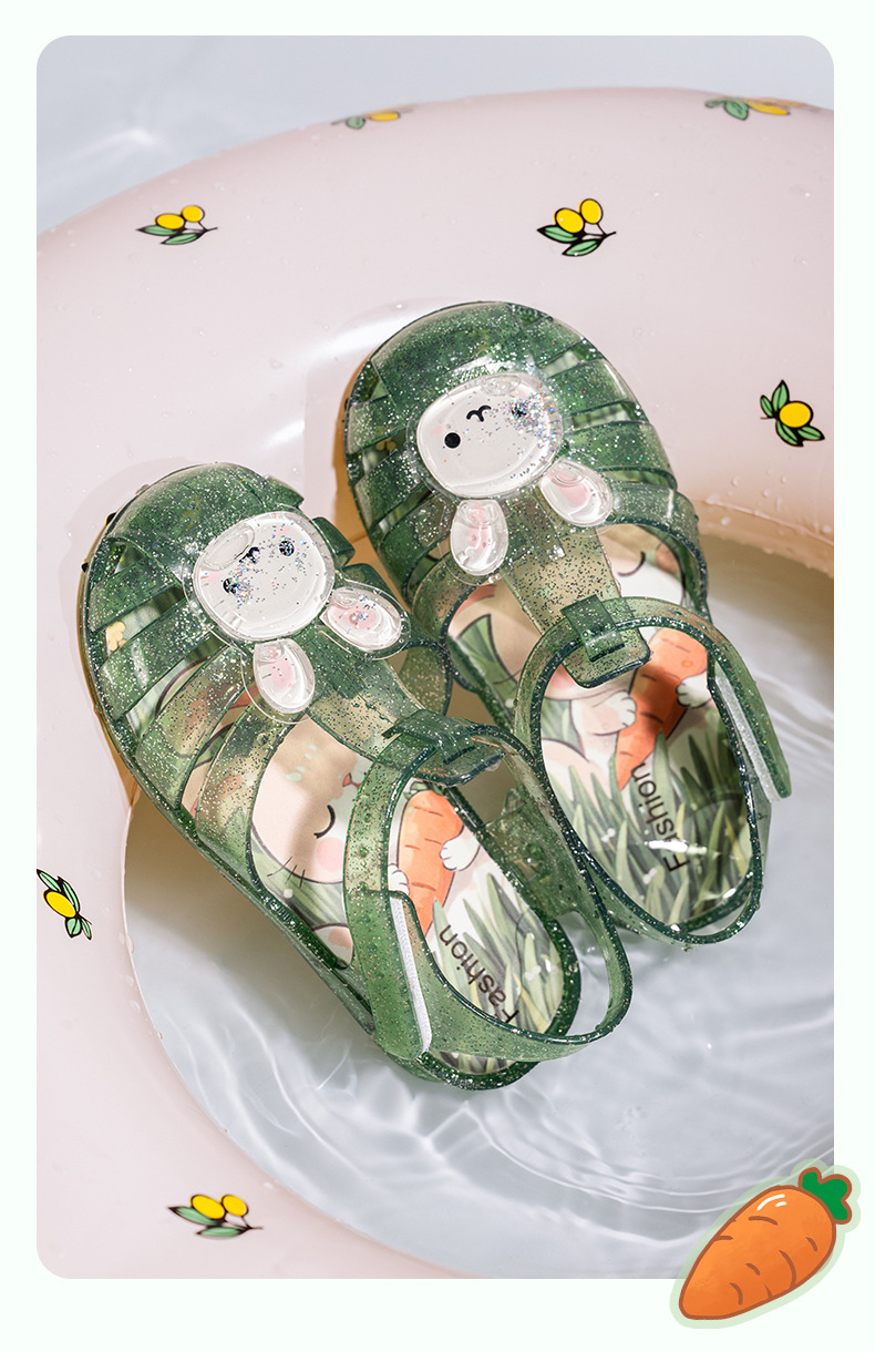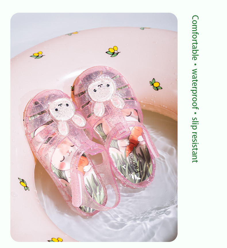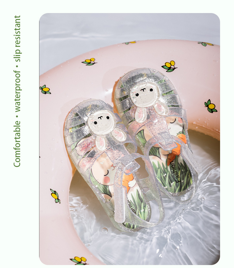 2025 만화 소녀 샌들 어린이 젤리 신발 미끄럼 방지 소년 발가락 비치 신발 로마 중공 공주 샌들