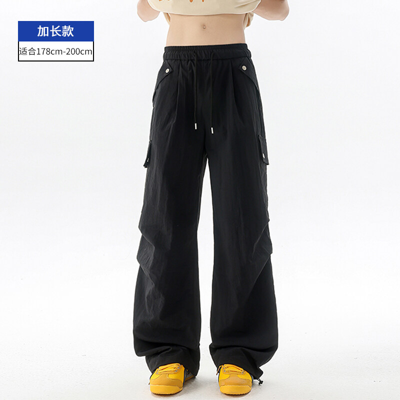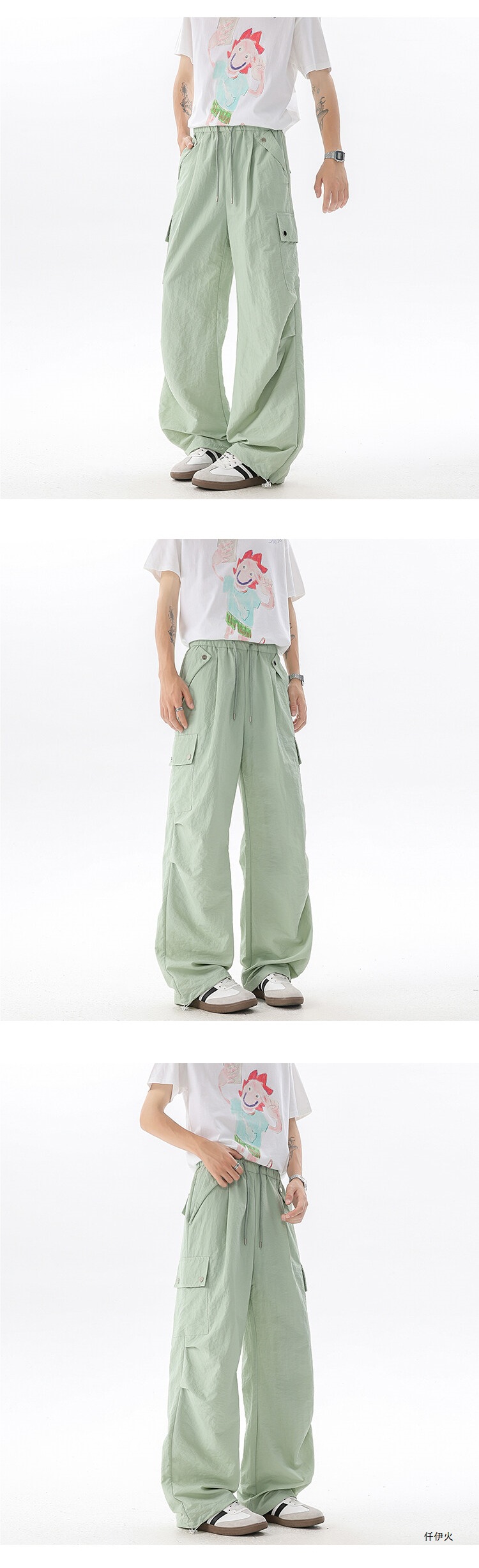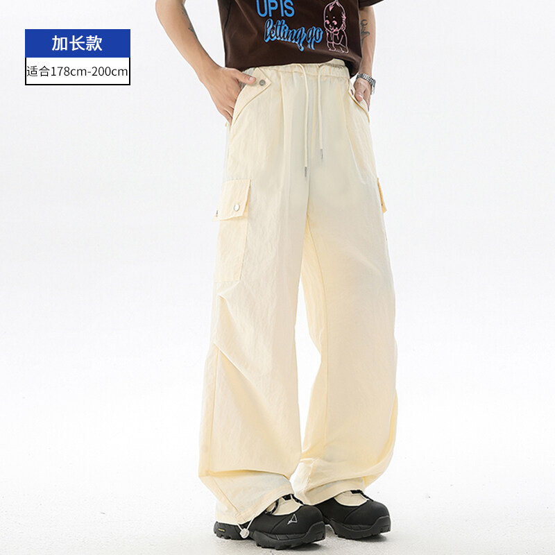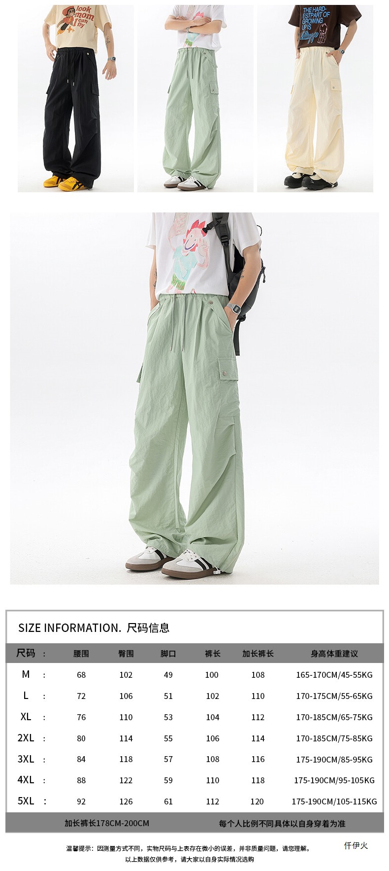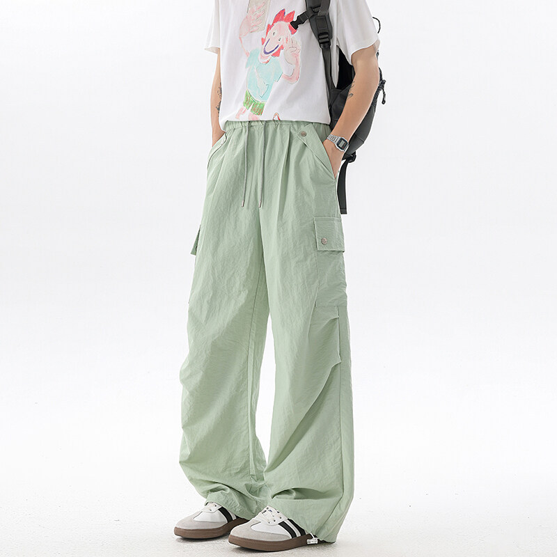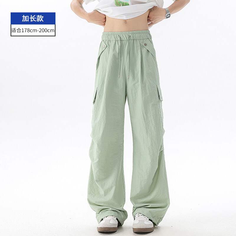 민트 그린 아메리칸 낙하산 바지 오버올 남성용 키 큰 남성용 팬츠 아이스 실크 얇은 충전 바지