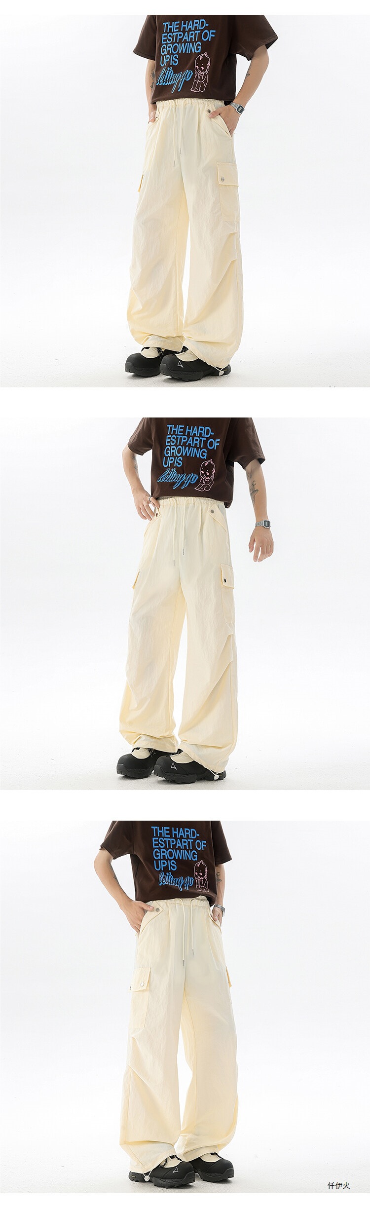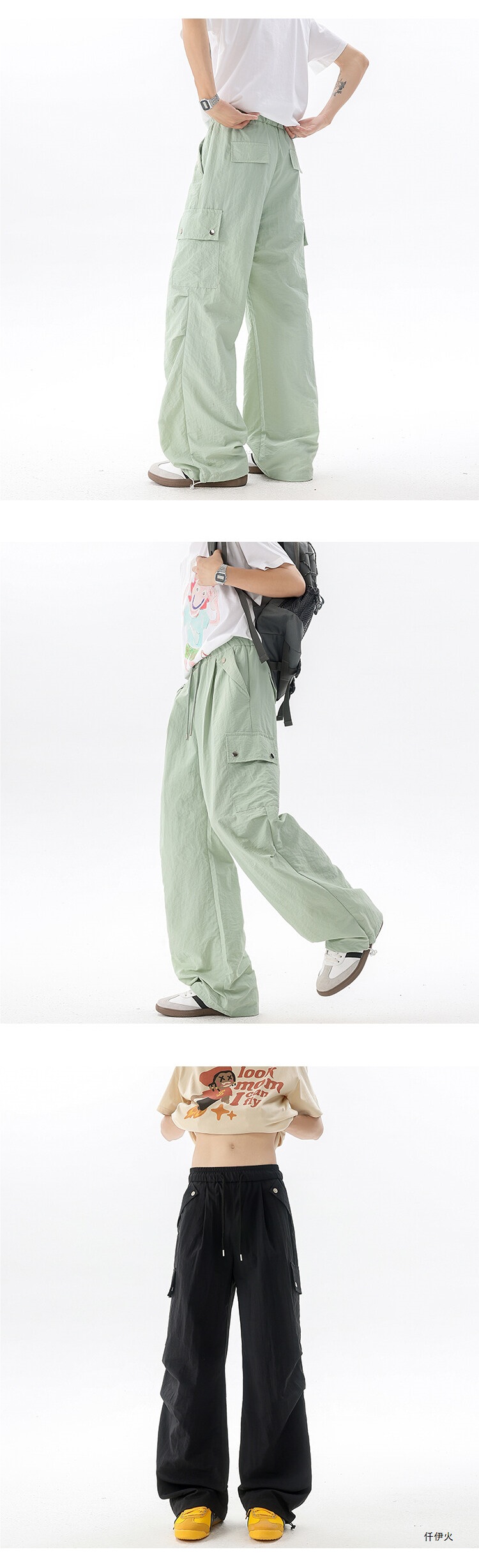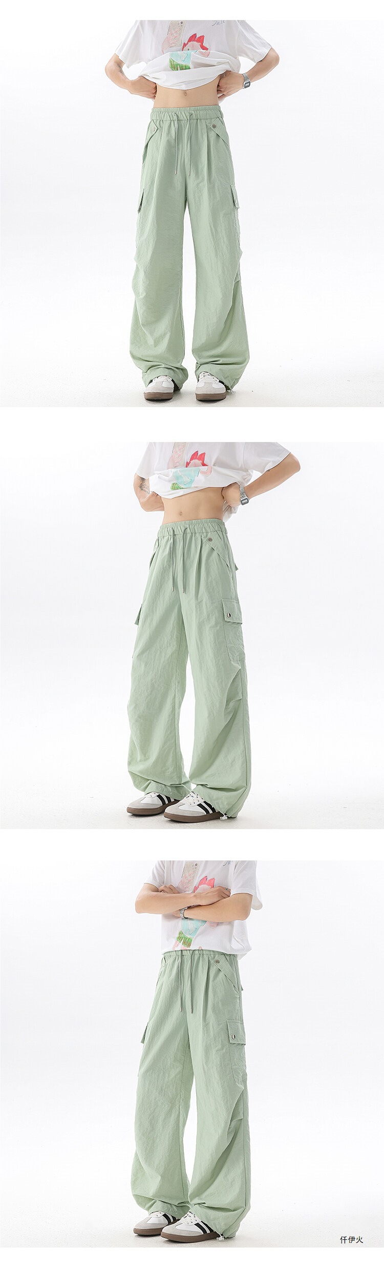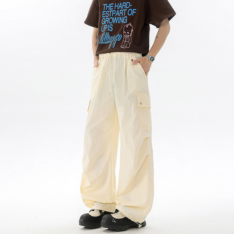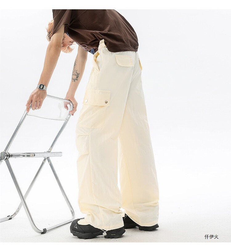 민트 그린 아메리칸 낙하산 바지 오버올 남성용 키 큰 남성용 팬츠 아이스 실크 얇은 충전 바지