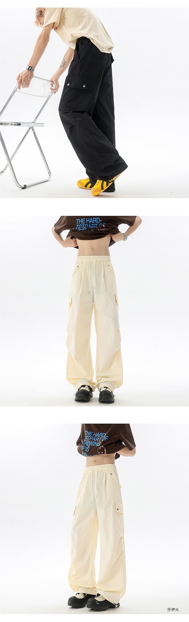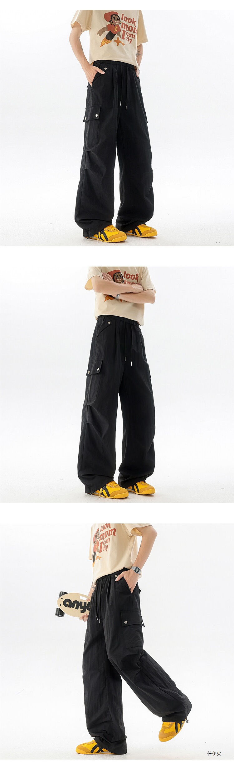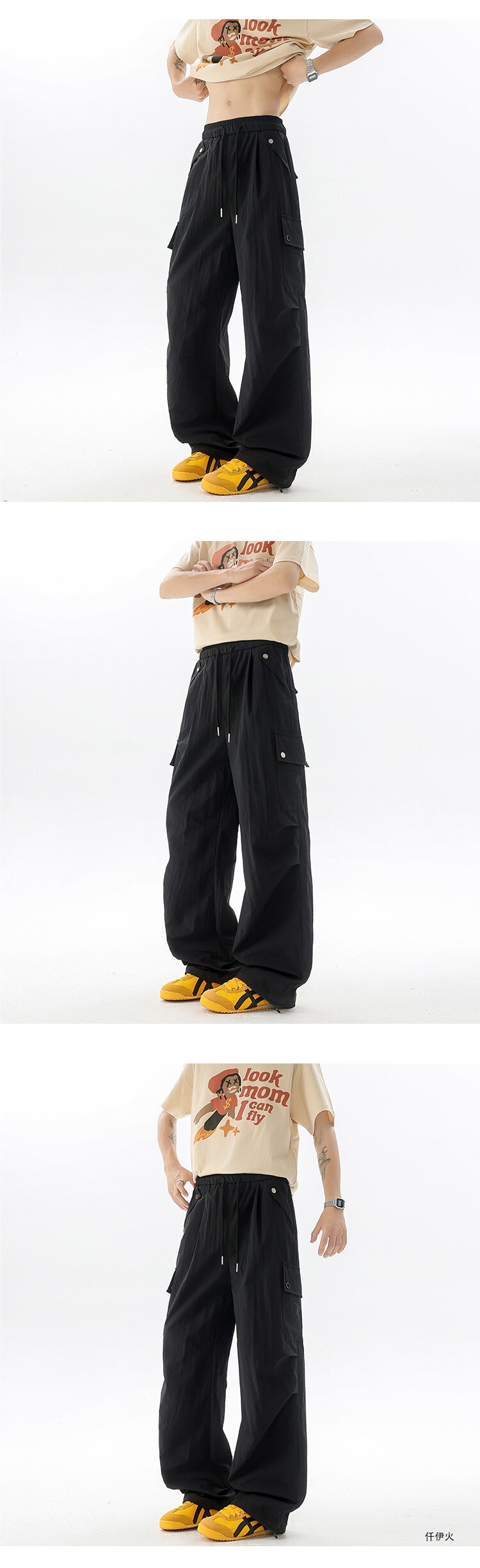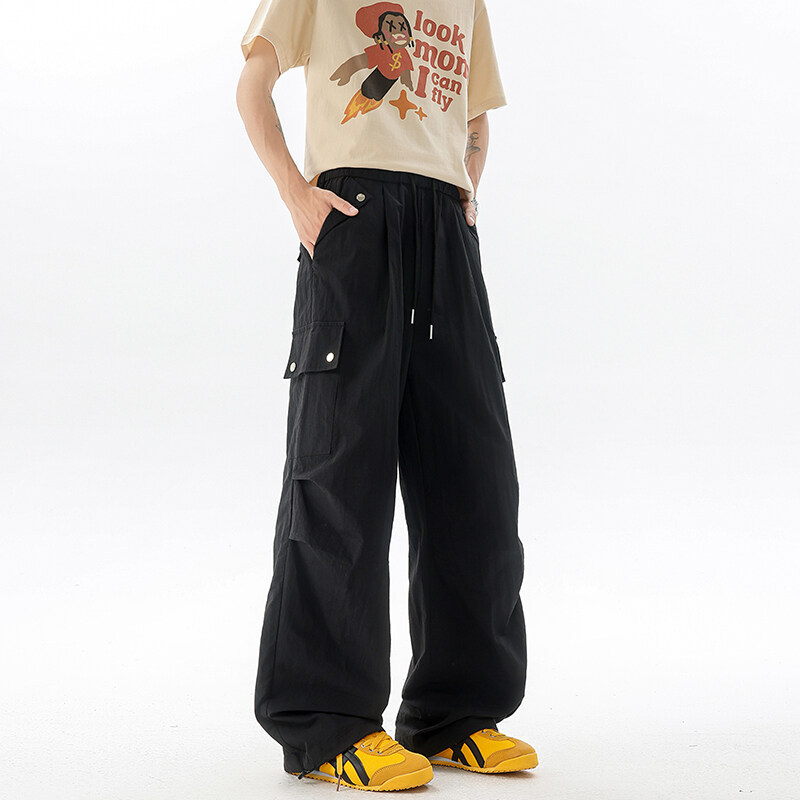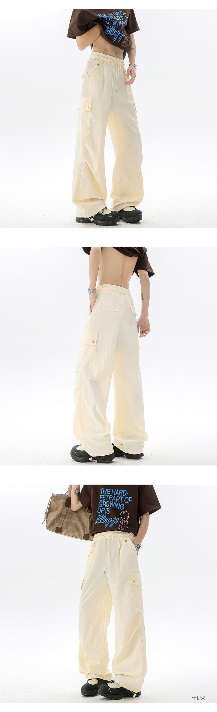 민트 그린 아메리칸 낙하산 바지 오버올 남성용 키 큰 남성용 팬츠 아이스 실크 얇은 충전 바지