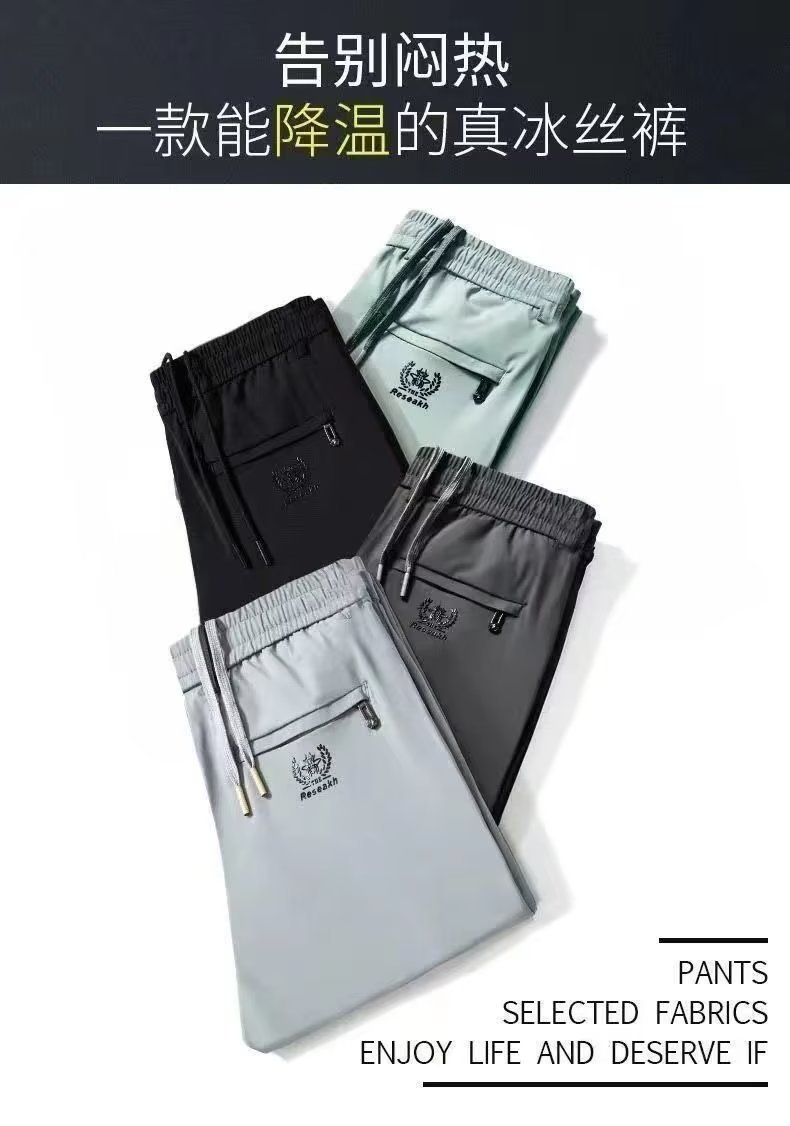 소스 제조업체 캐주얼 바지 남성용 다용도 여름 얇은 느슨한 대형 정장 얼음 실크 스트레이트 스포츠 긴 바지스토어 가기