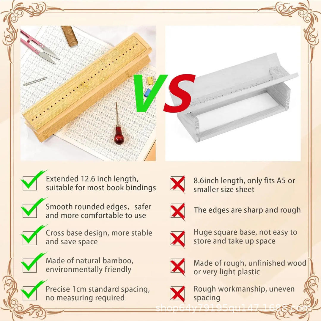 대나무 제본 도구 책 제본 세트 애호가 펀치 홀더 파일 제본 도구 책 제본 보관함
