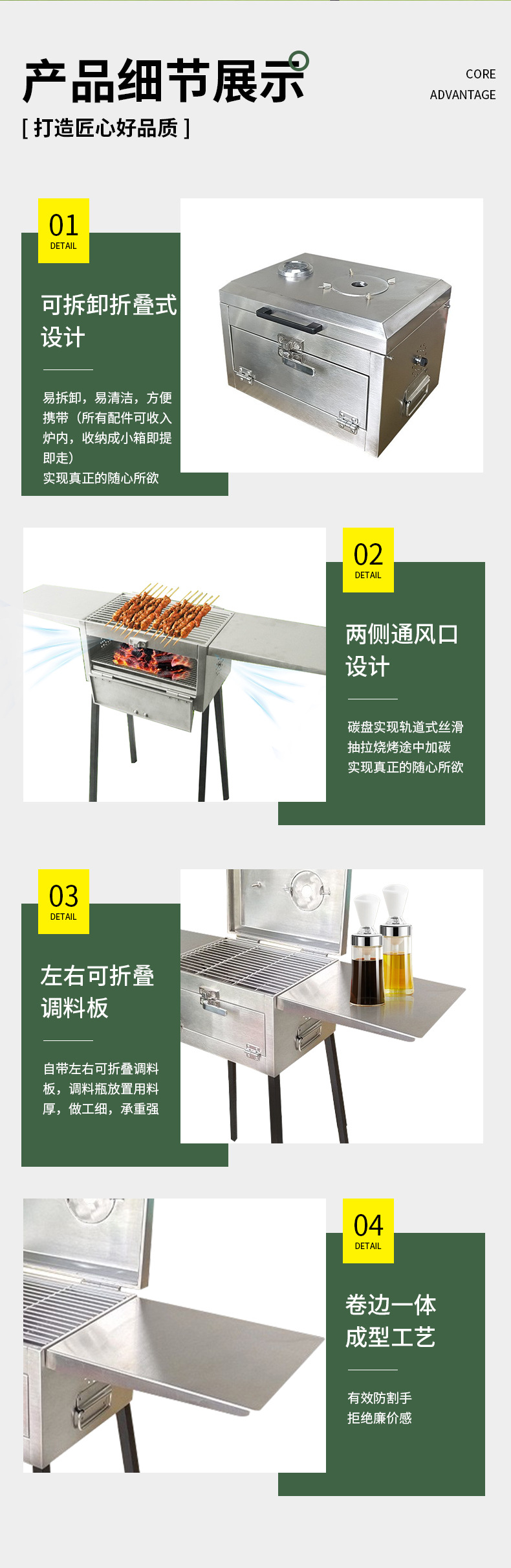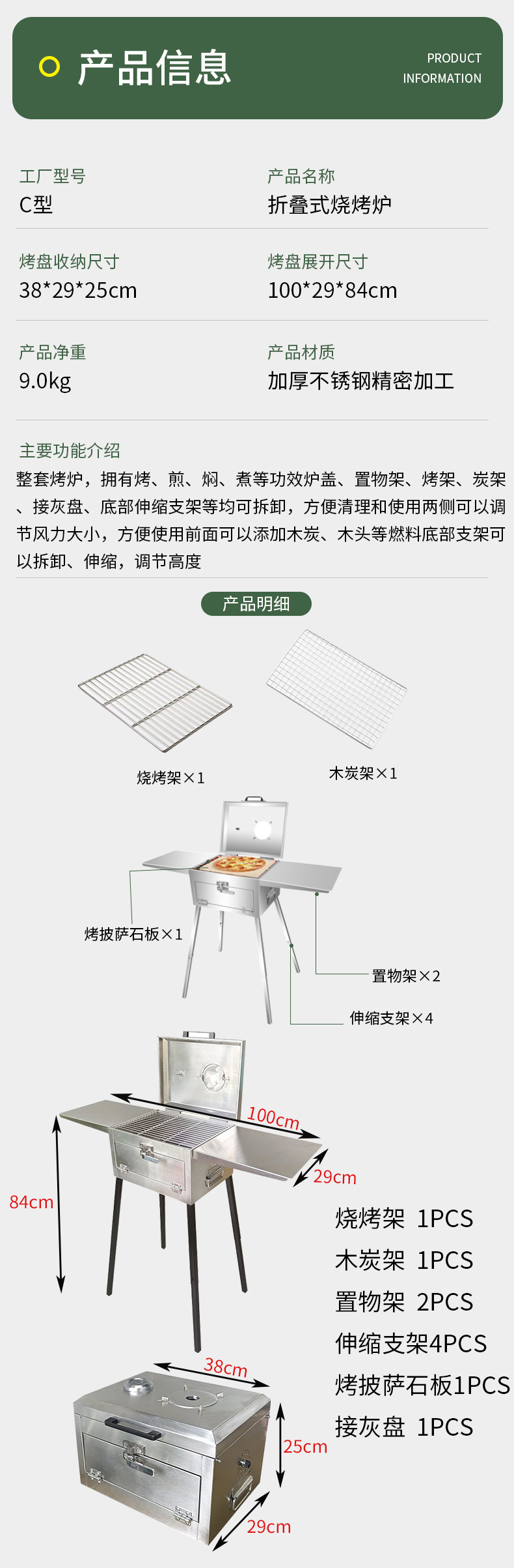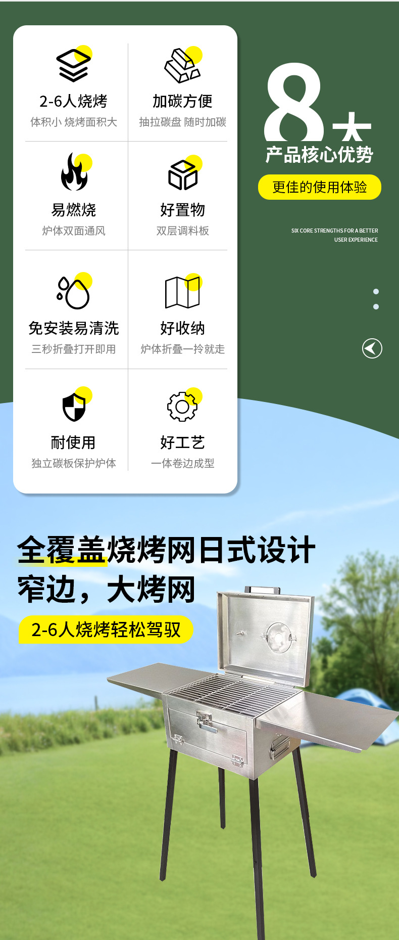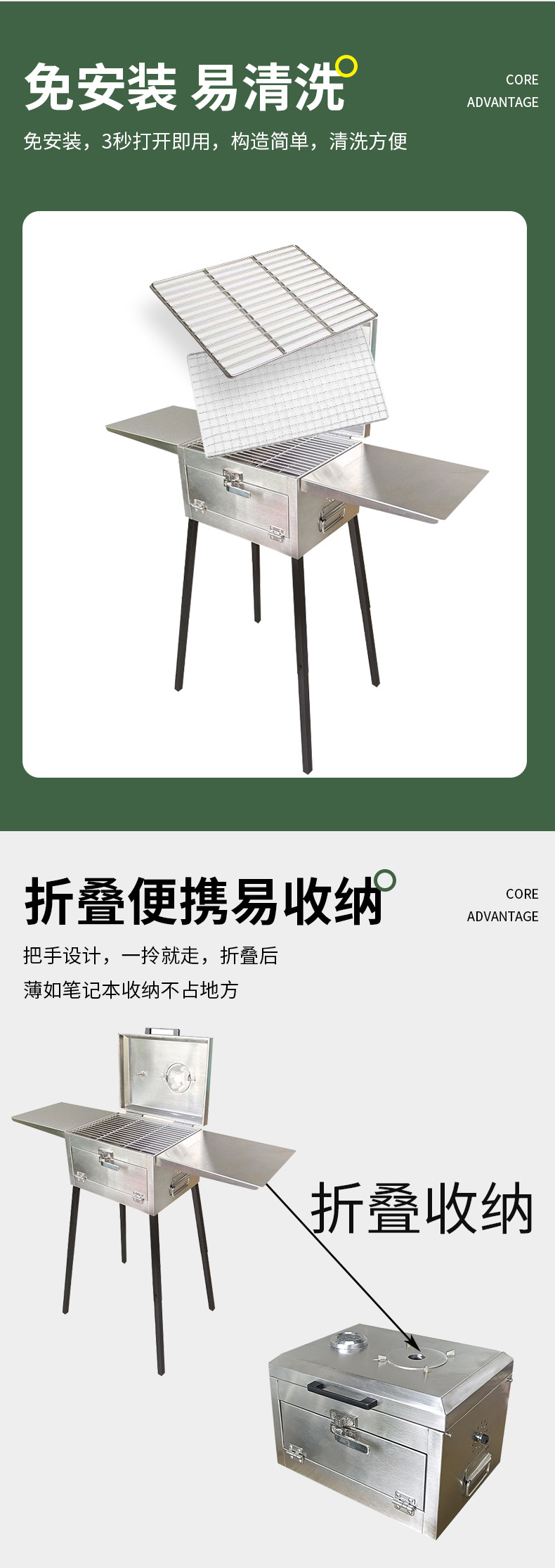 야외 접이식 바베큐 그릴 스테인레스 스틸 접이식 바베큐 도구 상자 스타일 그릴 조절 가능한 바닥 바베큐 그릴 도매스토어 가기